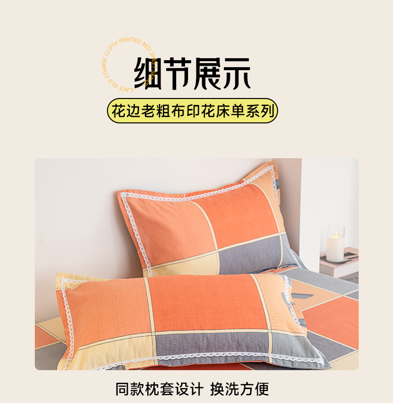 商品名称:首爱家纺 2025新款花边老粗布印花床单系列套件 字母风格