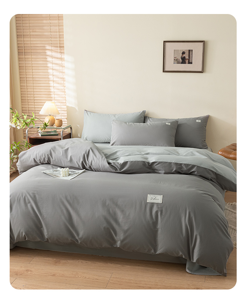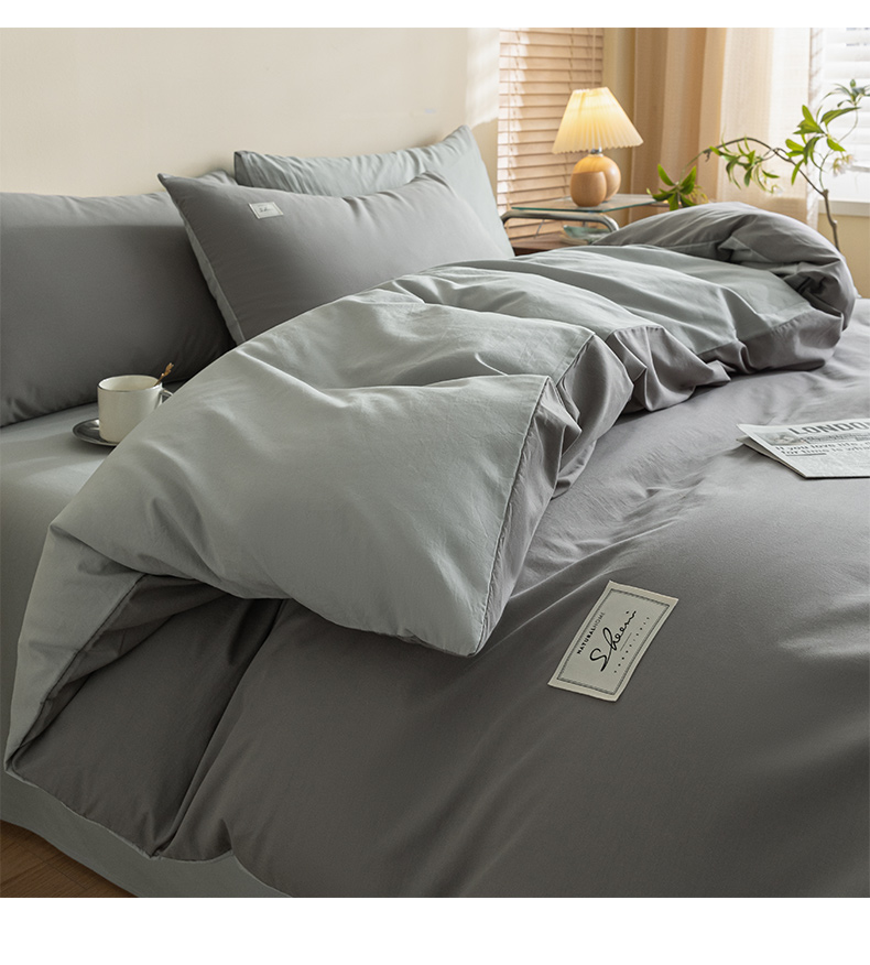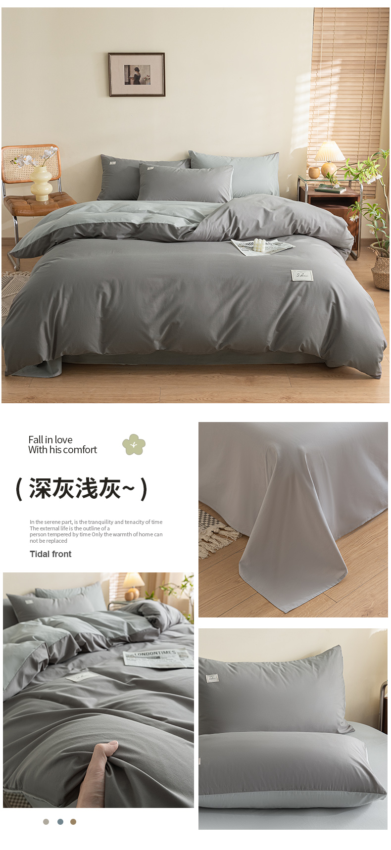 当前位置: 91家纺网 > 商品网购 > 床品套件 > 四件套 > 全棉普通四件套 > 木子家纺 2024新款纯色双拼40支全棉水洗棉四件套 深灰浅灰