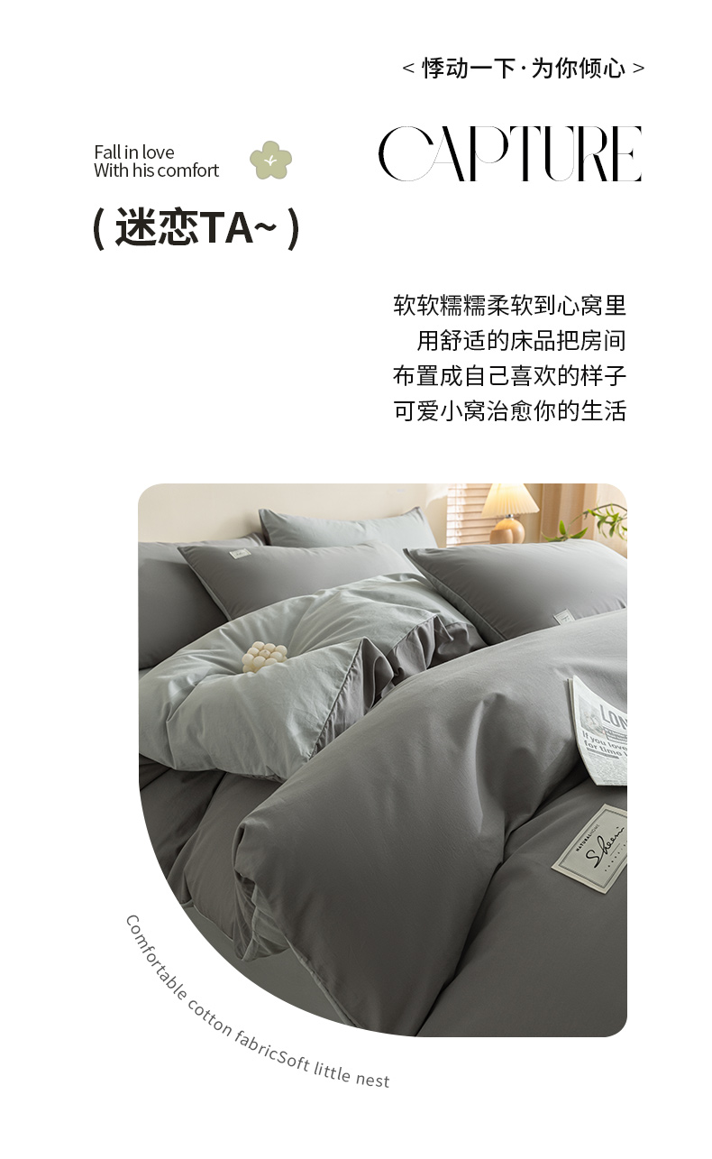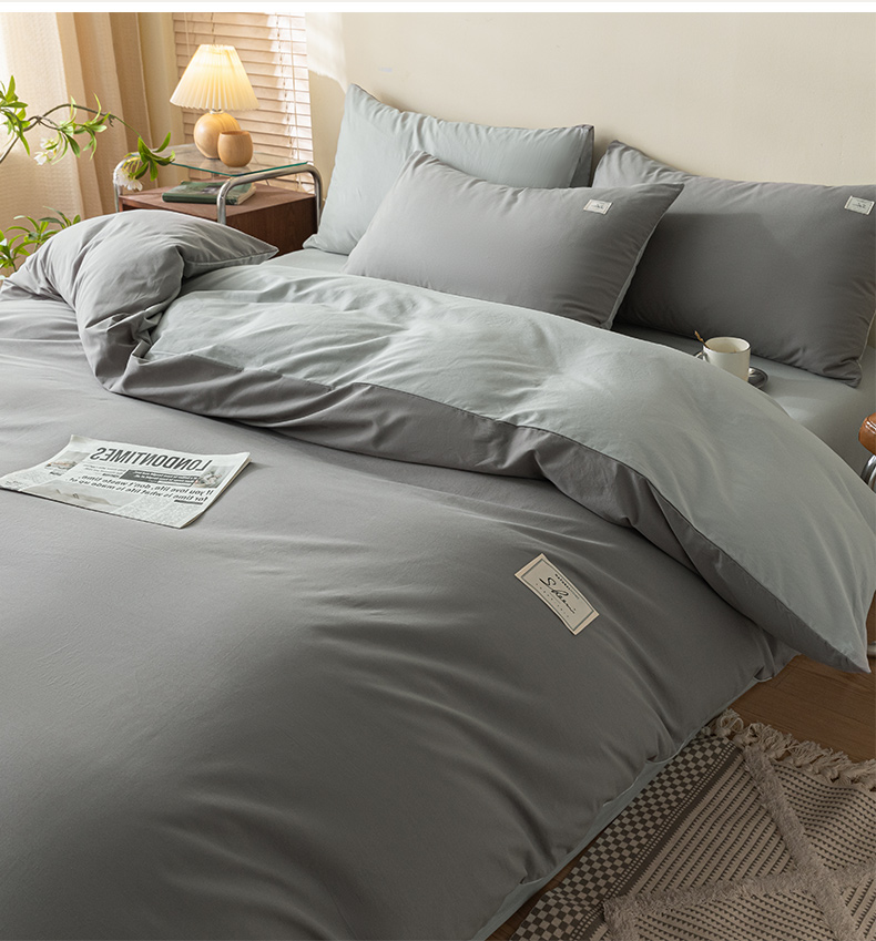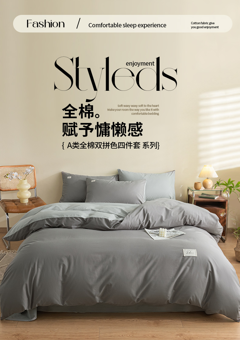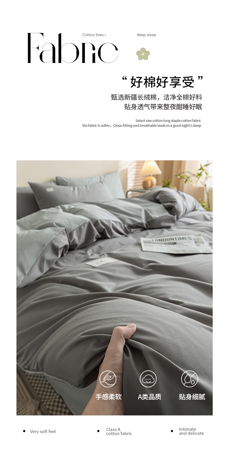 当前位置: 91家纺网 > 商品网购 > 床品套件 > 四件套 > 全棉普通四件套 > 木子家纺 2024新款纯色双拼40支全棉水洗棉四件套 深灰浅灰