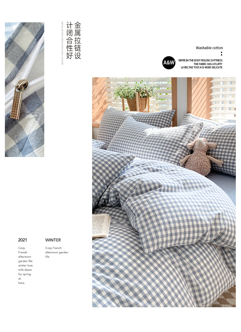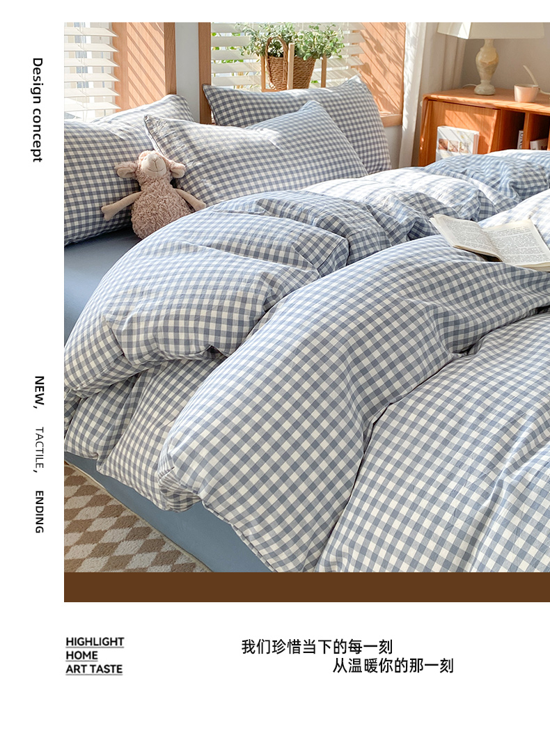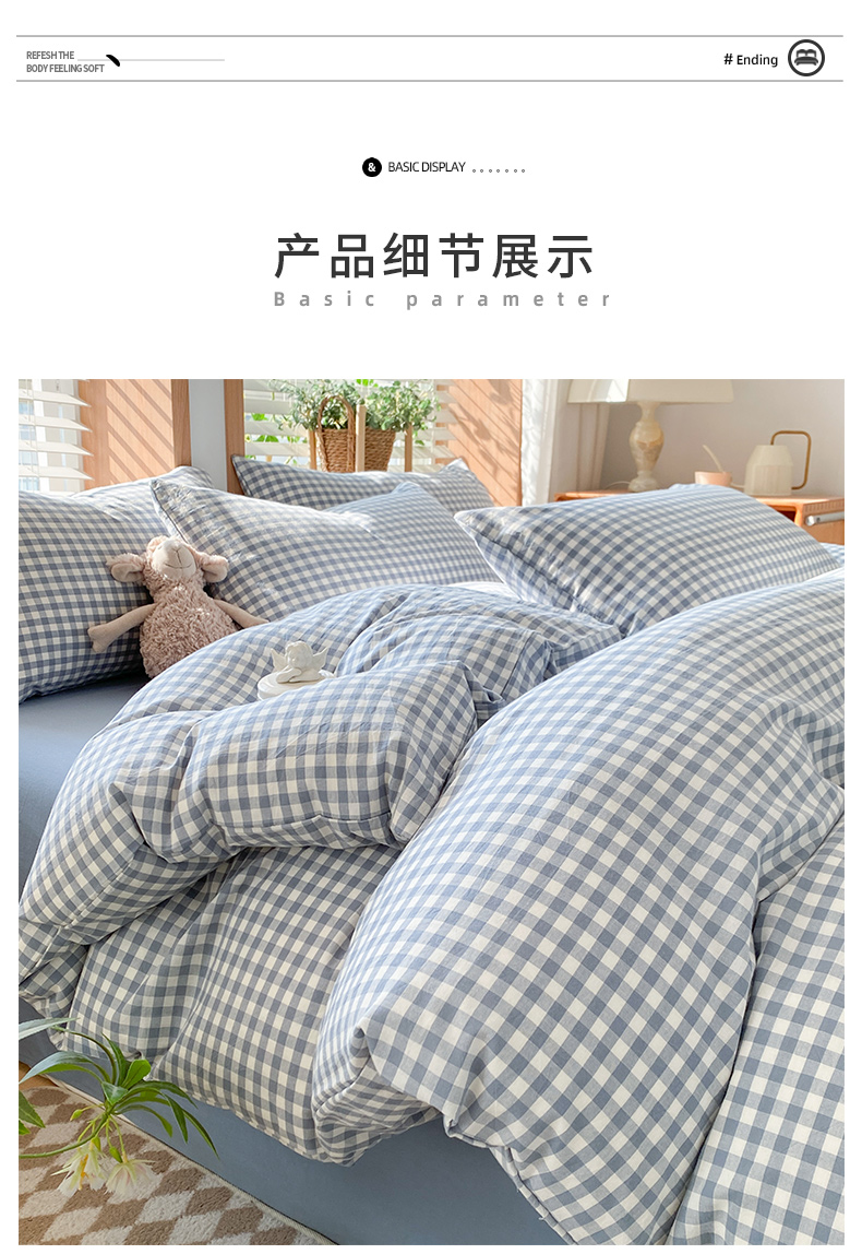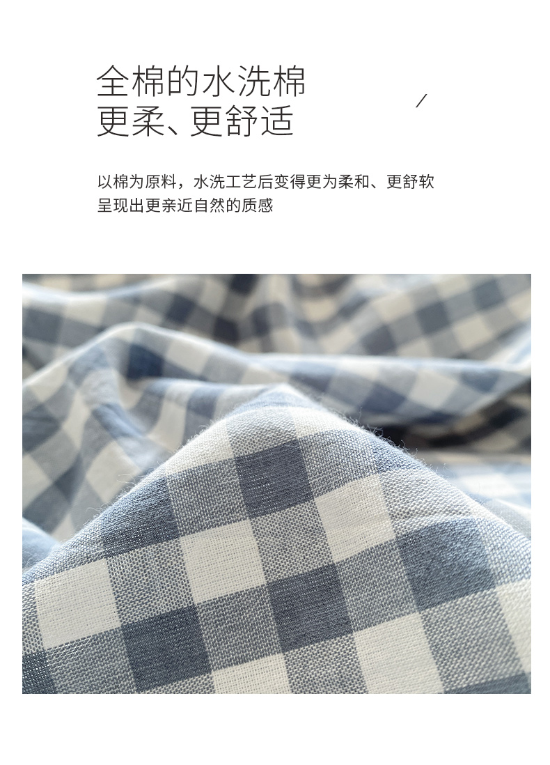当前位置: 91家纺网 > 商品网购 > 床品套件 > 四件套 > 全棉普通四件套 > 木子家纺 2024新款简约日式40支全棉色织水洗棉四件套 小格-蓝