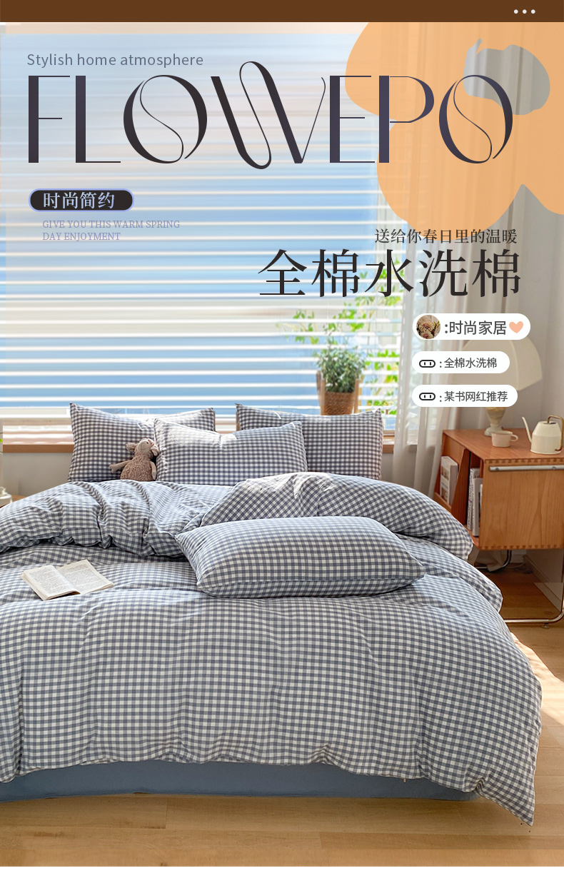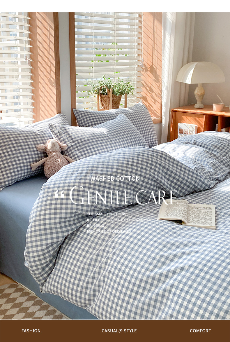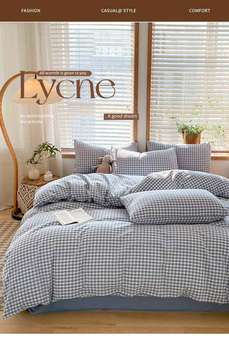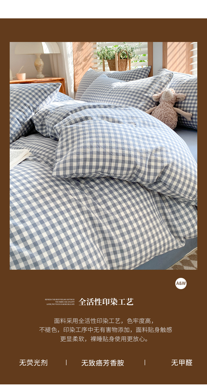 当前位置: 91家纺网 > 商品网购 > 床品套件 > 四件套 > 全棉普通四件套 > 木子家纺 2024新款简约日式40支全棉色织水洗棉四件套 小格-蓝