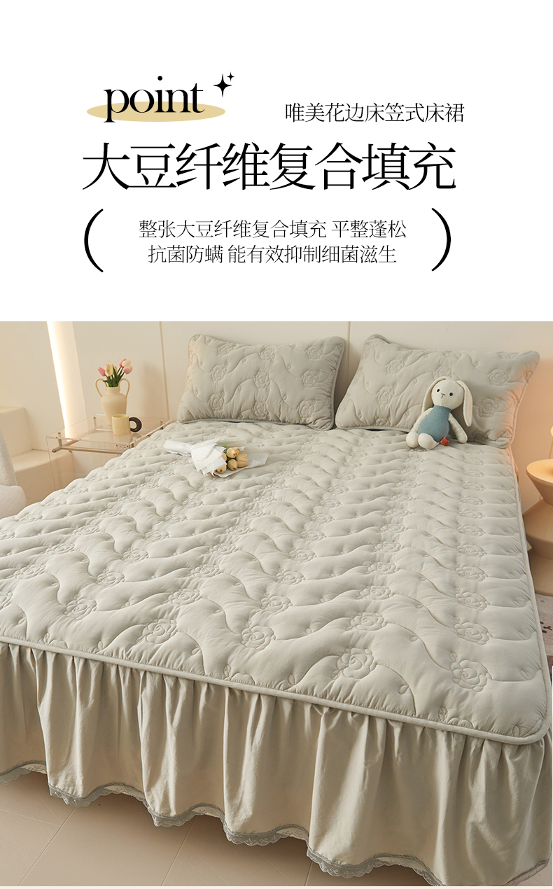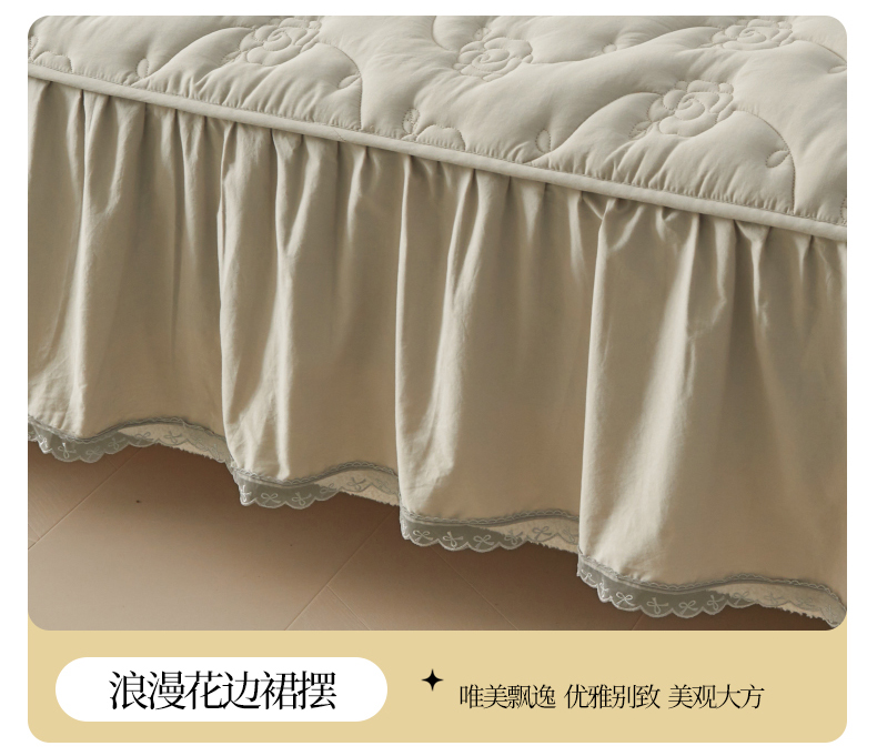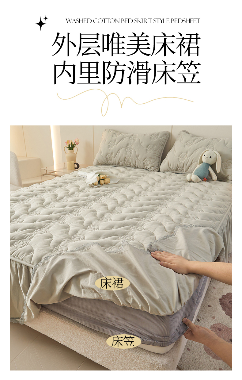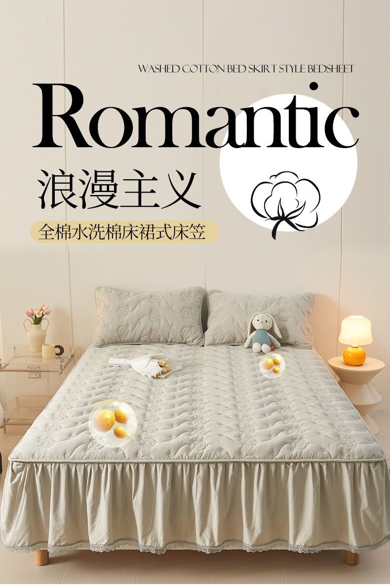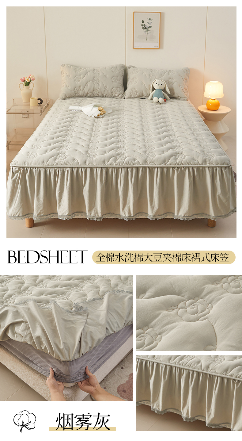 商品名称:3C 2024新款玫瑰水洗棉床裙式床笠 烟雾灰