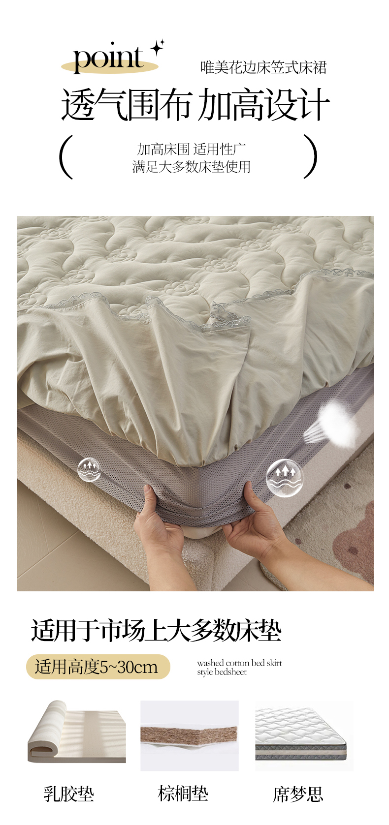 3C 2024新款玫瑰水洗棉床裙式床笠 烟雾灰