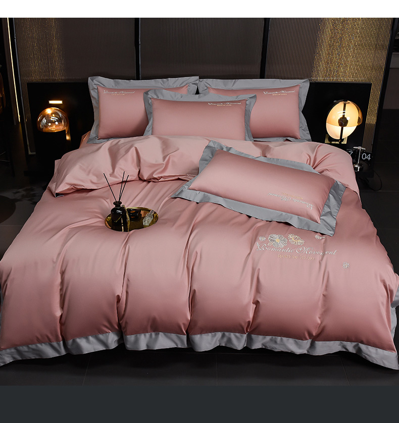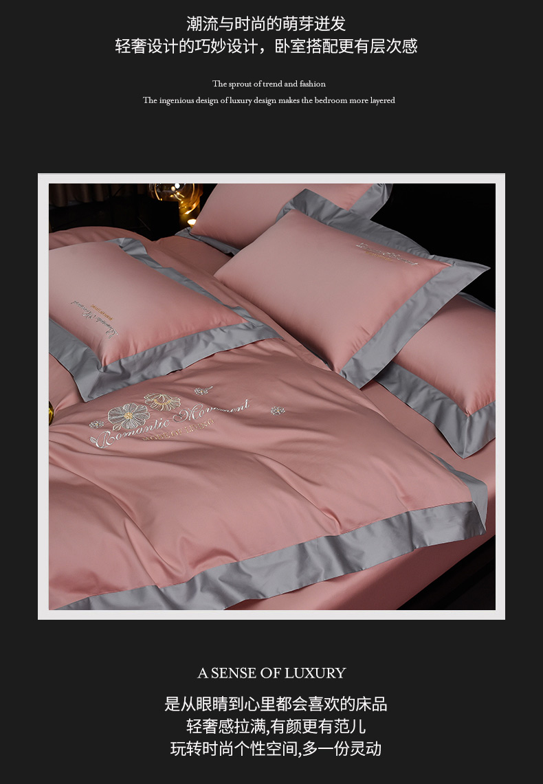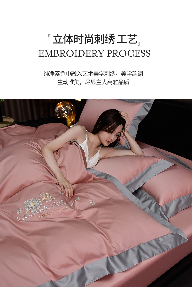 (总)瑞驰家纺 2022新款100S长绒棉绣花-爱德拉系列,豆沙红+优雅紫,摩登灰+深海蓝,柠檬黄+摩登灰,清水绿+摩登灰,时尚桔+摩登灰,水粉+摩登灰,象牙白+摩登灰,优雅紫+豆沙红
