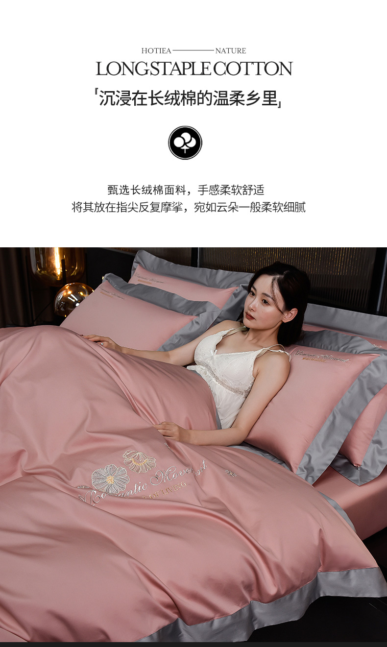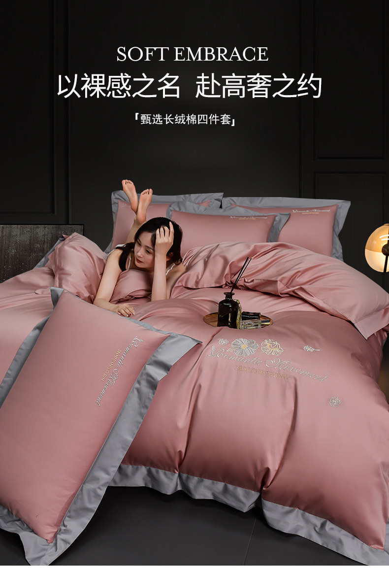 商品名称:瑞驰家纺2024新款长绒棉绣花四件套伊莎贝尔系列 伊莎贝尔-虾粉
