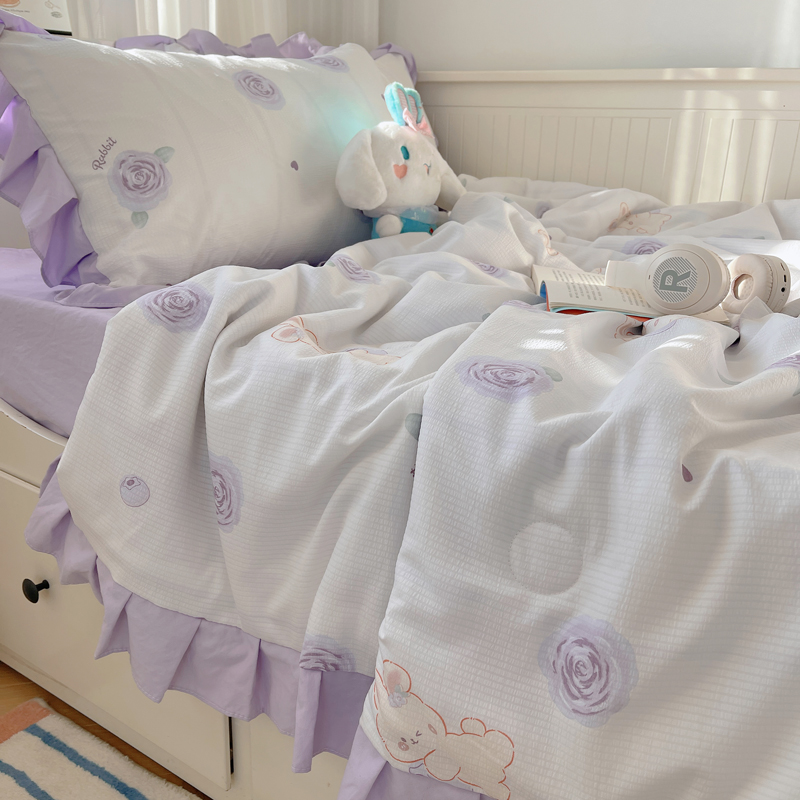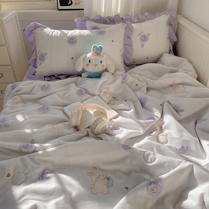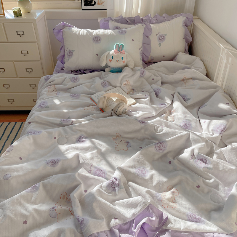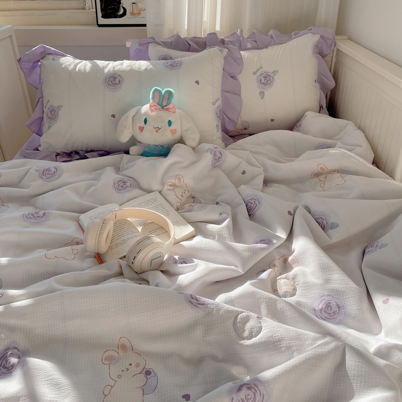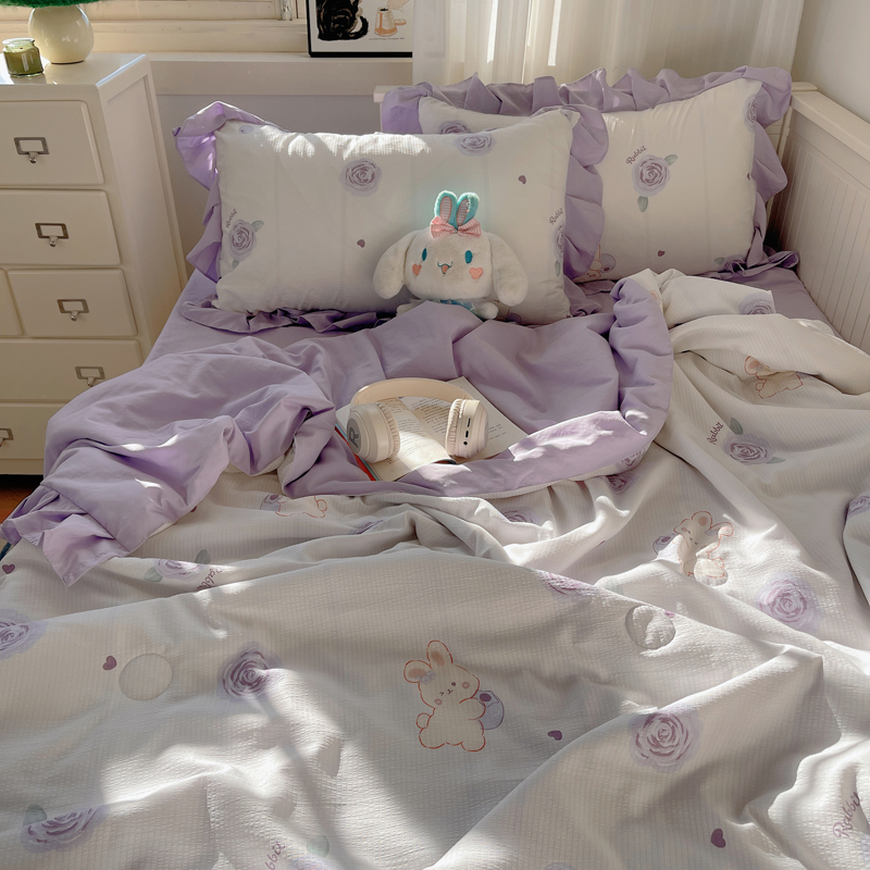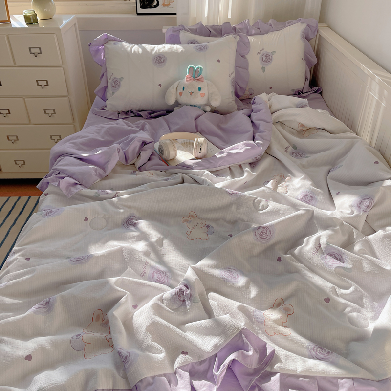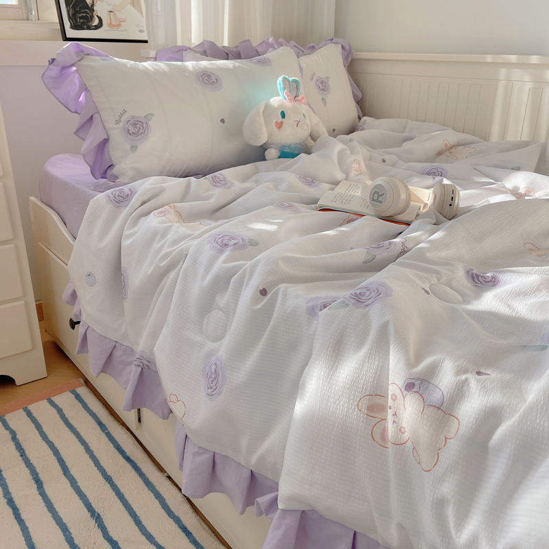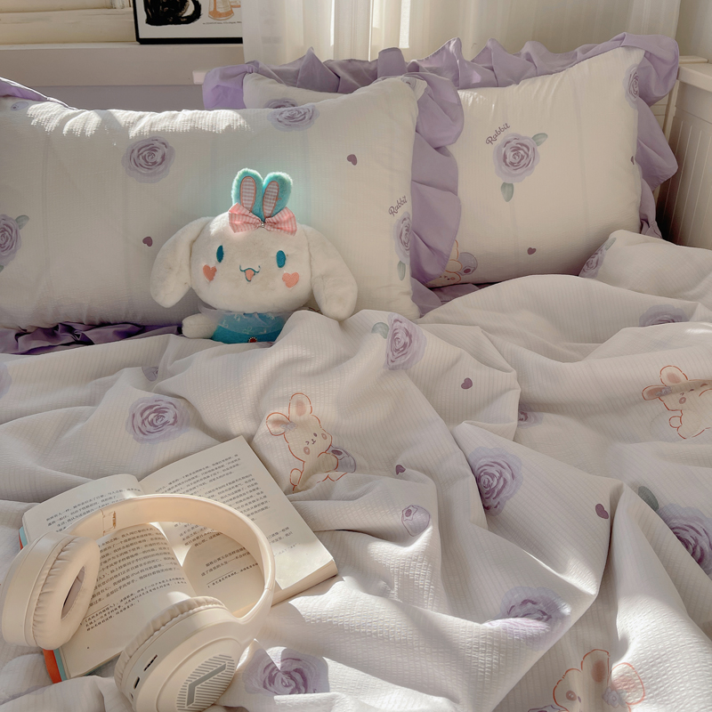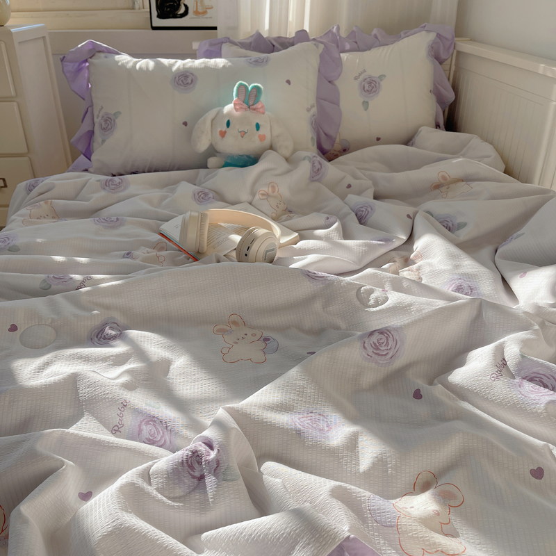顾里家纺 2024新款韩系治愈小清新花边氧气泡泡棉夏被四件套 北岛花兔