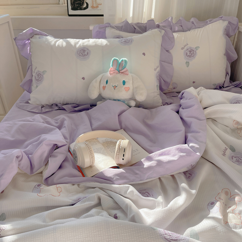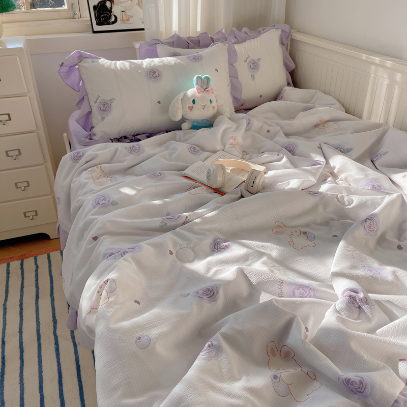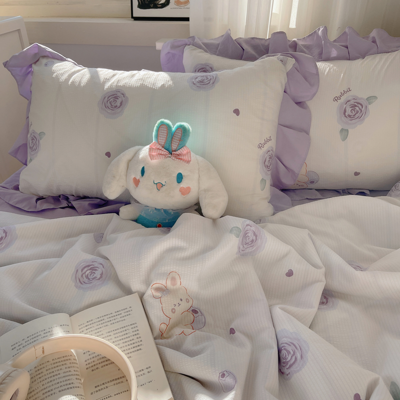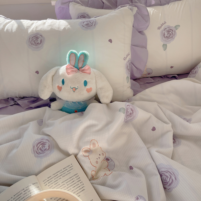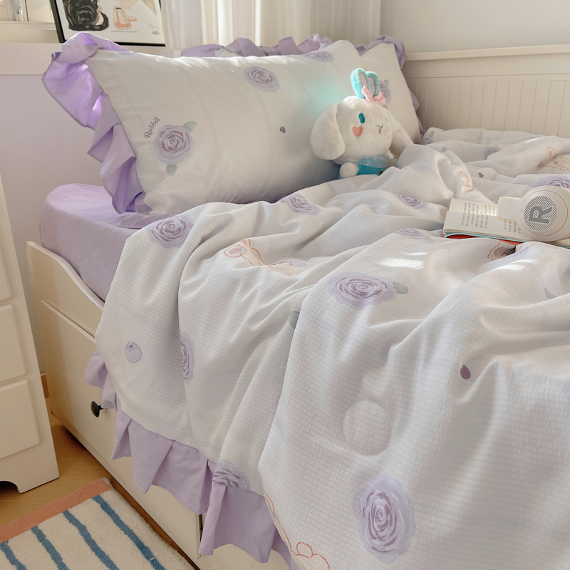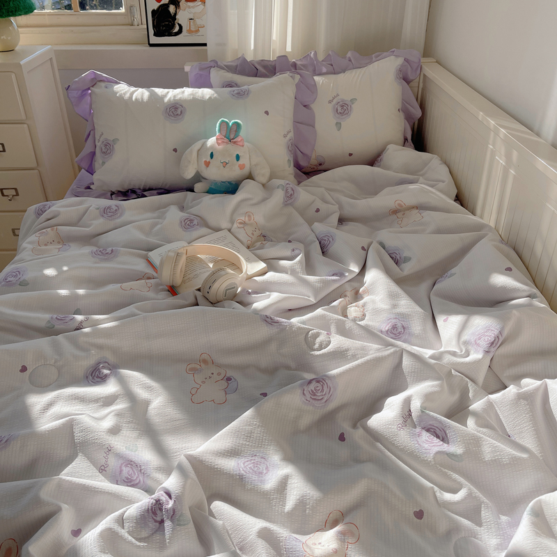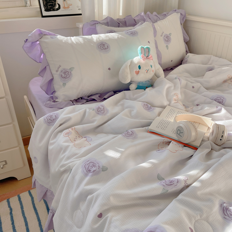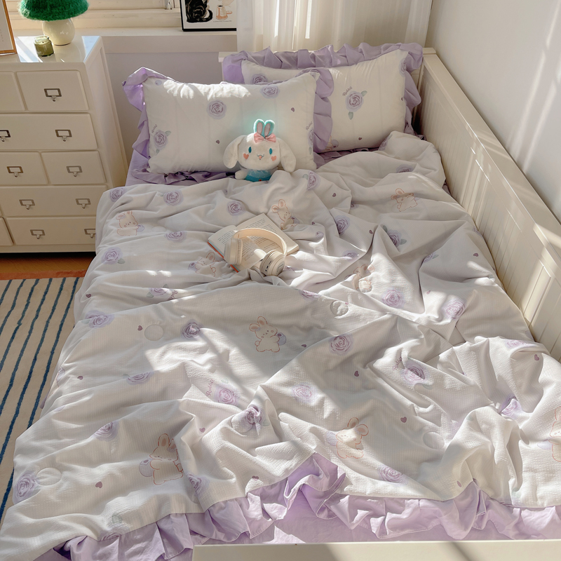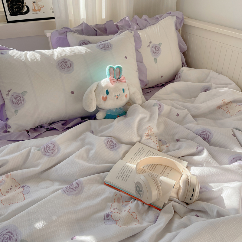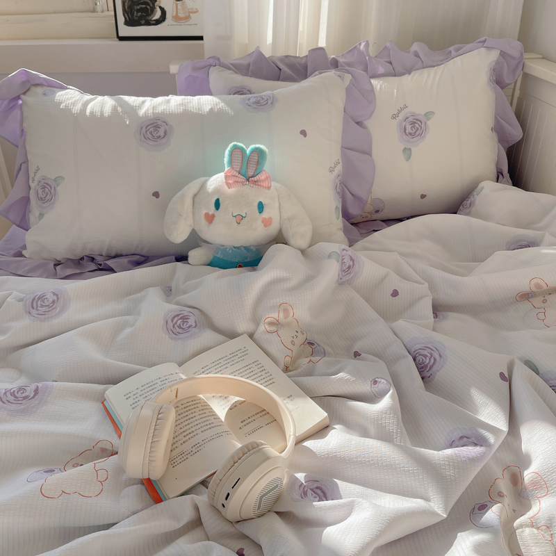 顾里家纺 2024新款韩系治愈小清新花边氧气泡泡棉夏被四件套 北岛花兔