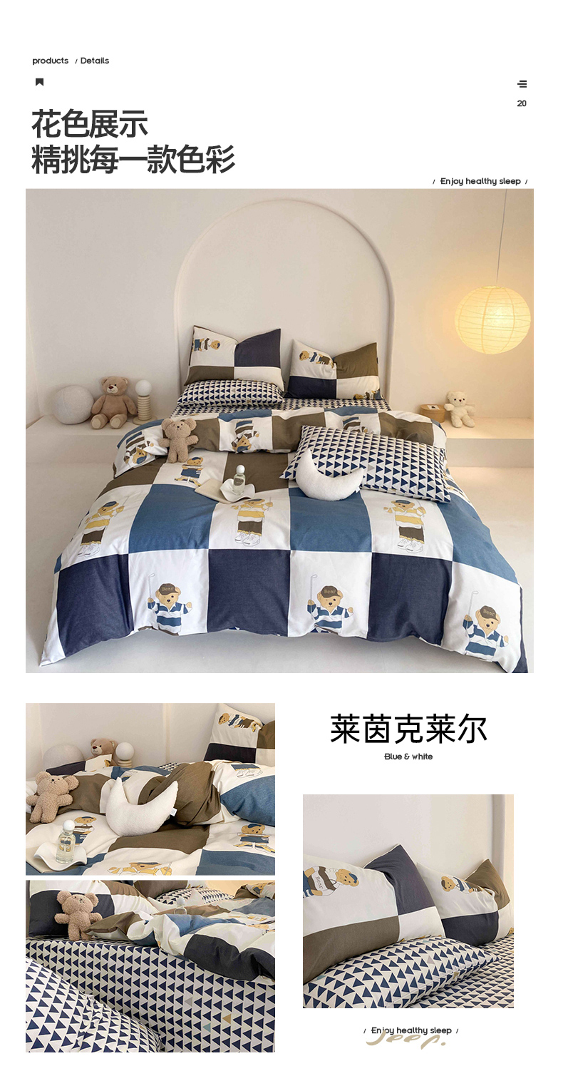 (总)佰亿莱 2024直播爆款小清新简约风全棉加厚磨毛四件套,爱心格,波浪兔,花萌,花园兔,咖啡熊,萌萌狗,时尚花季,时尚恐龙,田园花,郁金香,格韵,黑大格,简约-蓝,简约-绿,洛卡灰,绿格,斯诺克,银杏,羽叶,云舒粉