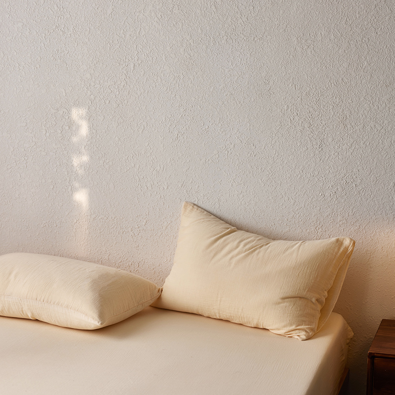 商品名称:简纯主义 2025新款全棉有机雾感纱双层皱皱纱系列单枕套 茉莉奶白