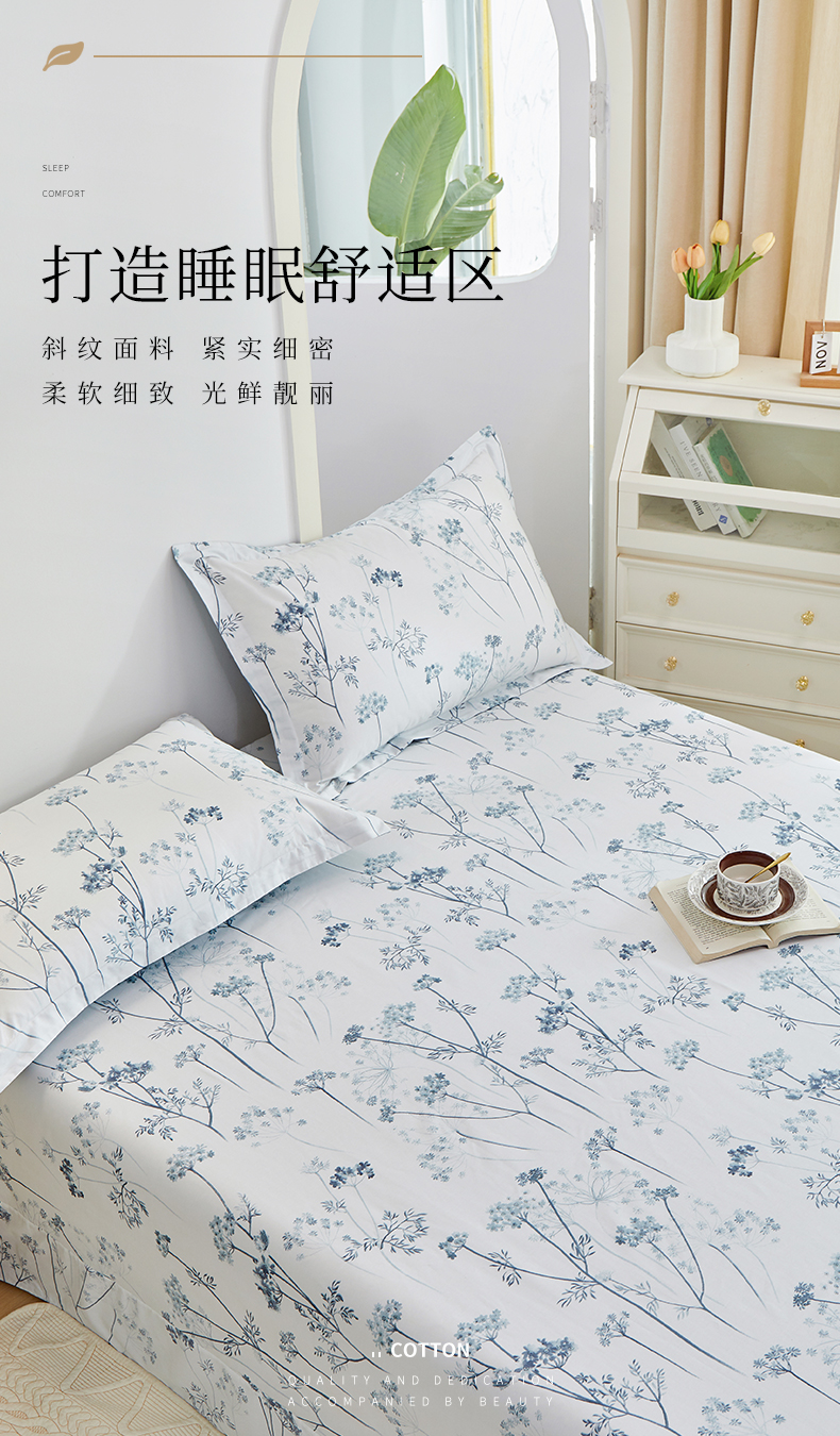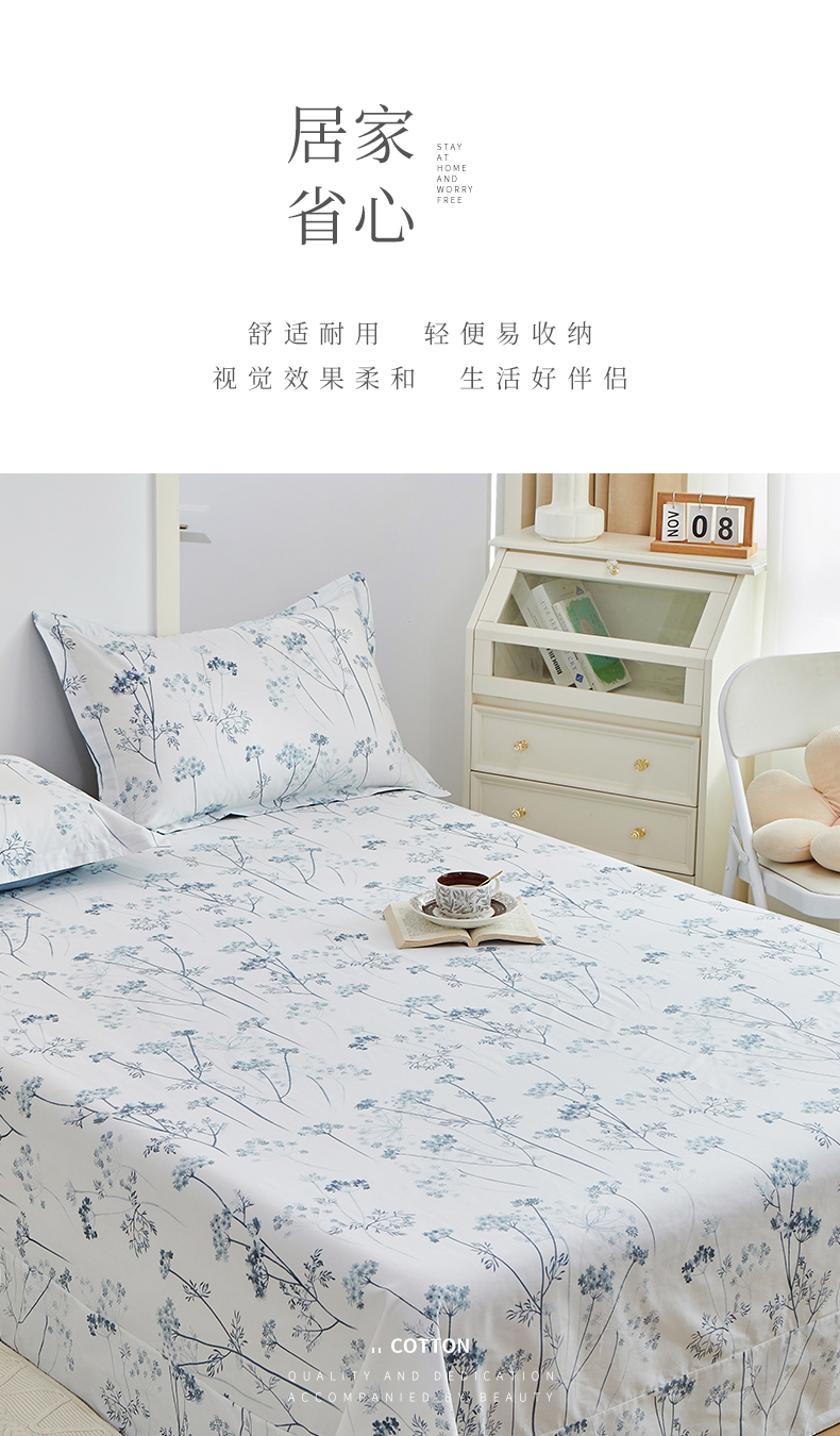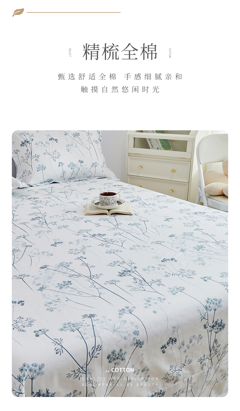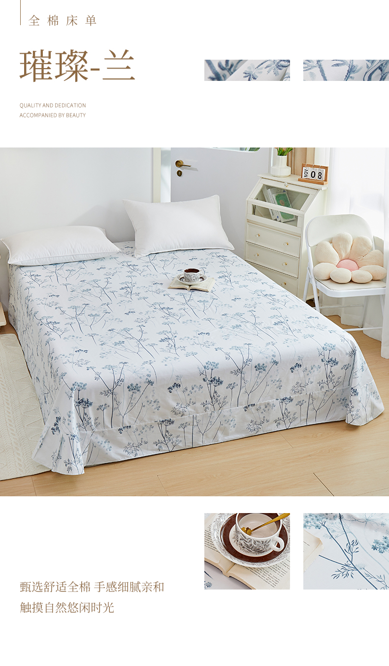 商品名称:元元被芯 2024新款小清新全棉套件单品-单床单 璀璨-兰