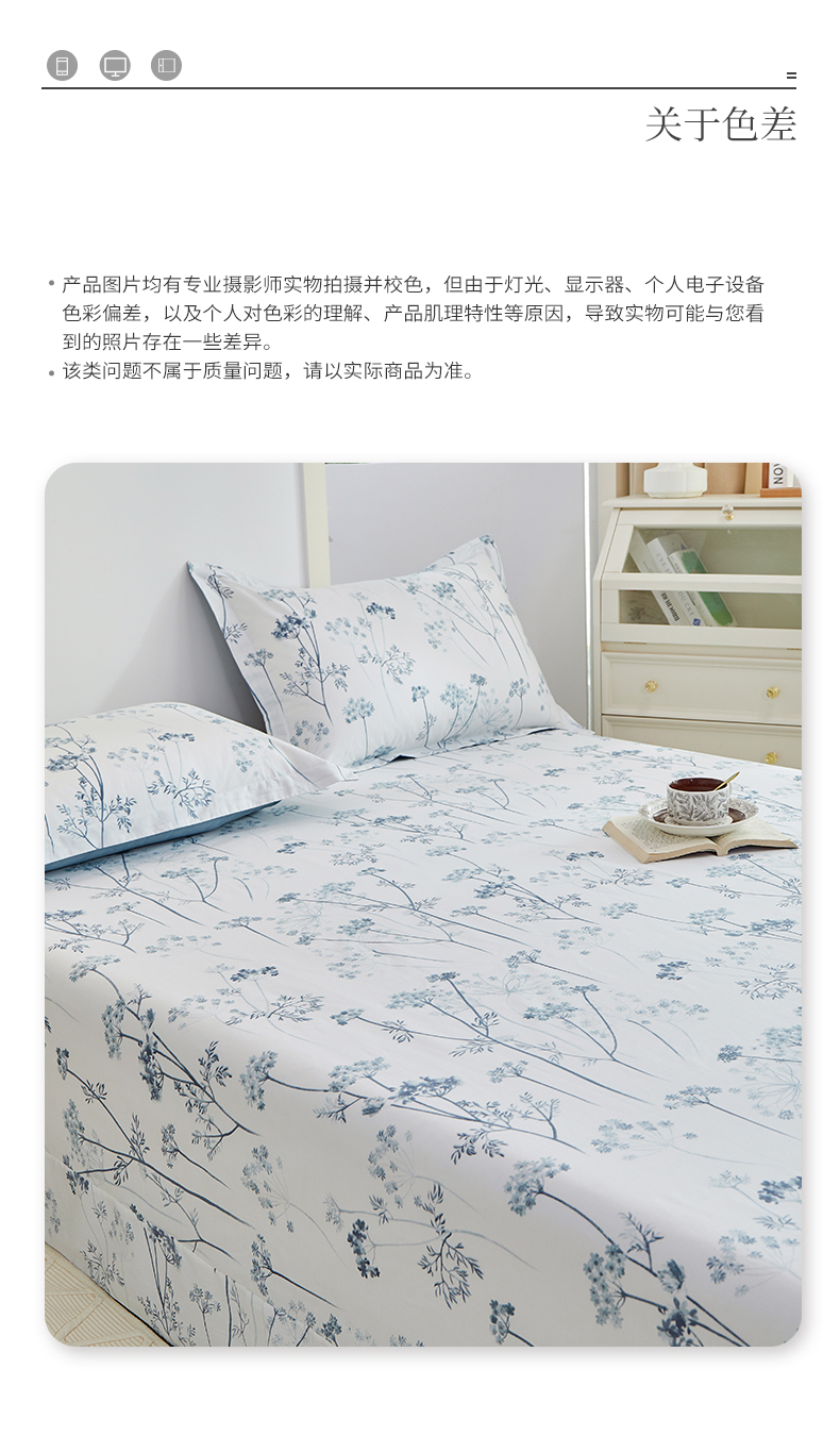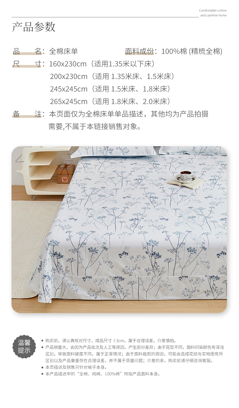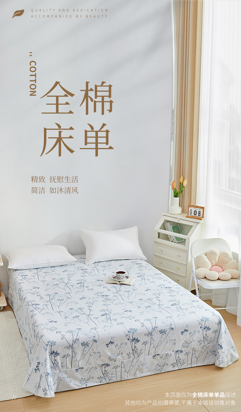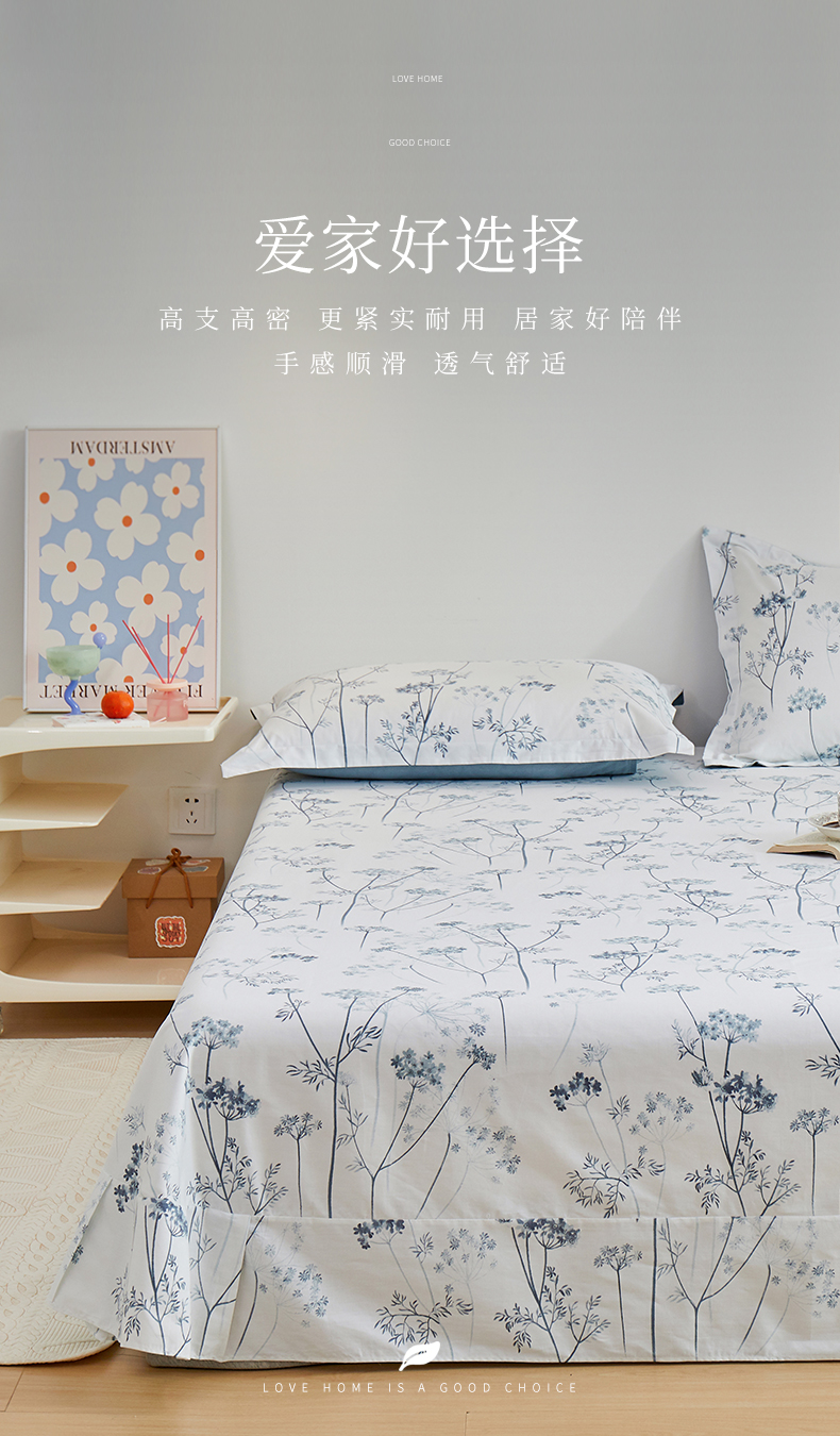 商品名称:元元被芯 2024新款小清新全棉套件单品-单床单 璀璨-兰