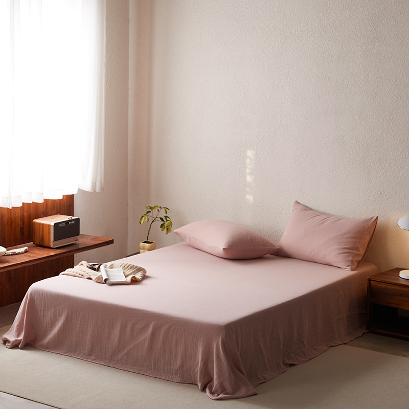 商品名称:简纯主义 2025新款全棉有机雾感纱双层皱皱纱系列单床单 春日桃桃