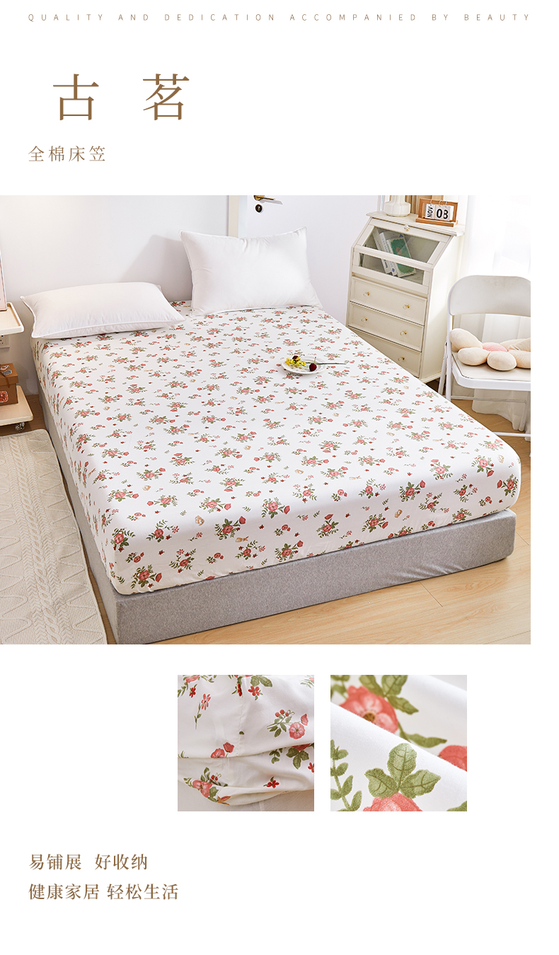当前位置: 91家纺网 > 商品网购 > 床上用品 > 床笠 > 元元被芯 2024新款小清新全棉套件单品-单床笠 古茗