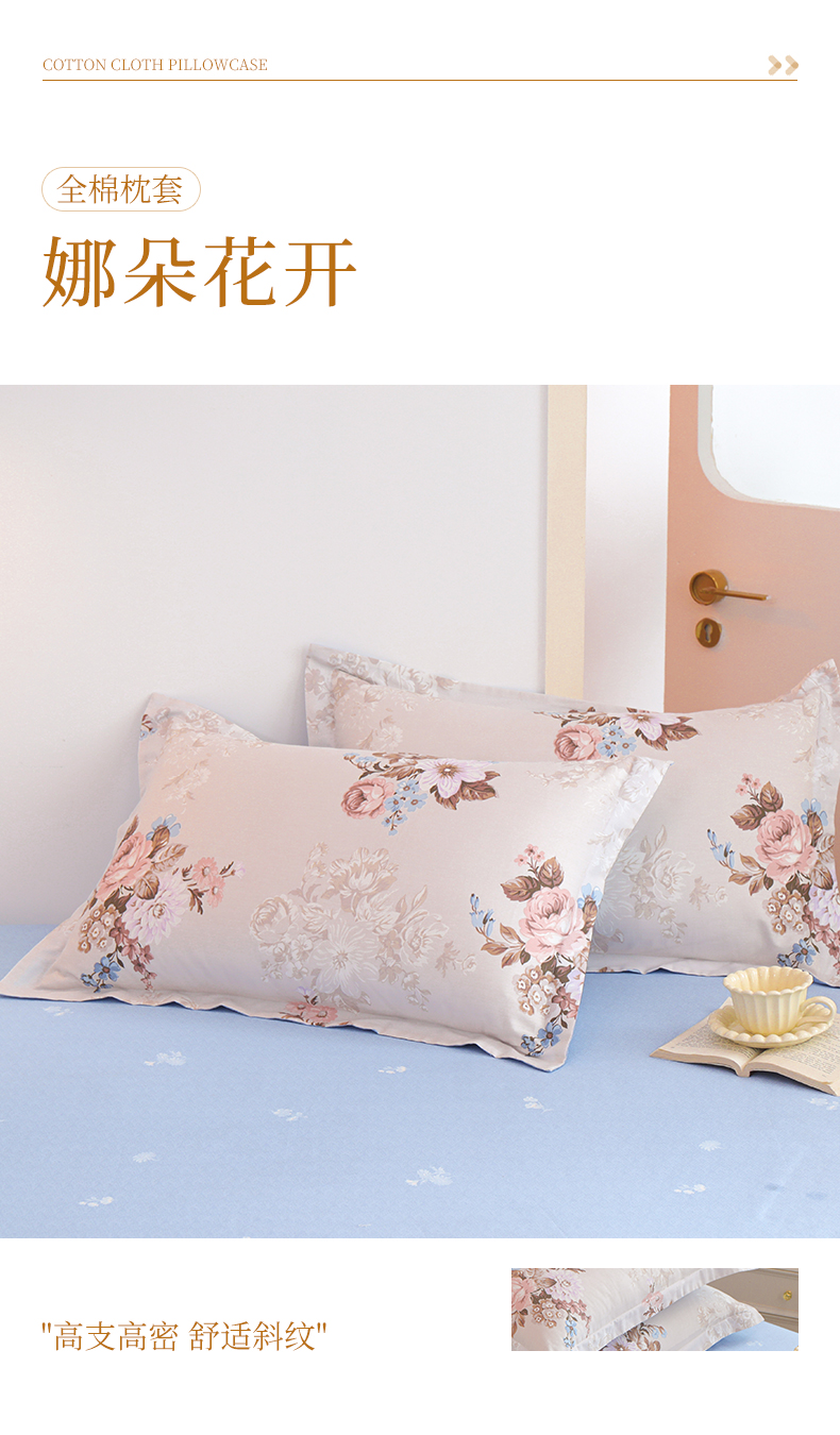 商品名称:元元被芯 2024新款小清新全棉套件单品-单枕套 娜朵花开