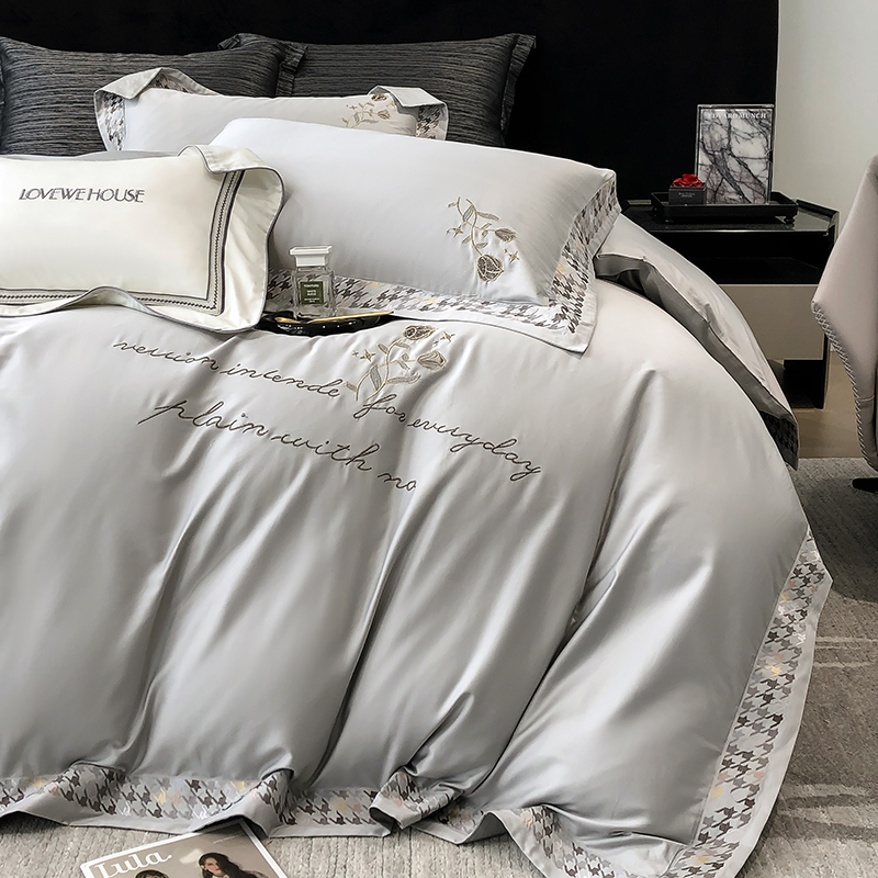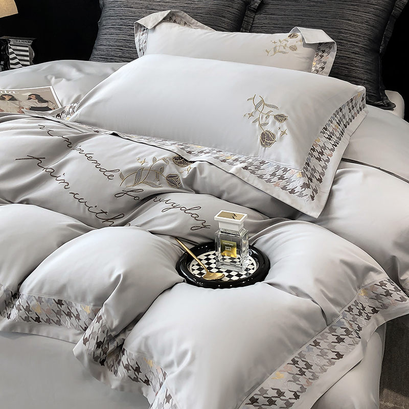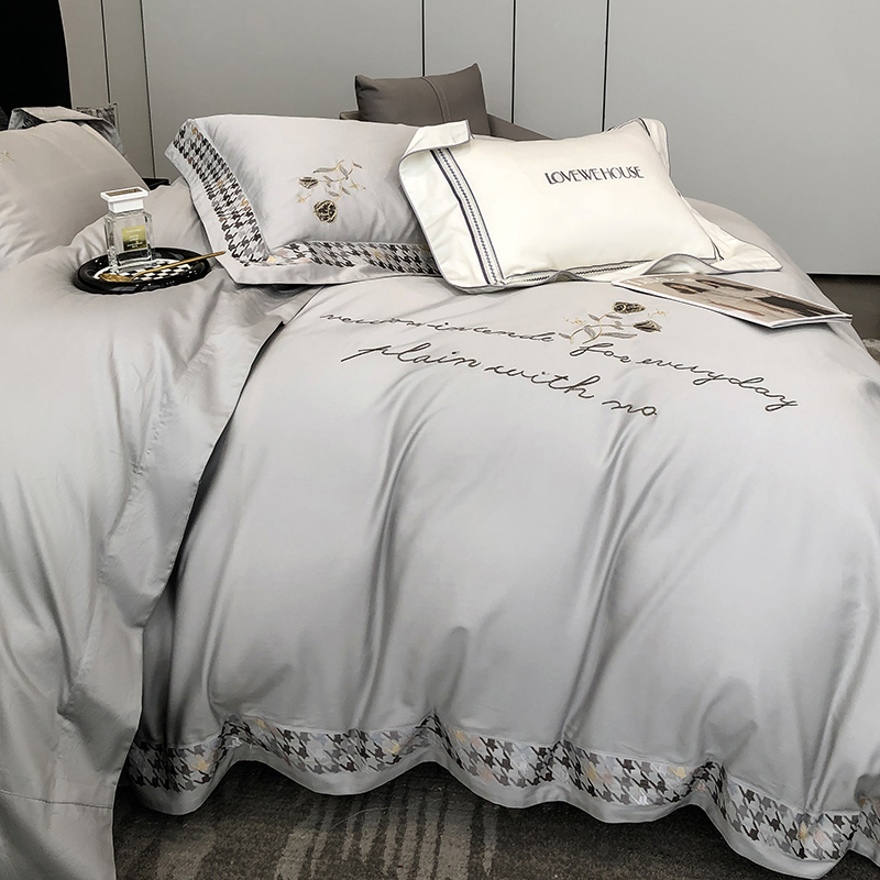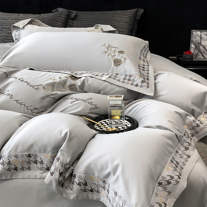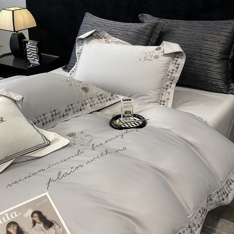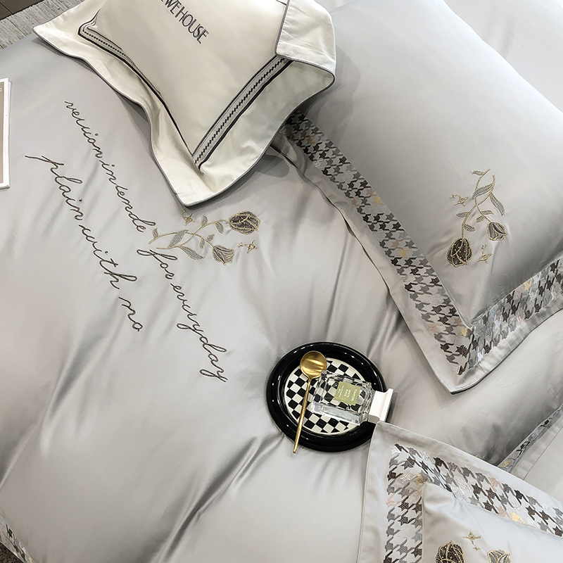 若未家居 2025新款长绒棉高精密刺绣款百万针工艺套件千鸟格刺绣---锦簇 锦簇 时尚灰