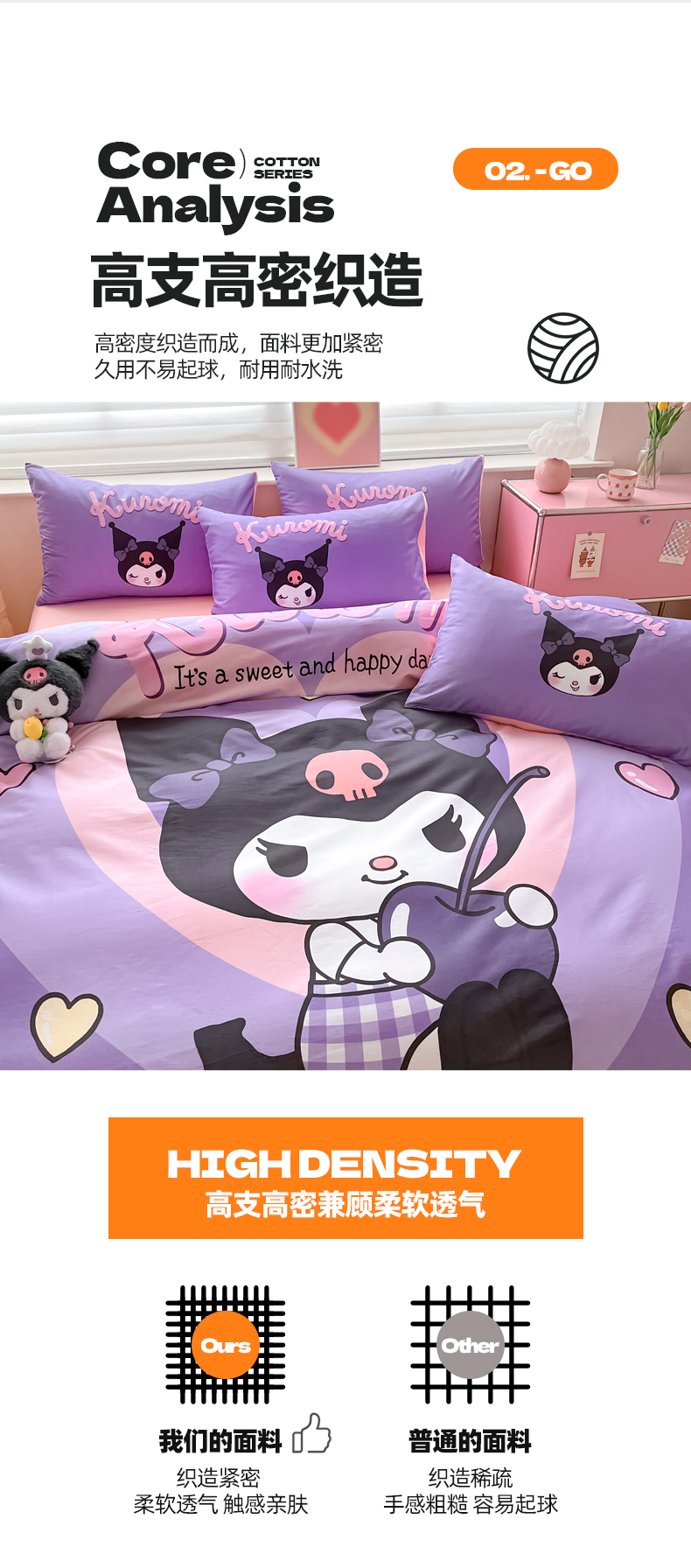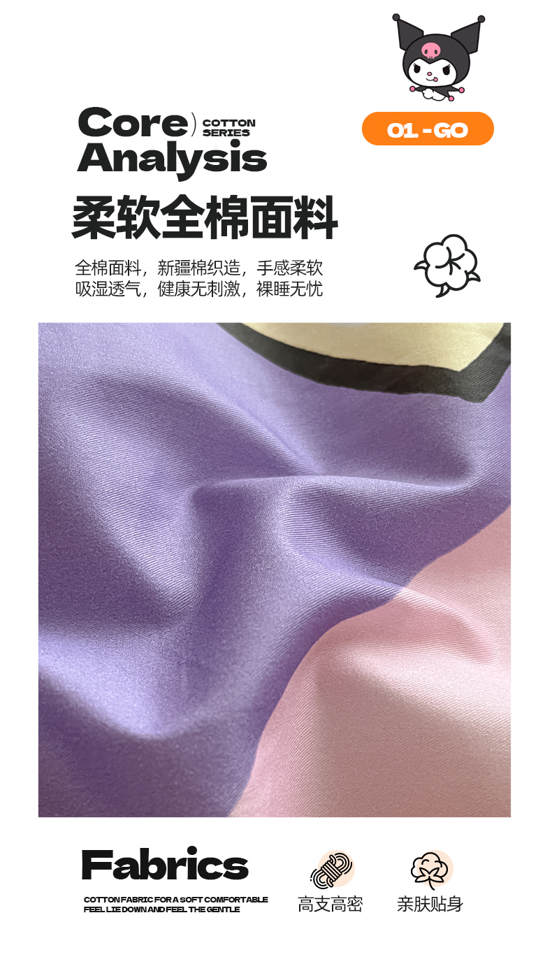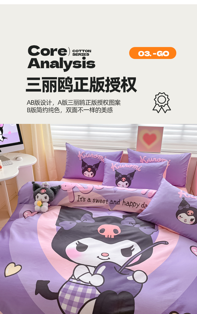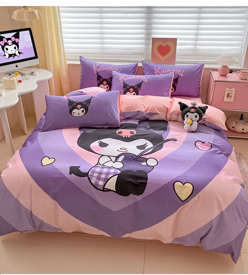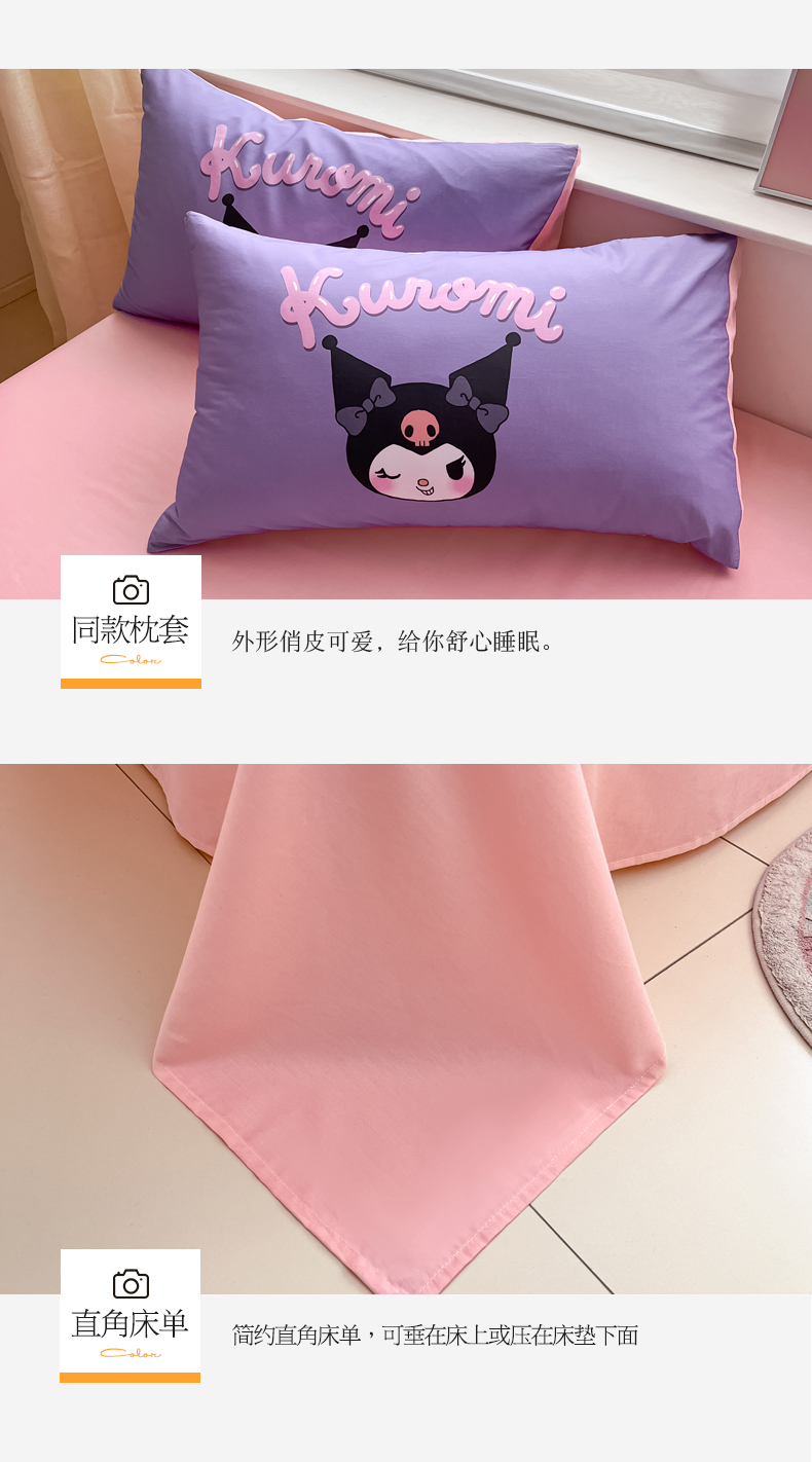 当前位置: 91家纺网 > 商品网购 > 床品套件 > 四件套 > 全棉普通四件套 > 金爱家 2024新款大阪全棉数码印花三丽鸥系列四件套 樱桃库洛米