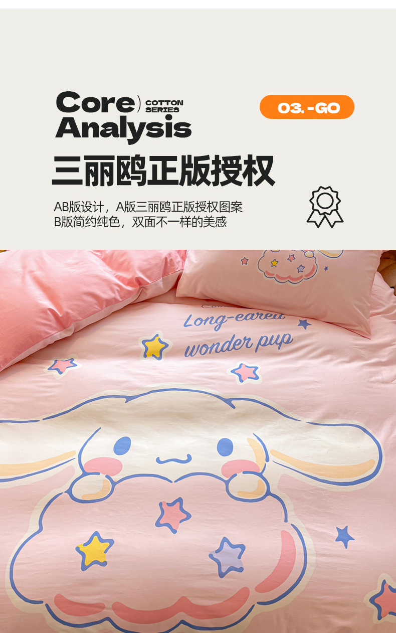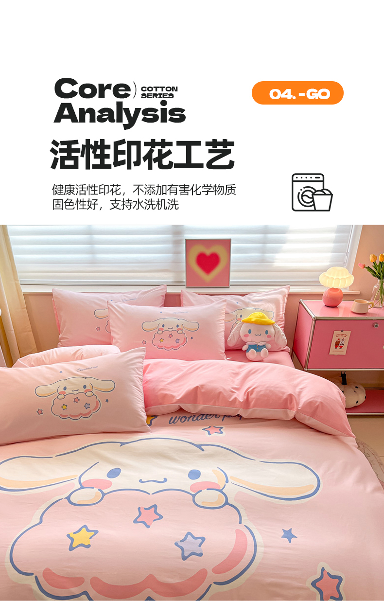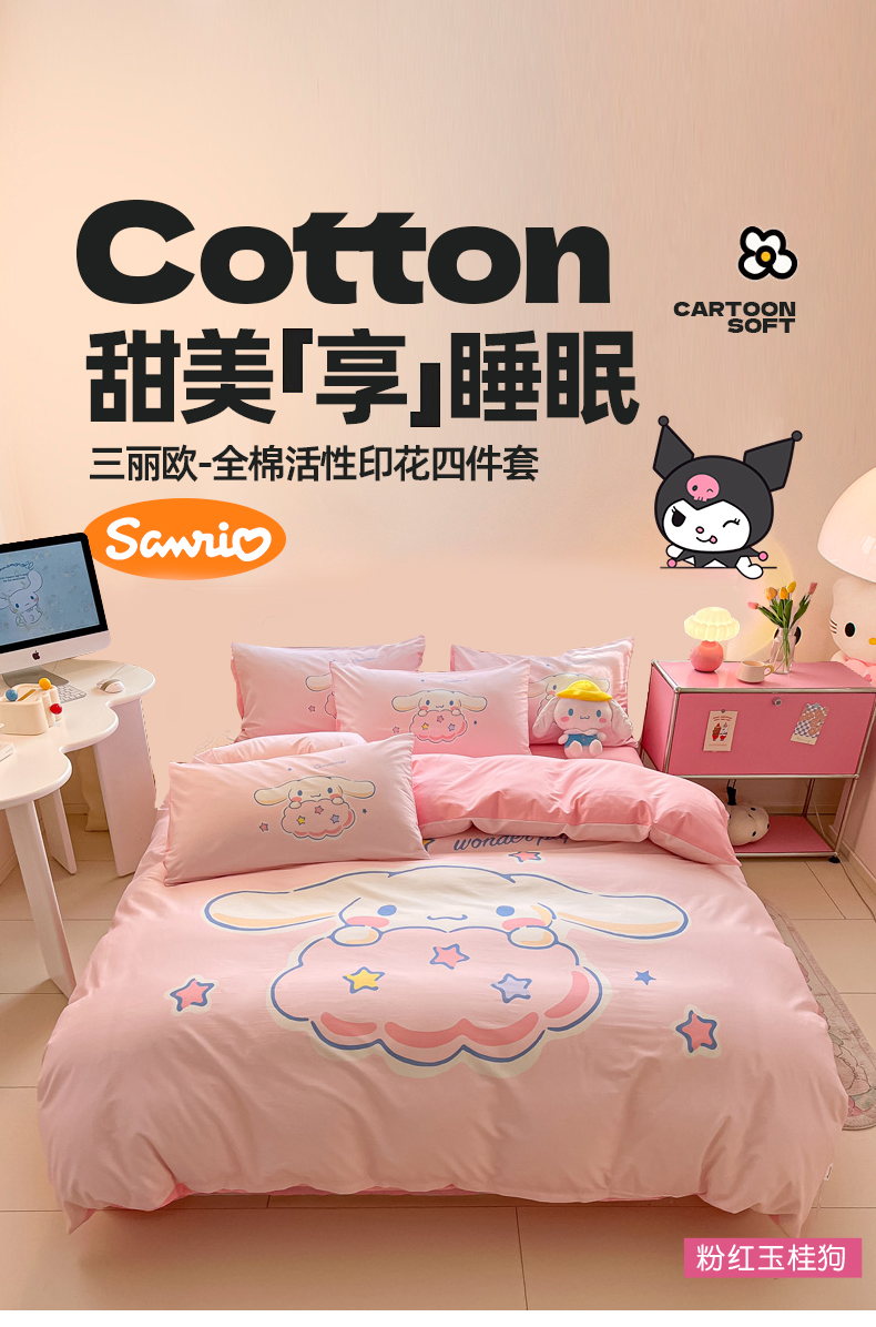 当前位置: 91家纺网 > 商品网购 > 床品套件 > 四件套 > 全棉普通四件套 > 金爱家 2024新款大阪全棉数码印花三丽鸥系列四件套 粉红玉桂狗