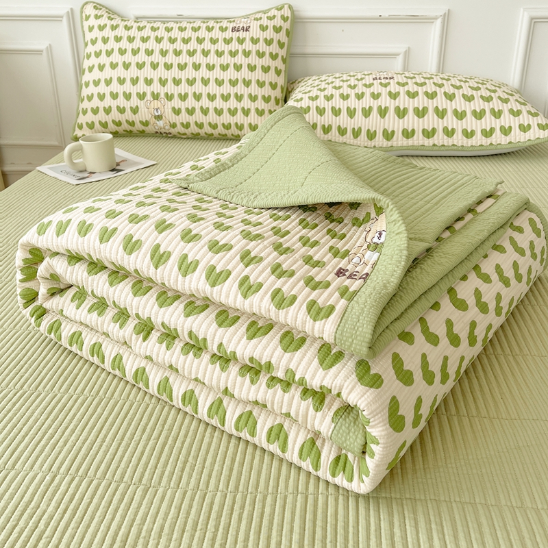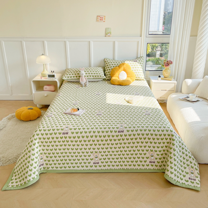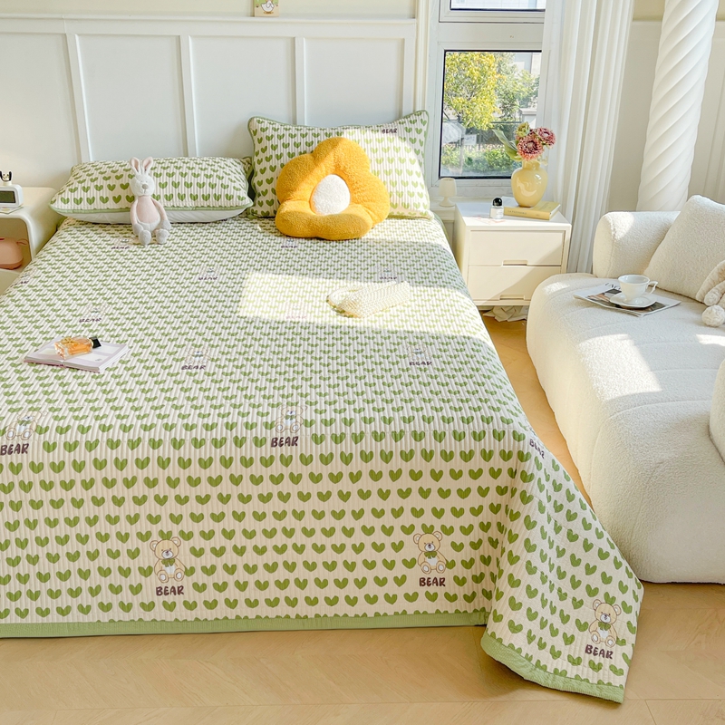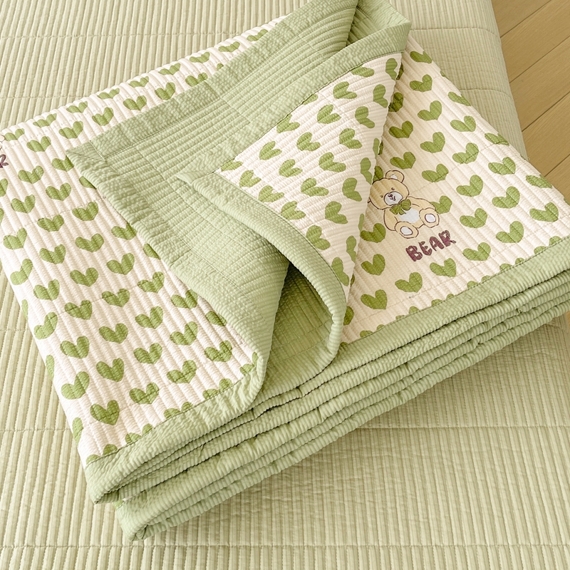 梵朴 2025新款A类安抚颗粒泡泡棉夹棉床盖 爱心小熊