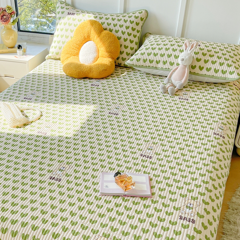 商品名称:梵朴 2025新款A类安抚颗粒泡泡棉夹棉床盖 爱心小熊