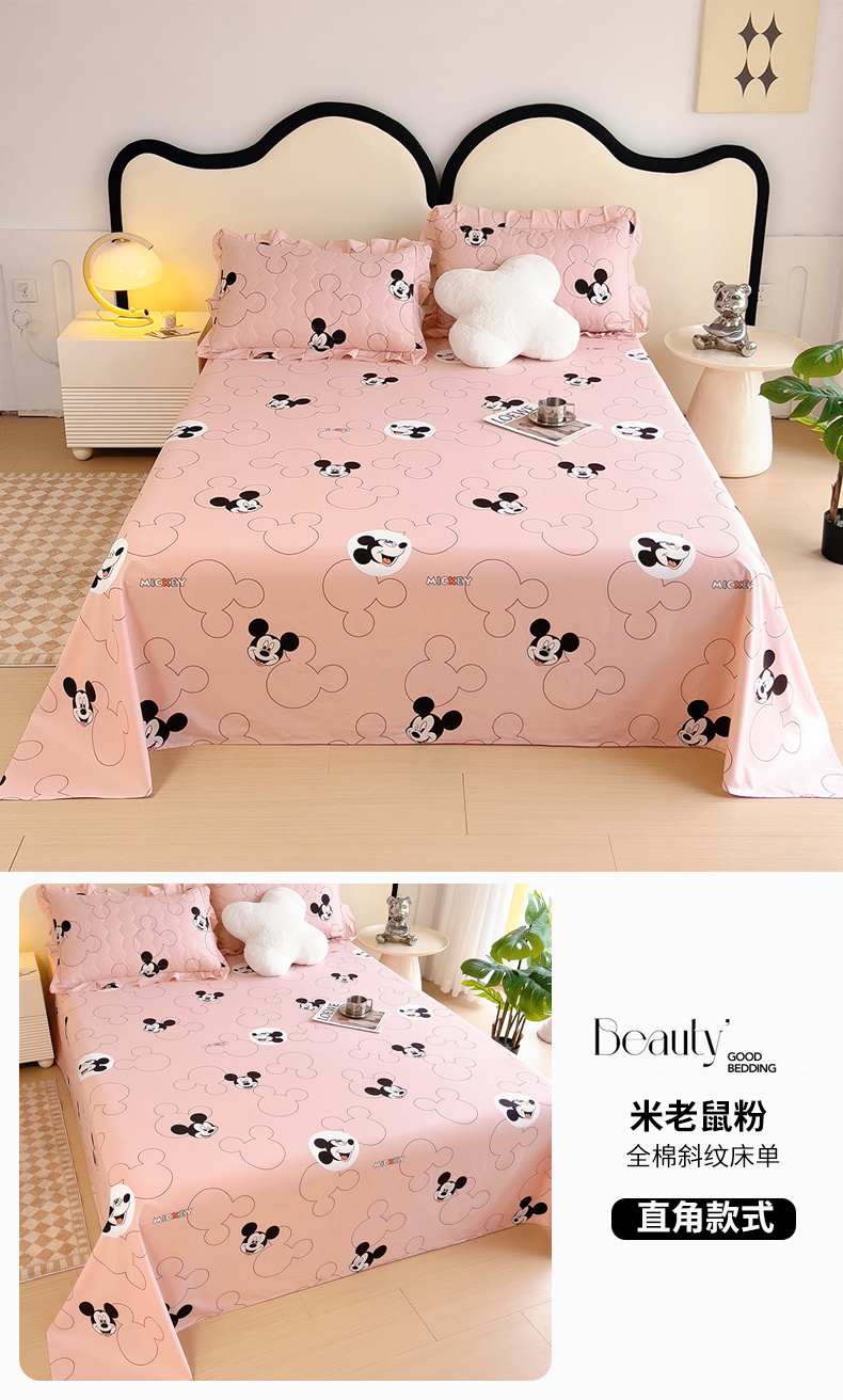 情煊家纺 2024新款全棉斜纹直角床单系列-印花款 米老鼠粉