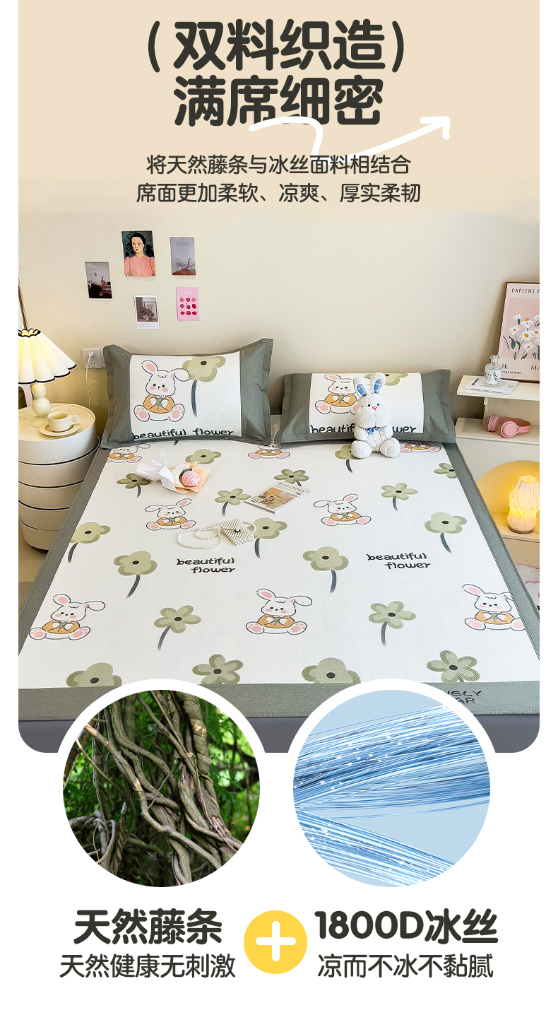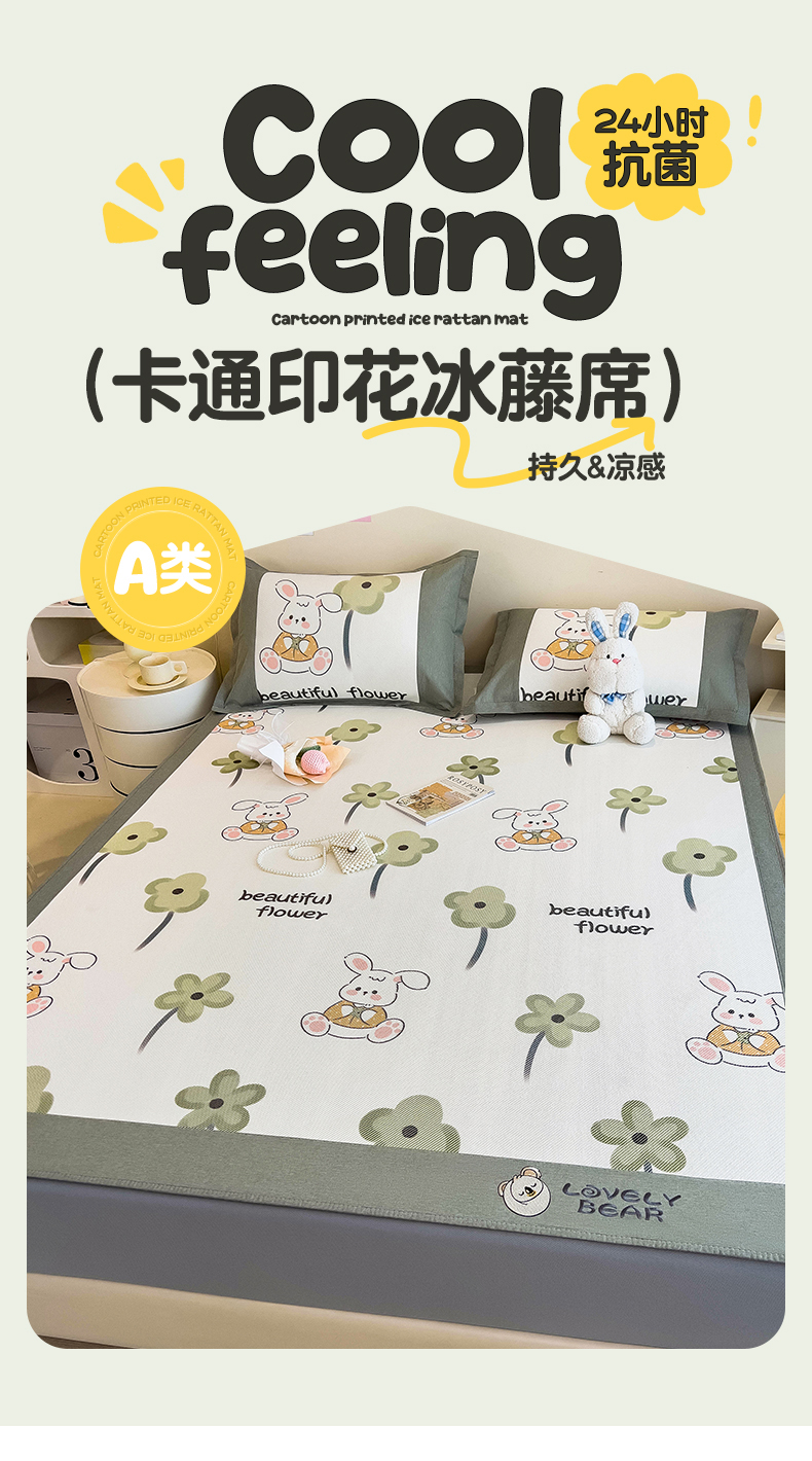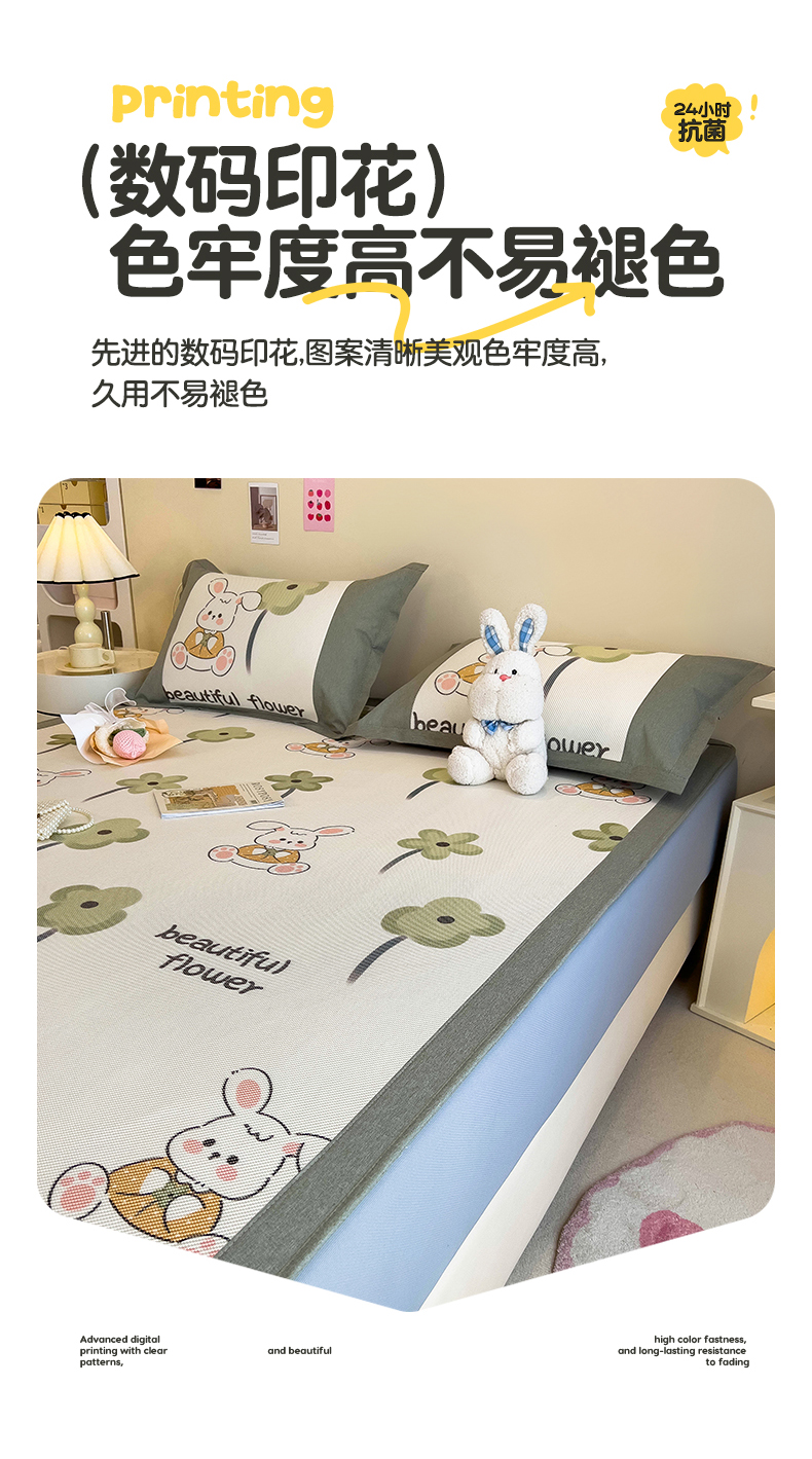当前位置: 91家纺网 > 商品网购 > 床上用品 > 凉席 > 其他凉席 > 全季家居 2024新款A类抗菌数码印花冰藤席三件套 床笠款-可爱兔