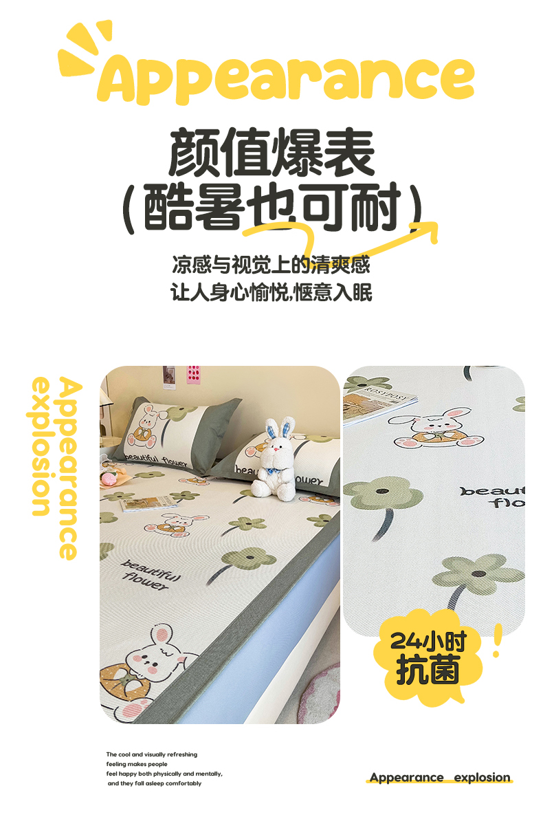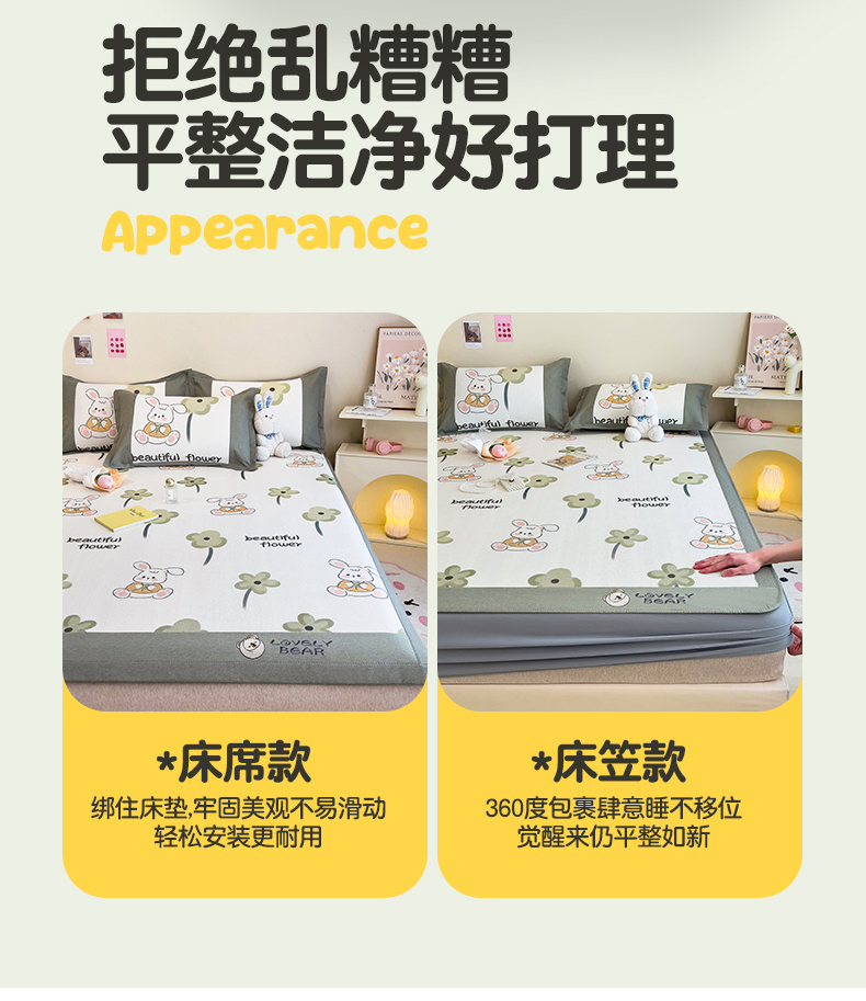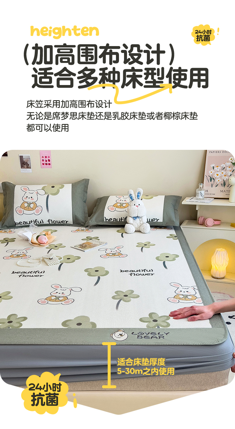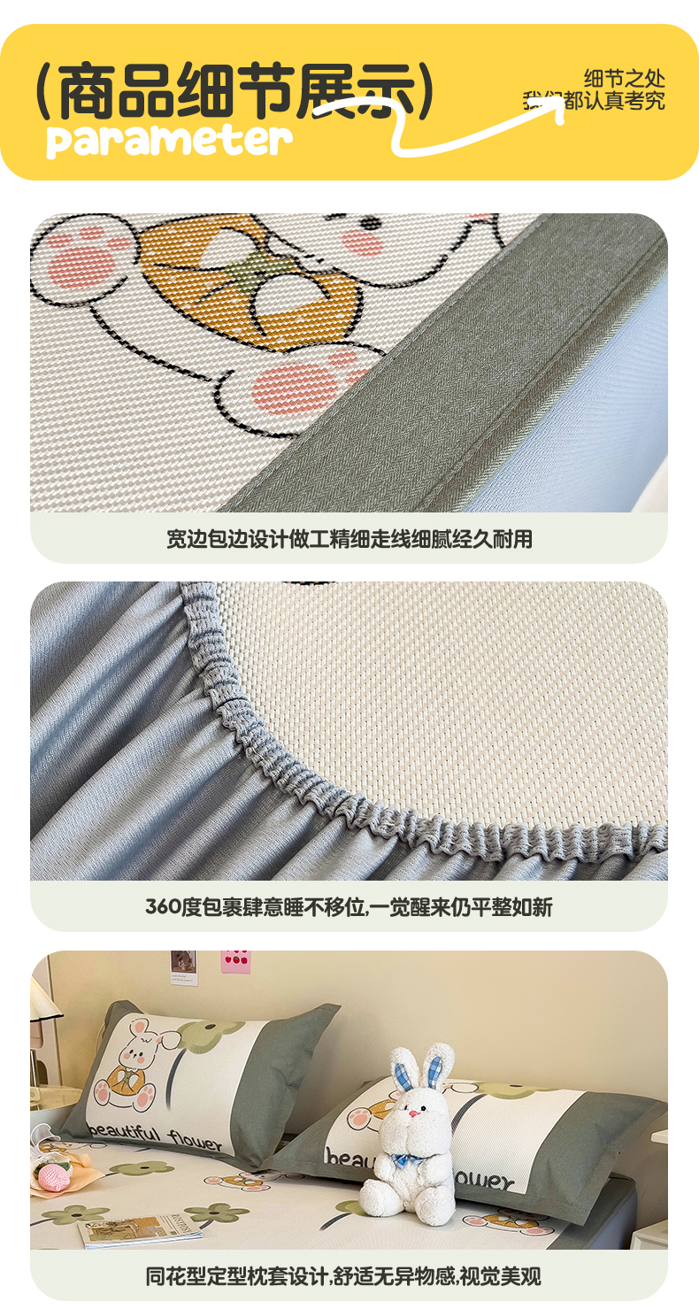 当前位置: 91家纺网 > 商品网购 > 床上用品 > 凉席 > 其他凉席 > 全季家居 2024新款A类抗菌数码印花冰藤席三件套 床笠款-可爱兔