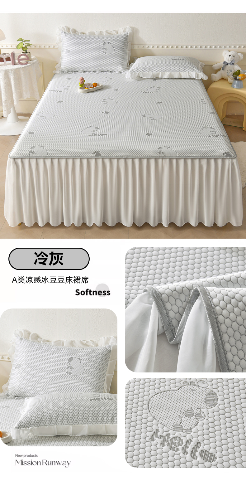 (总)鑫顺欣 2025新款A类凉感冰豆豆床裙席,卡皮巴拉 灰,卡皮巴拉 绿,卡皮巴拉 卡其,卡皮巴拉 粉,卡皮巴拉 蓝,樱桃,天蓝,初夏粉,湖绿,米白,暮云灰
