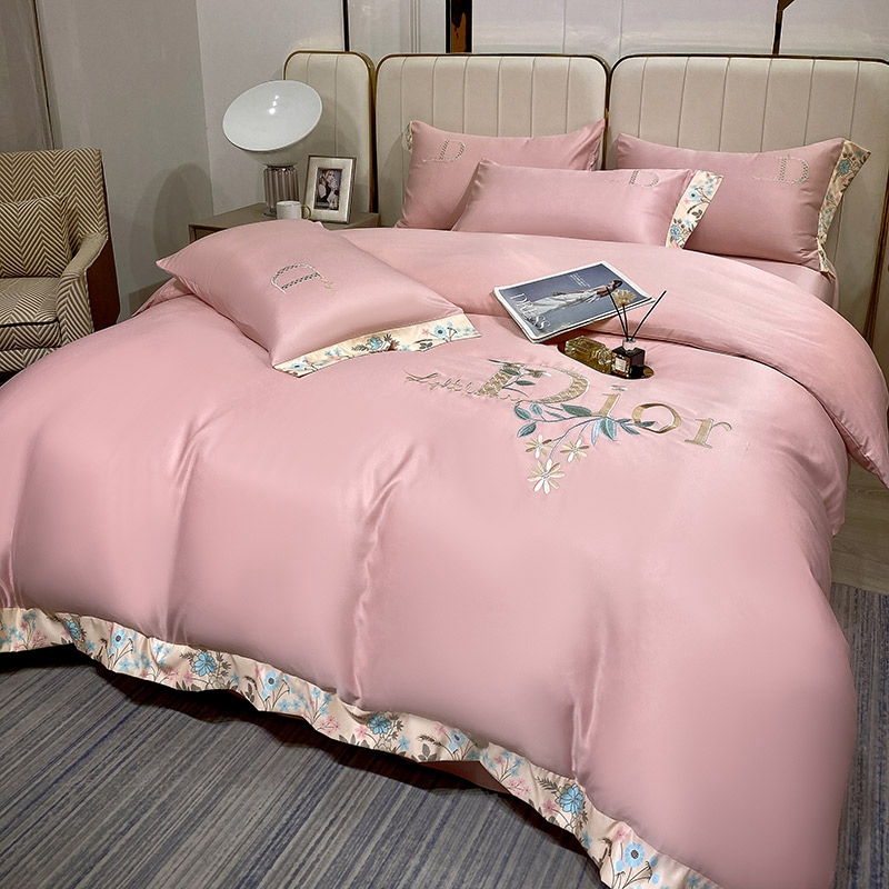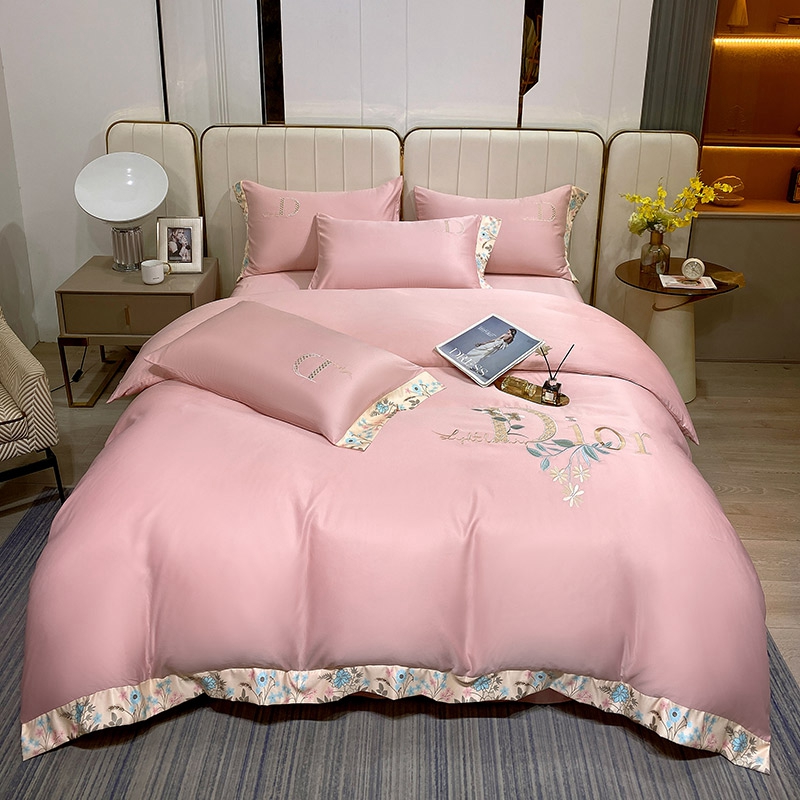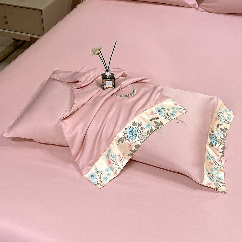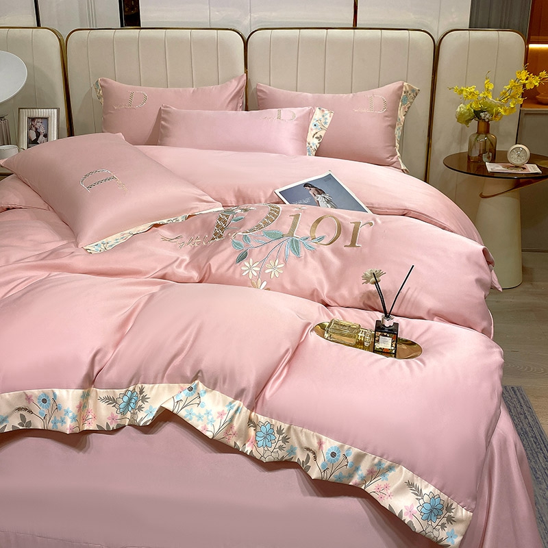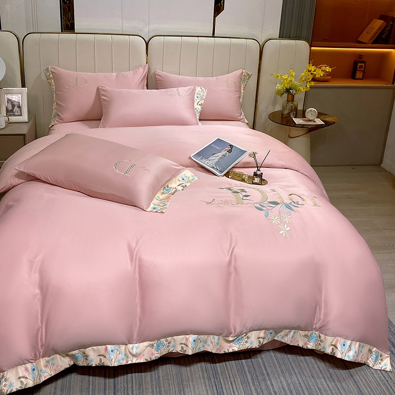 凡客家居 2024新款水洗真丝绣花四件套 香奈-粉