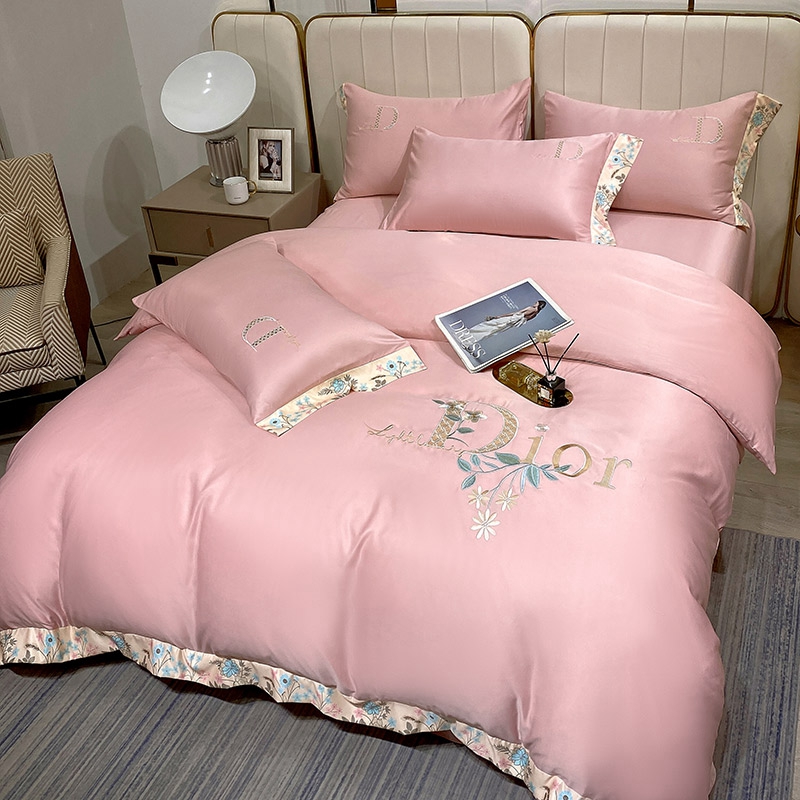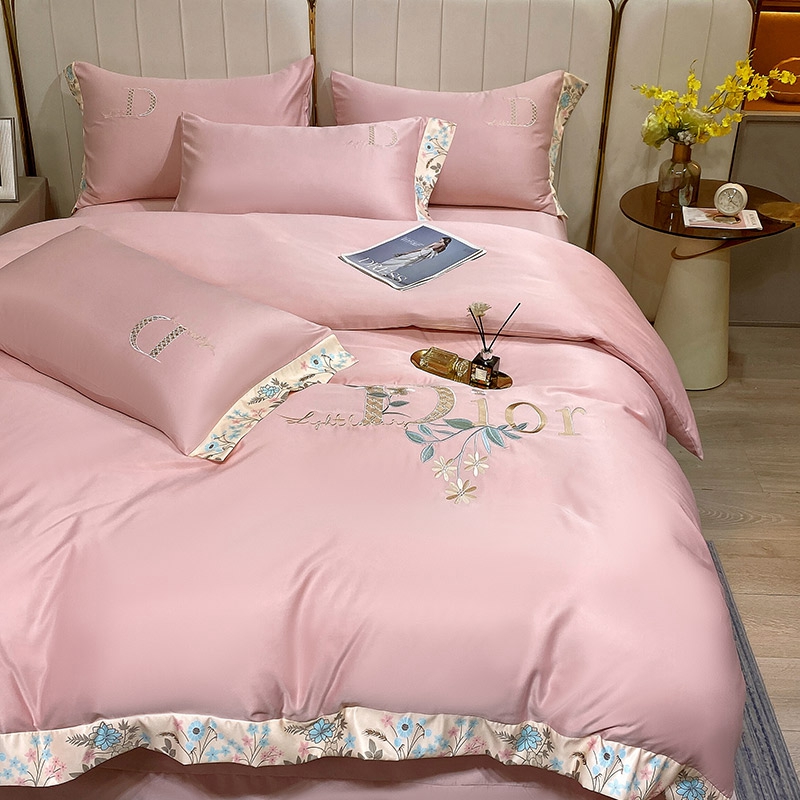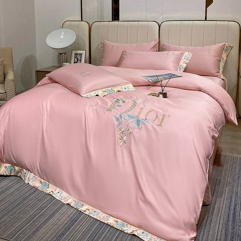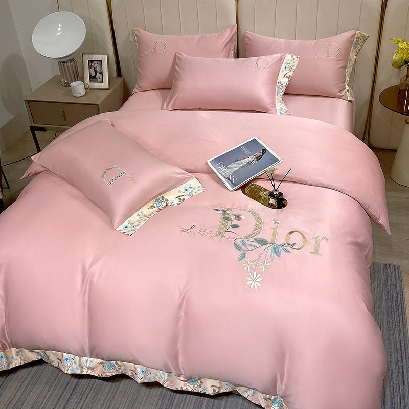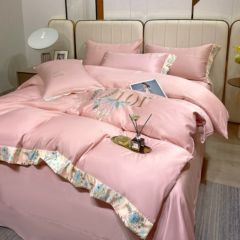 凡客家居 2024新款水洗真丝绣花四件套 香奈-粉