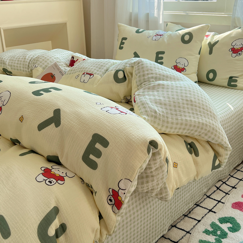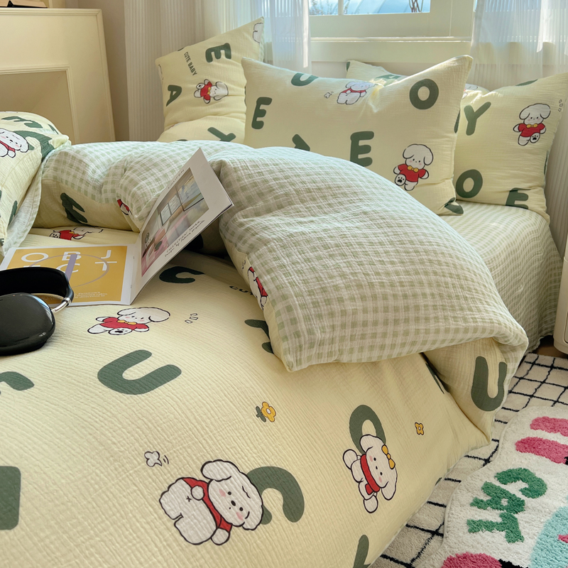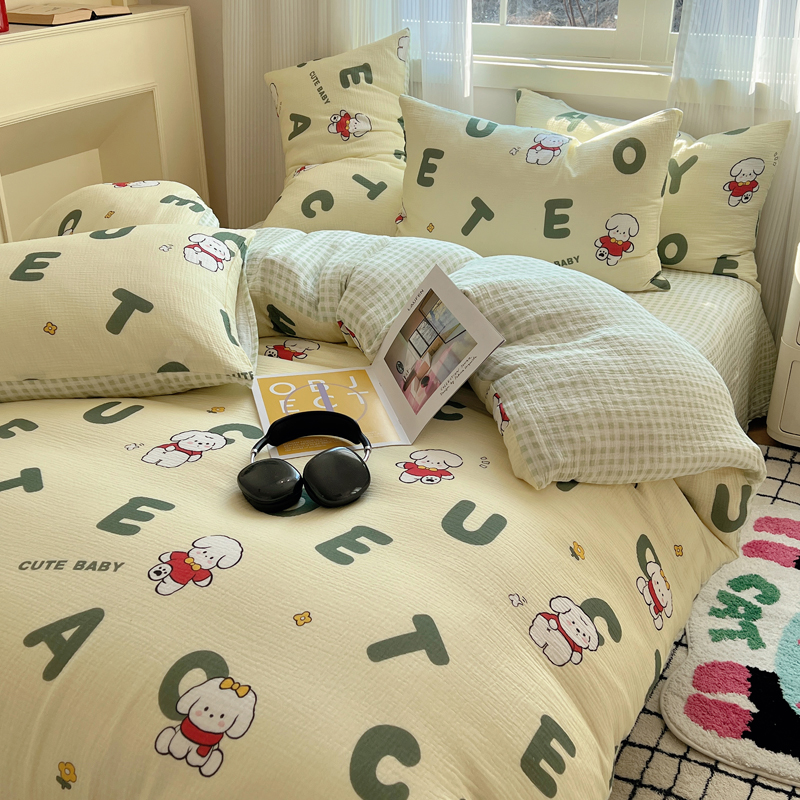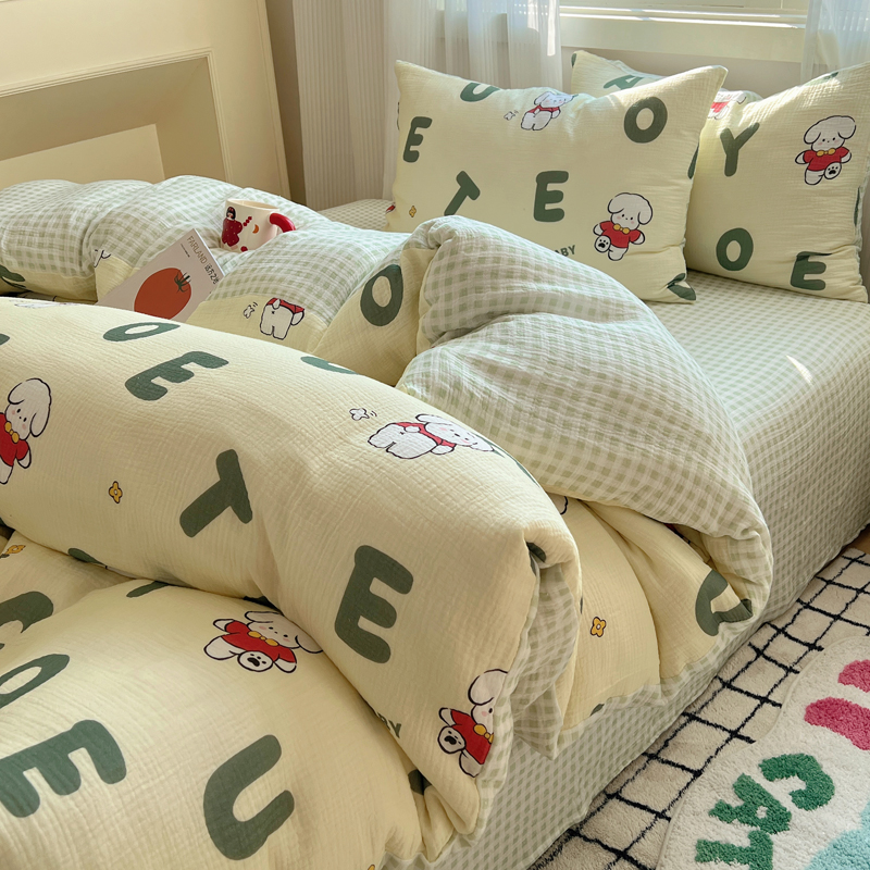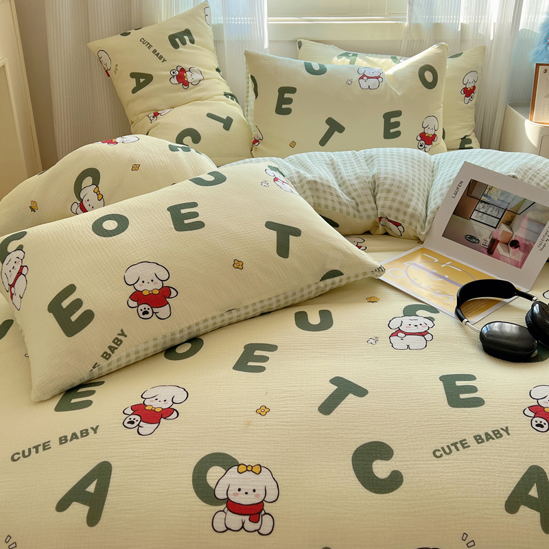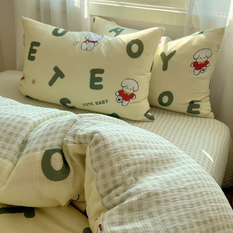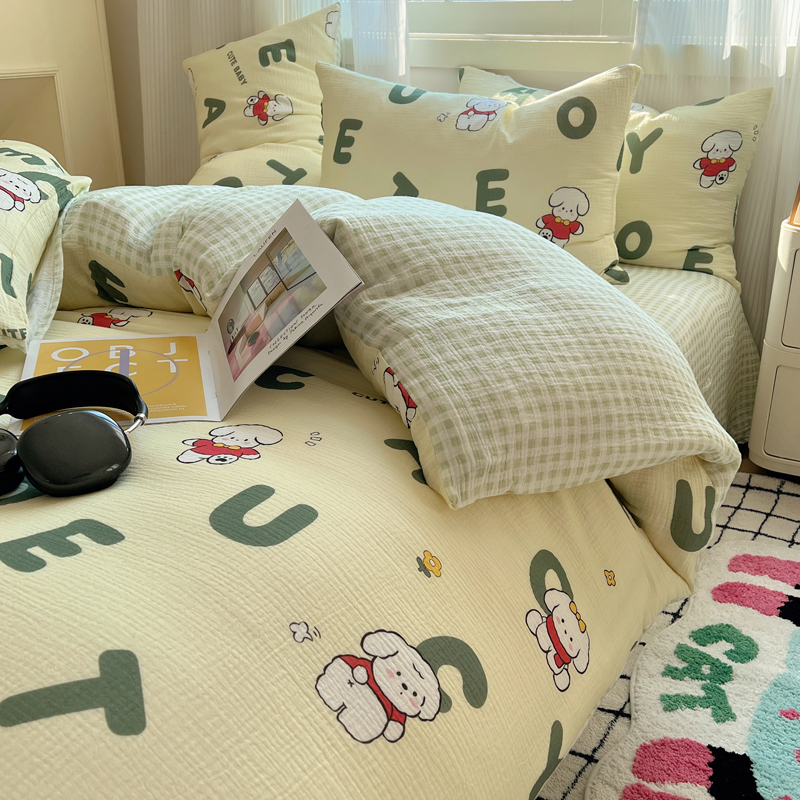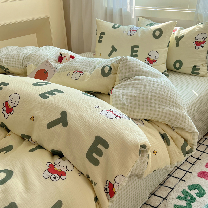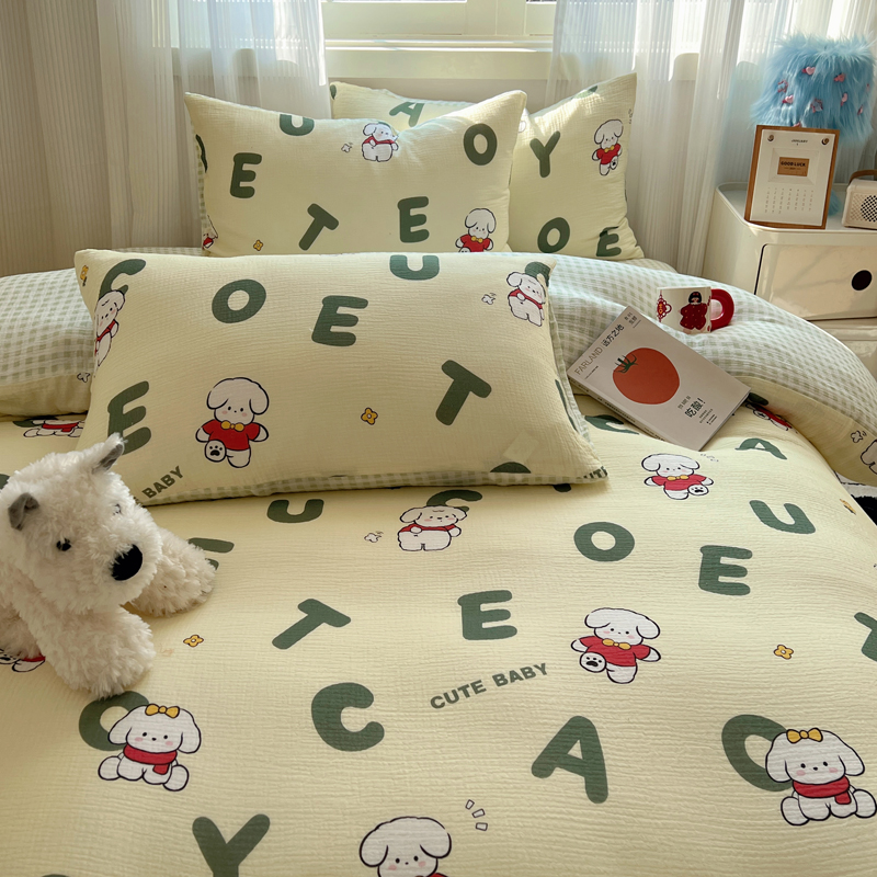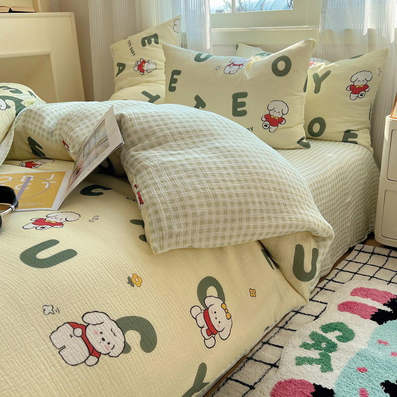 当前位置: 91家纺网 > 商品网购 > 床品套件 > 四件套 > 水洗棉四件套 > 盼季 2024新款A类母婴级水洗棉床上用品四件套卡通儿童床单被套宿舍三件套 绿格字母狗