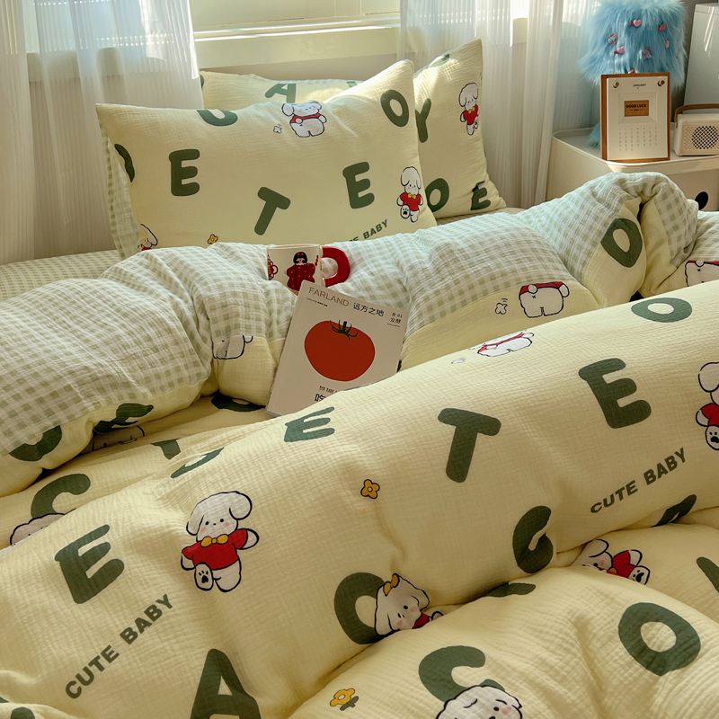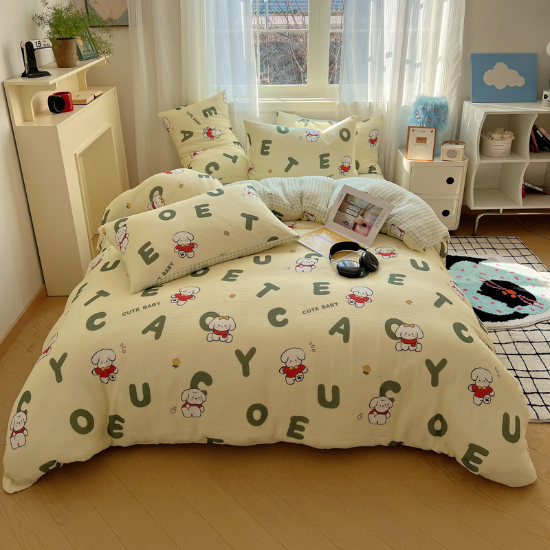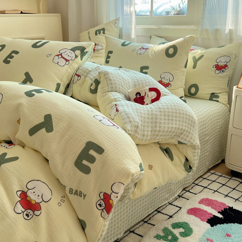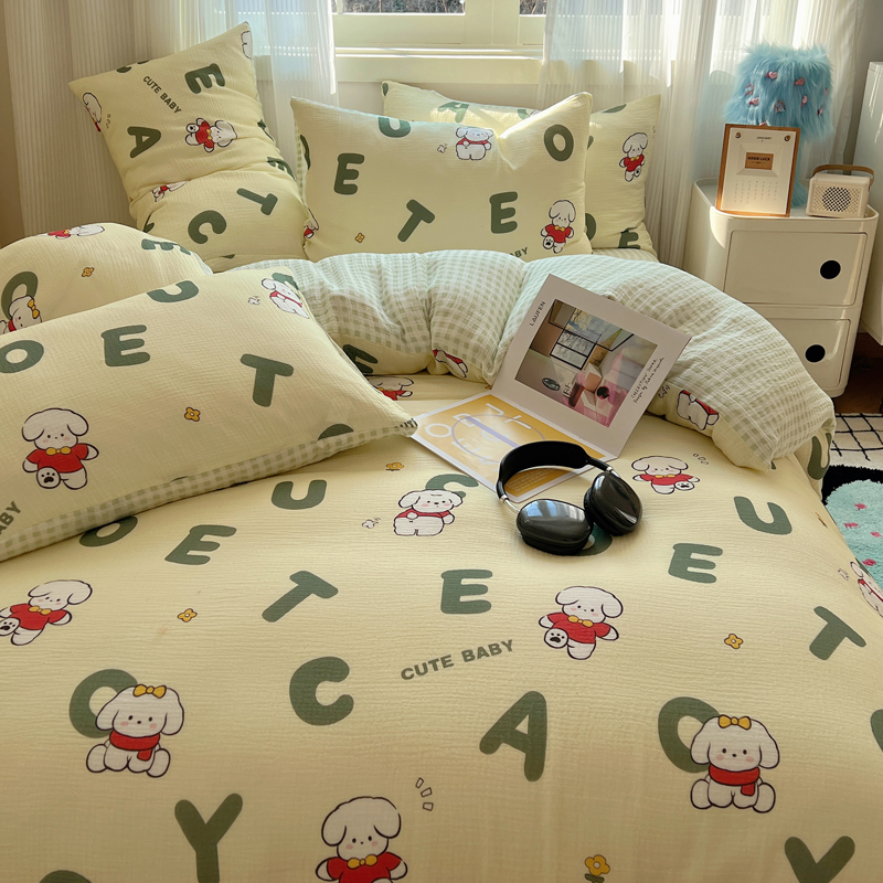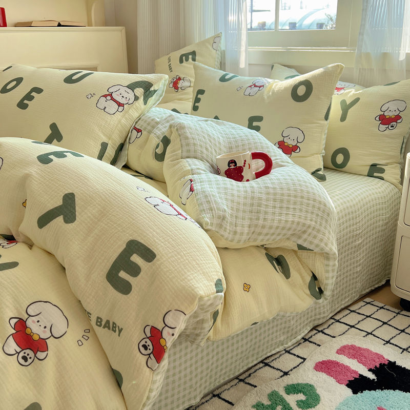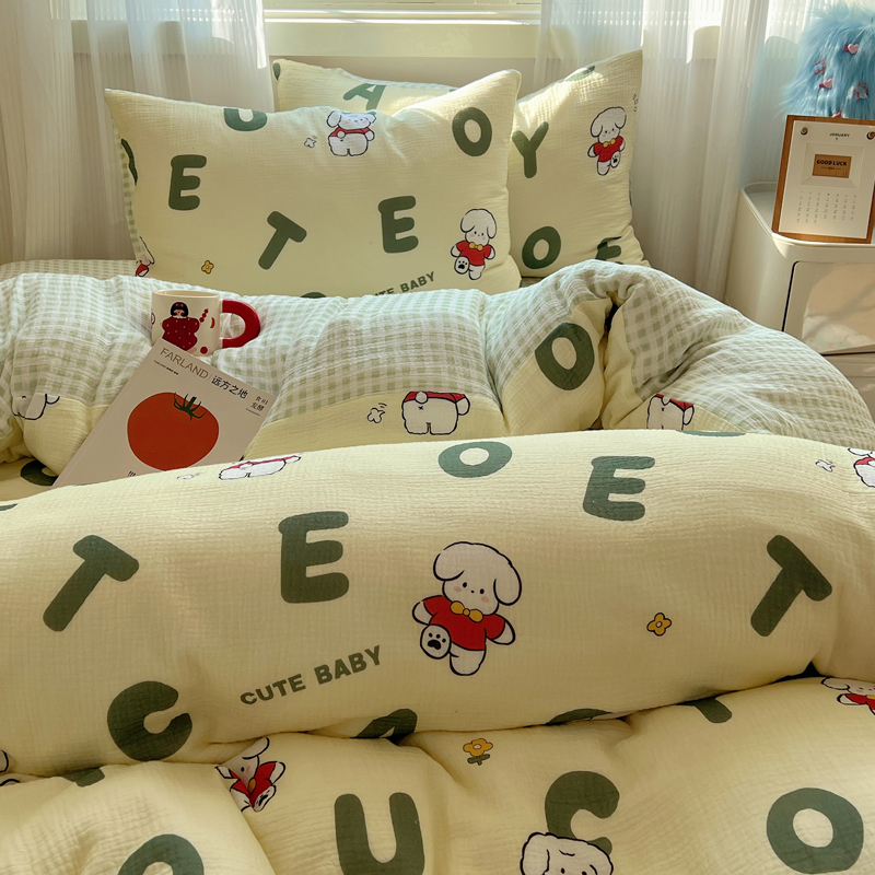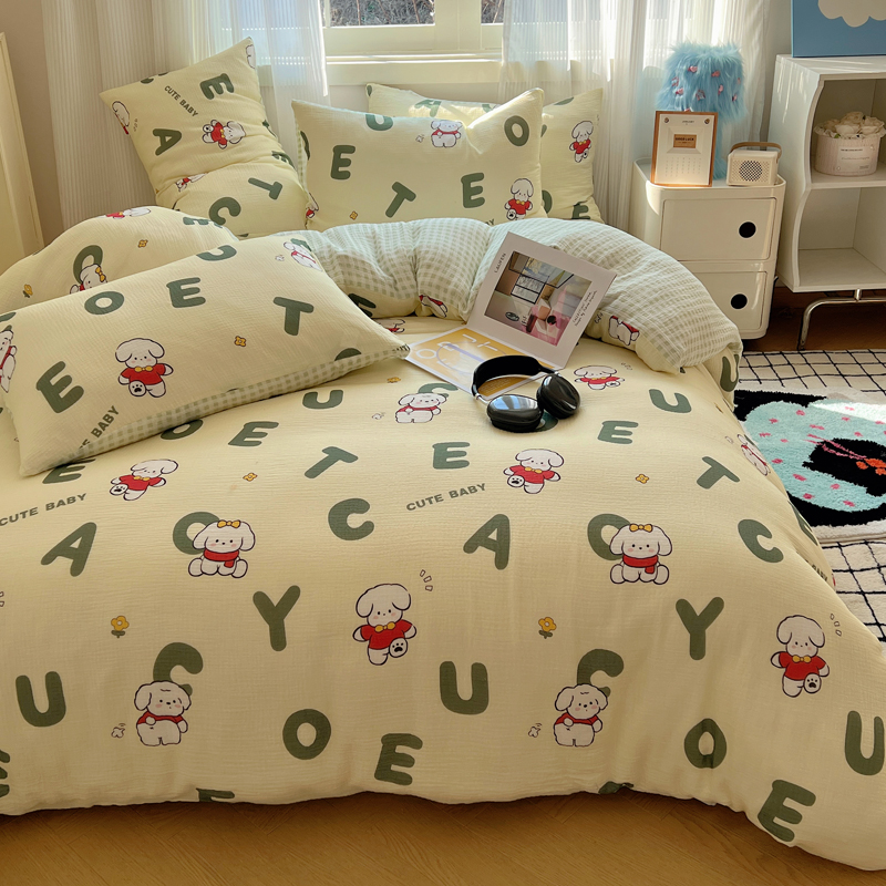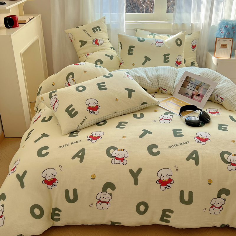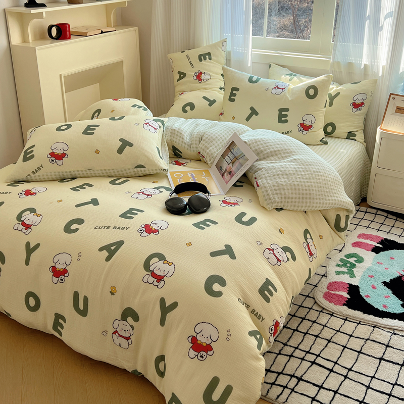 当前位置: 91家纺网 > 商品网购 > 床品套件 > 四件套 > 水洗棉四件套 > 盼季 2024新款A类母婴级水洗棉床上用品四件套卡通儿童床单被套宿舍三件套 绿格字母狗