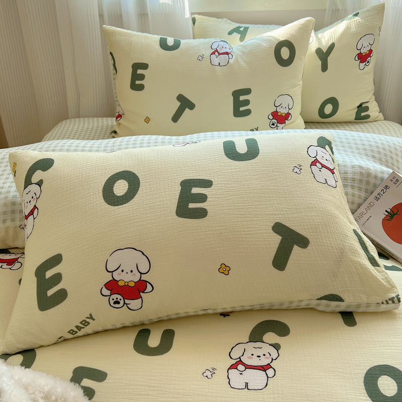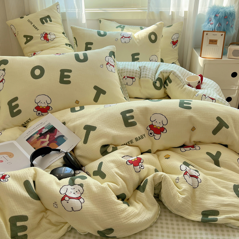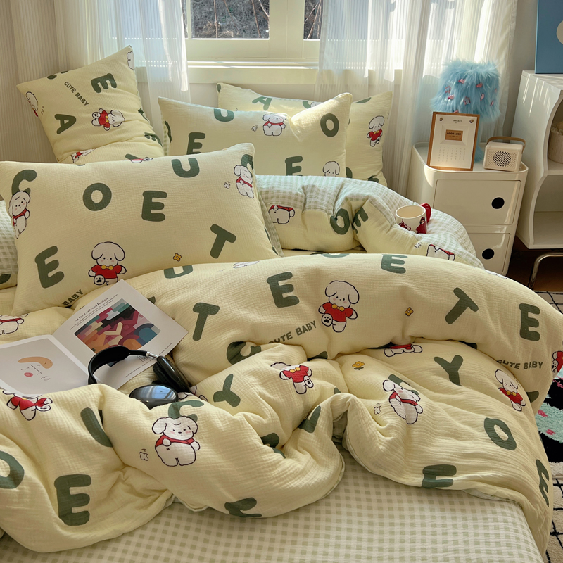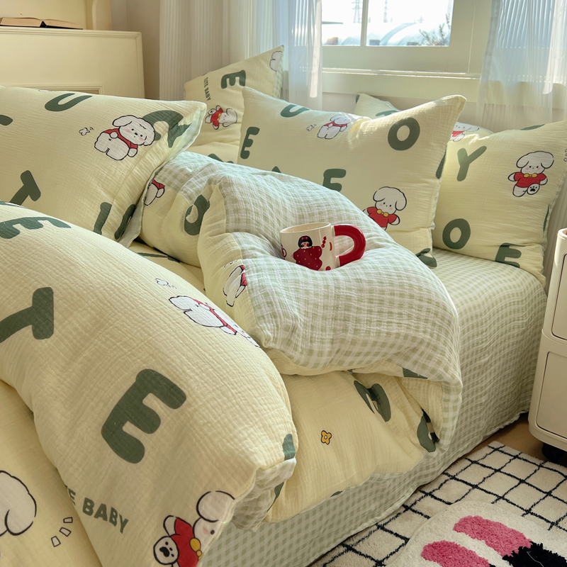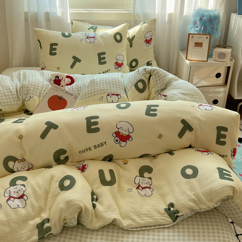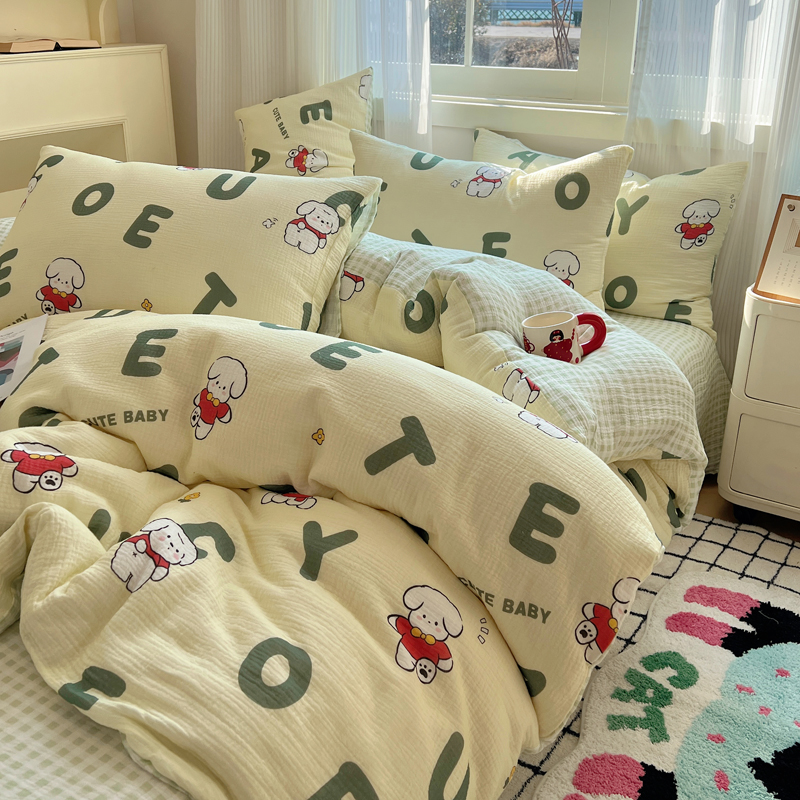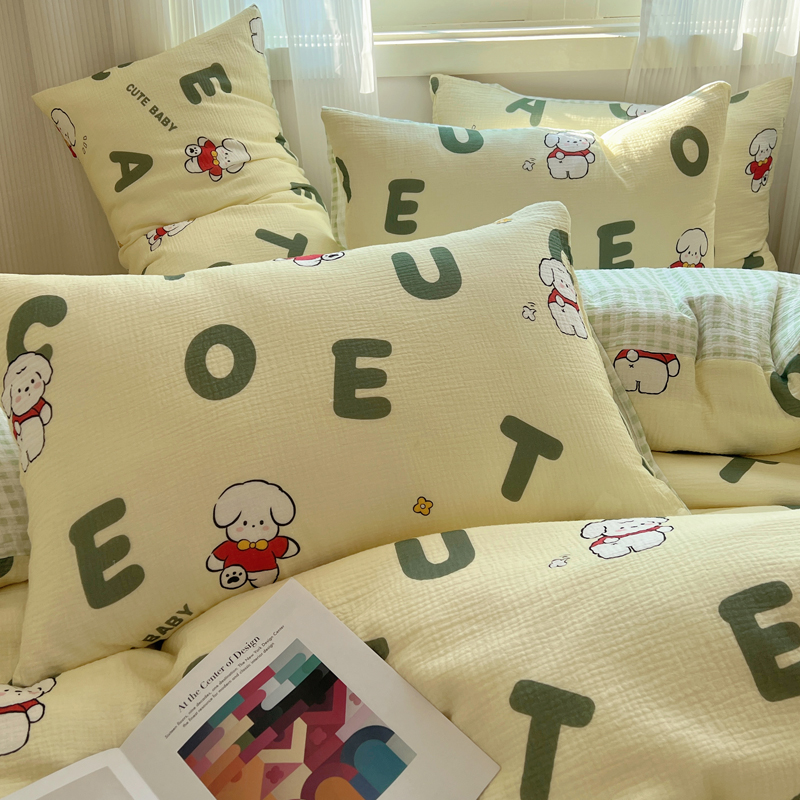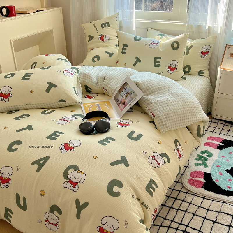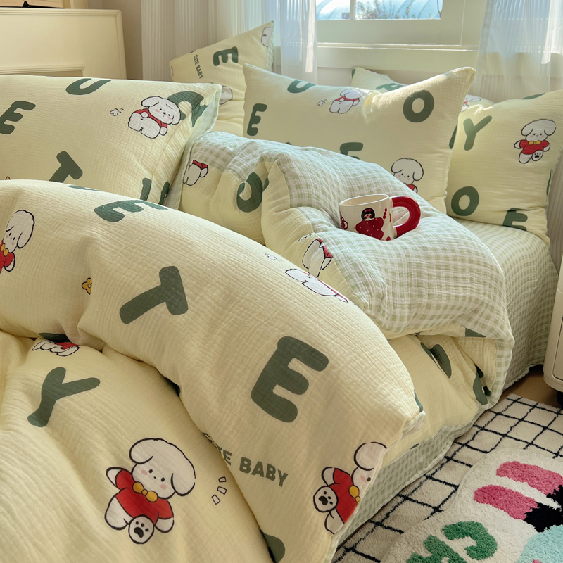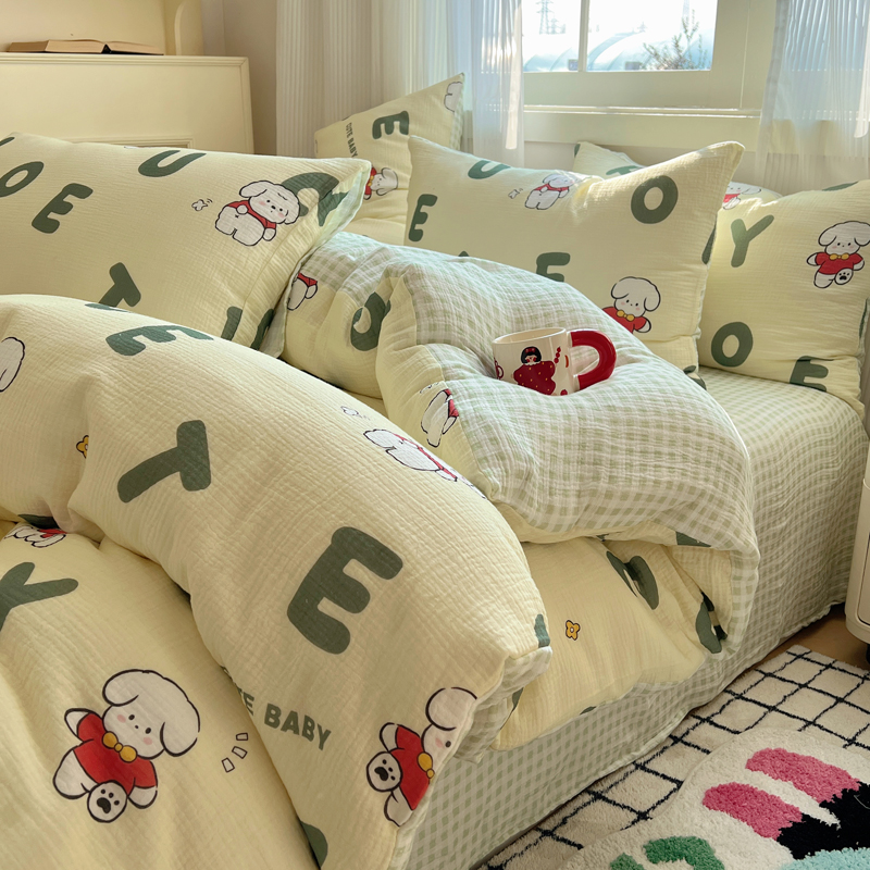 当前位置: 91家纺网 > 商品网购 > 床品套件 > 四件套 > 水洗棉四件套 > 盼季 2024新款A类母婴级水洗棉床上用品四件套卡通儿童床单被套宿舍三件套 绿格字母狗