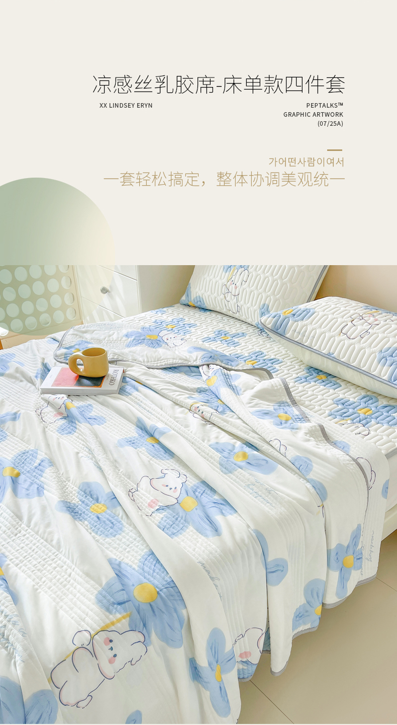 商品名称:LIFE.丽芙 2024年0.4乳胶凉席加厚条席款三件套+凉感丝夏被可组合四件套图片二 邻家小兔
