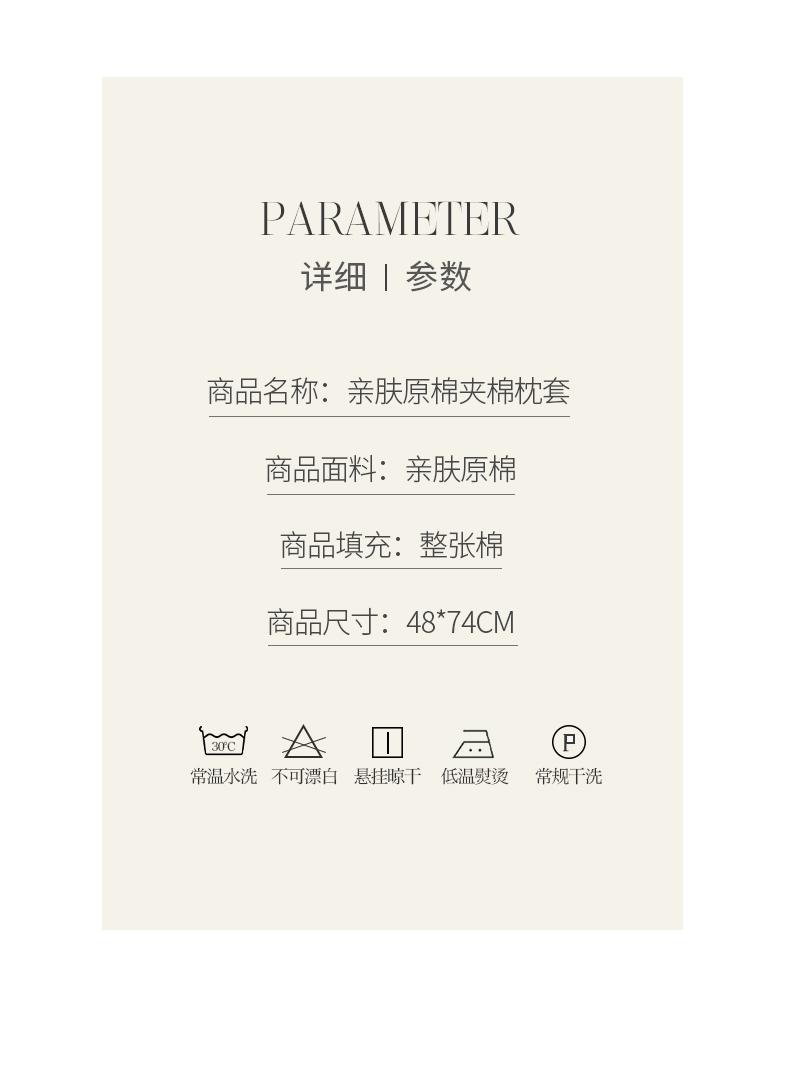 商品名称:LIFE.丽芙 2024新款原棉夹棉枕套-四季款 米色