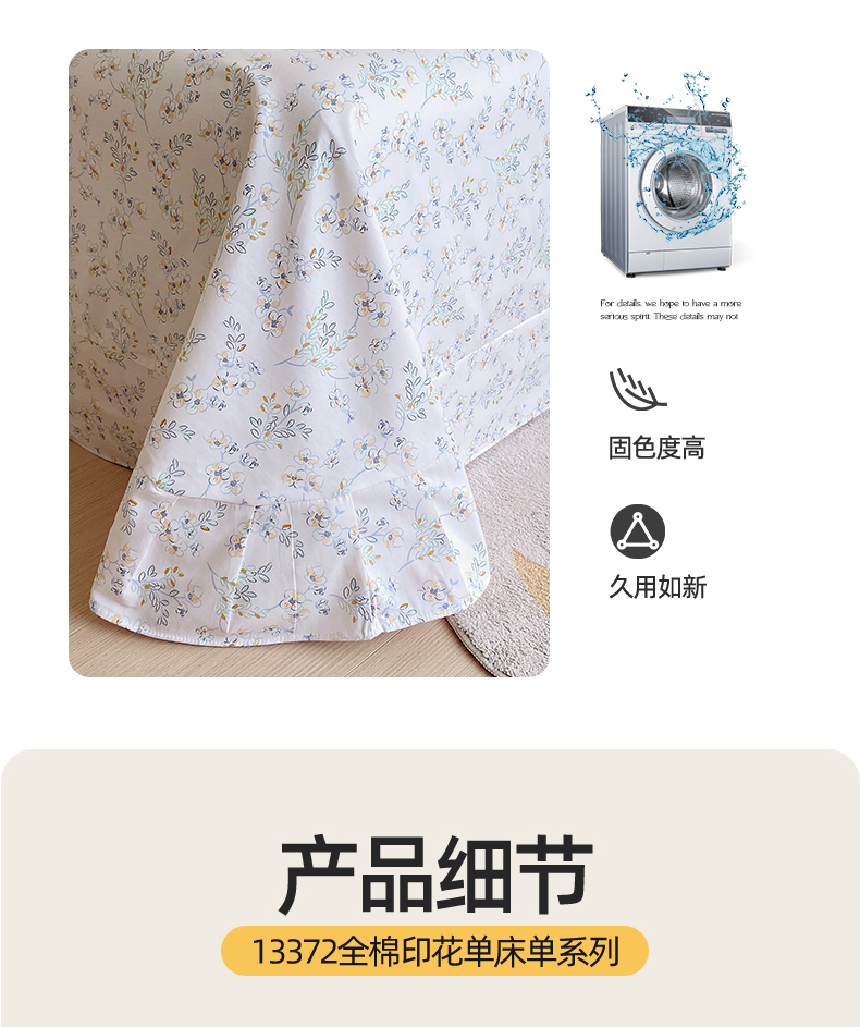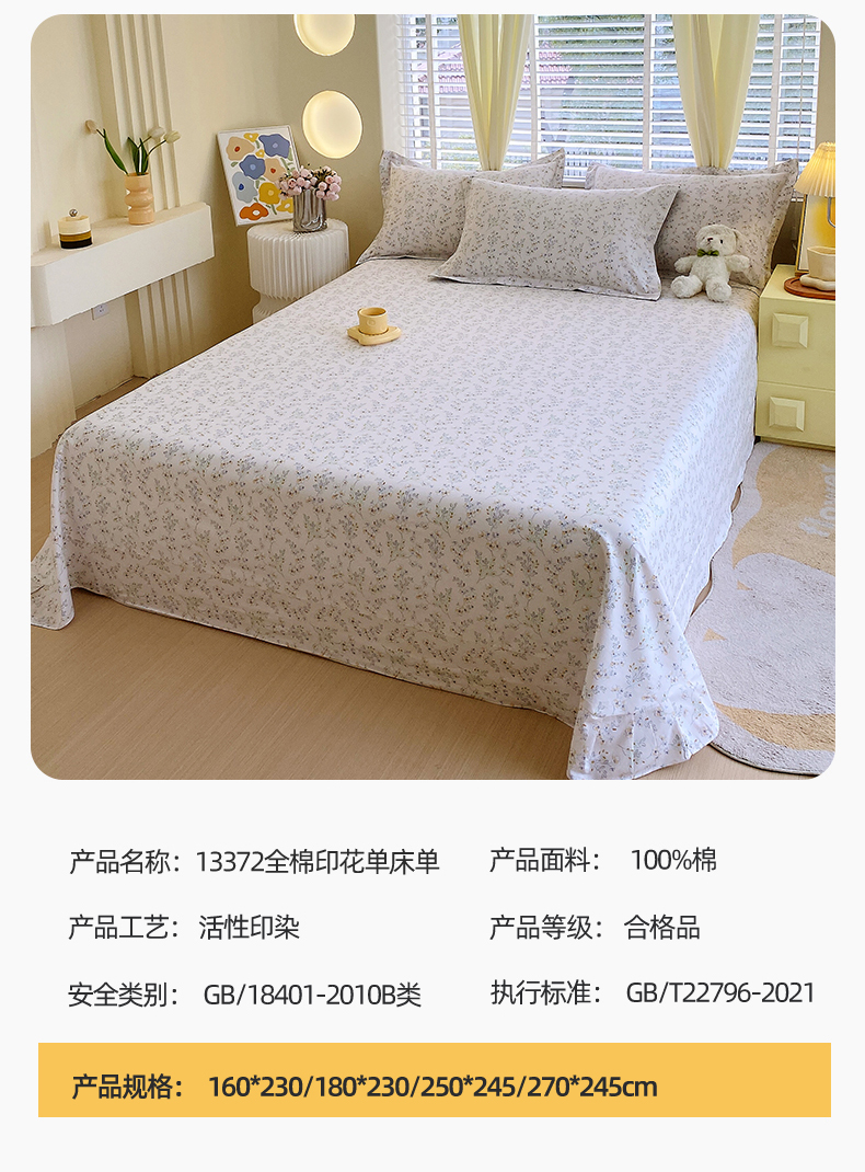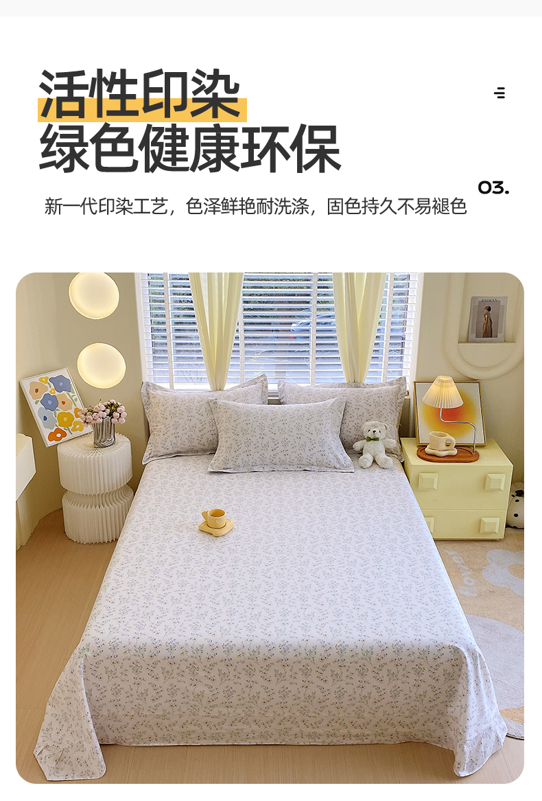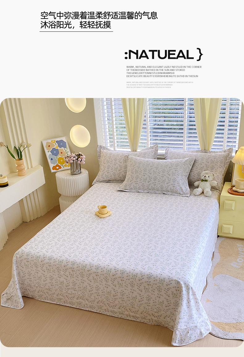 • 91家纺网 家纺一手货源 找家纺 宝齐莱家纺 2024新款13372全棉印花四件套单品系列-床单 淡雅