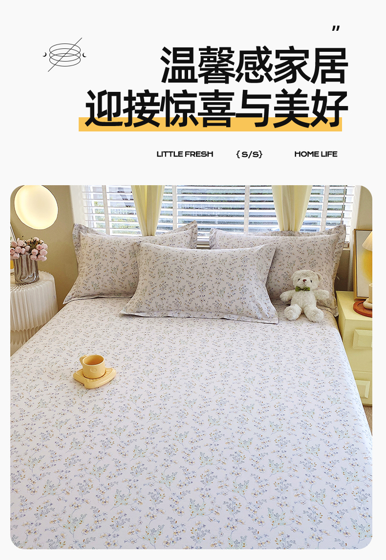 当前位置: 91家纺网 > 商品网购 > 床上用品 > 床单 > 宝齐莱家纺 2024新款13372全棉印花四件套单品系列-床单 淡雅