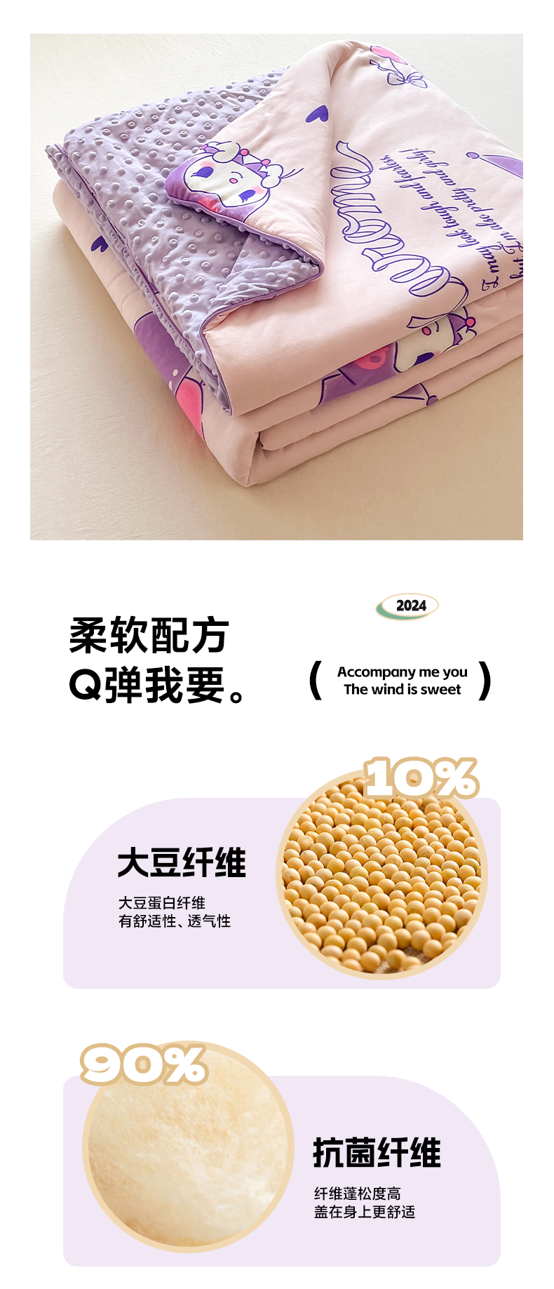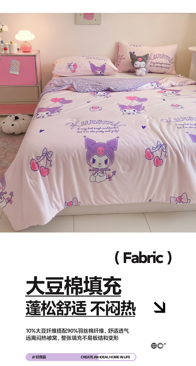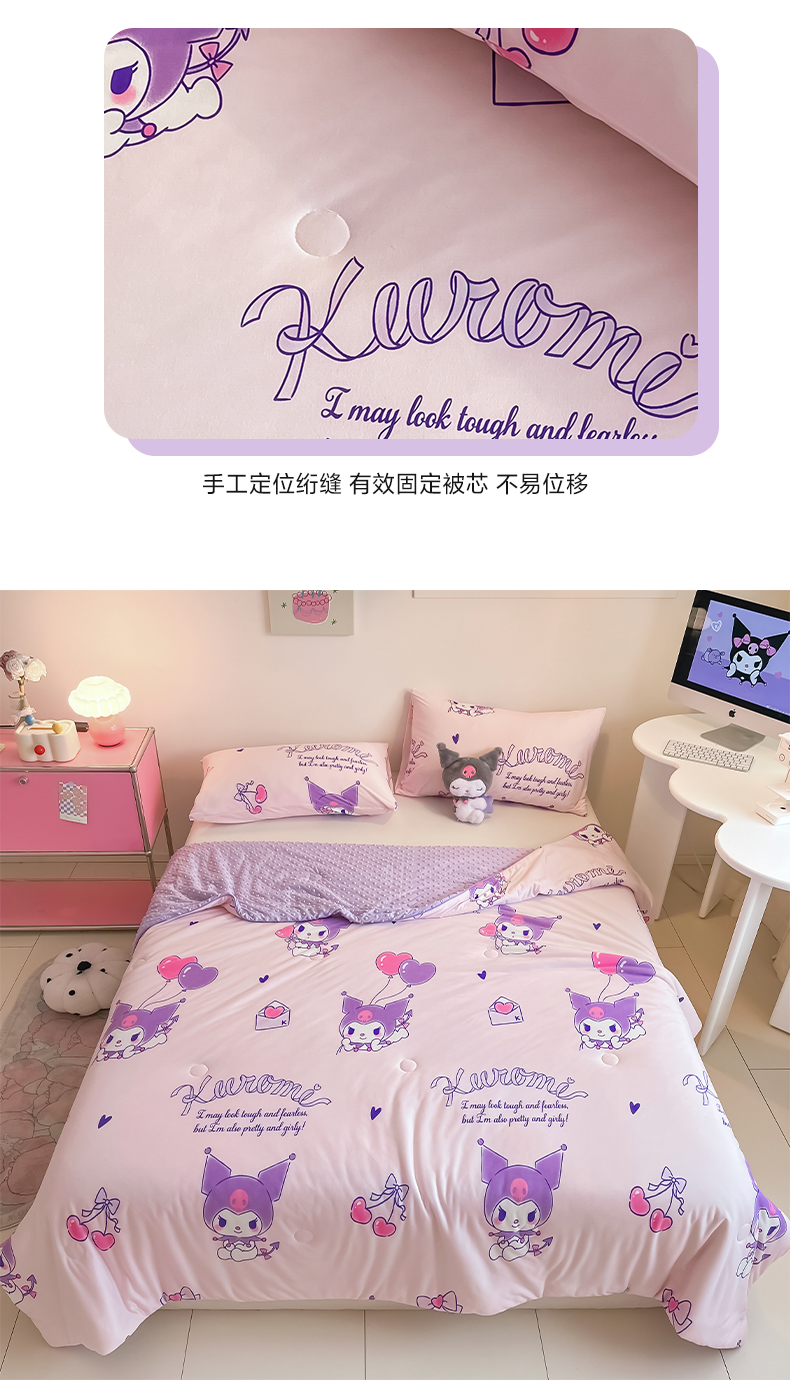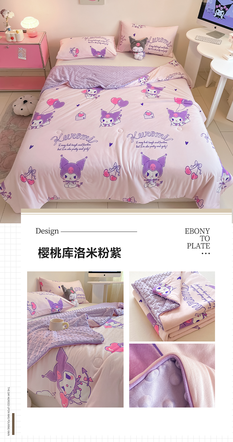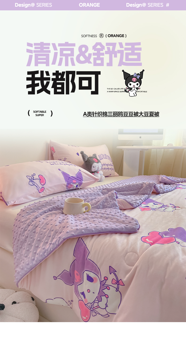 商品名称:莱登卡奴 2025春夏款A类针织棉三丽鸥豆豆被大豆夏被 樱桃库洛米粉紫