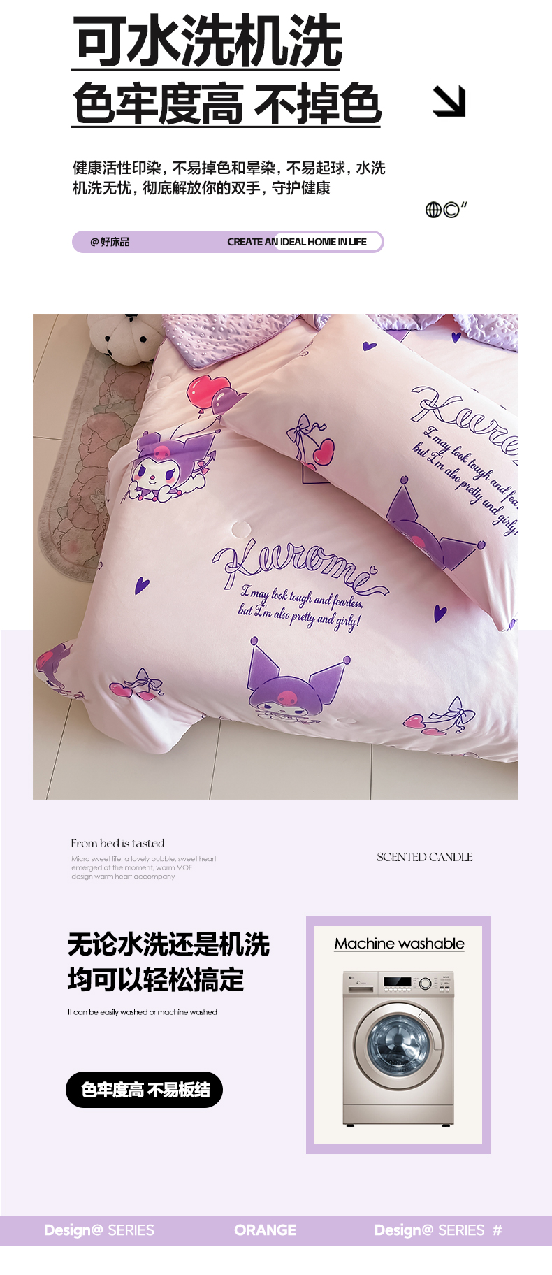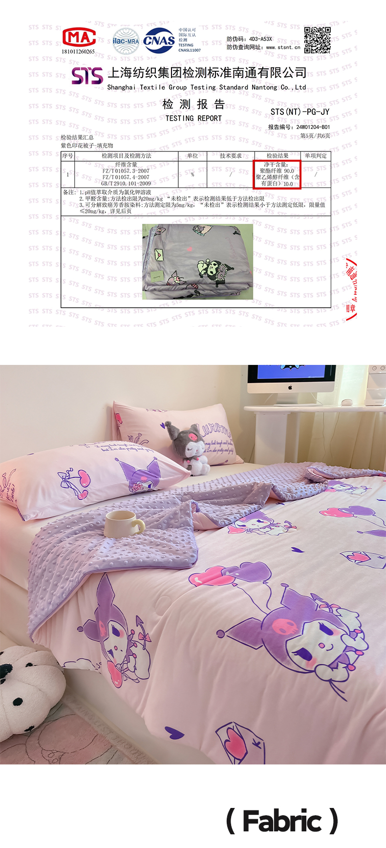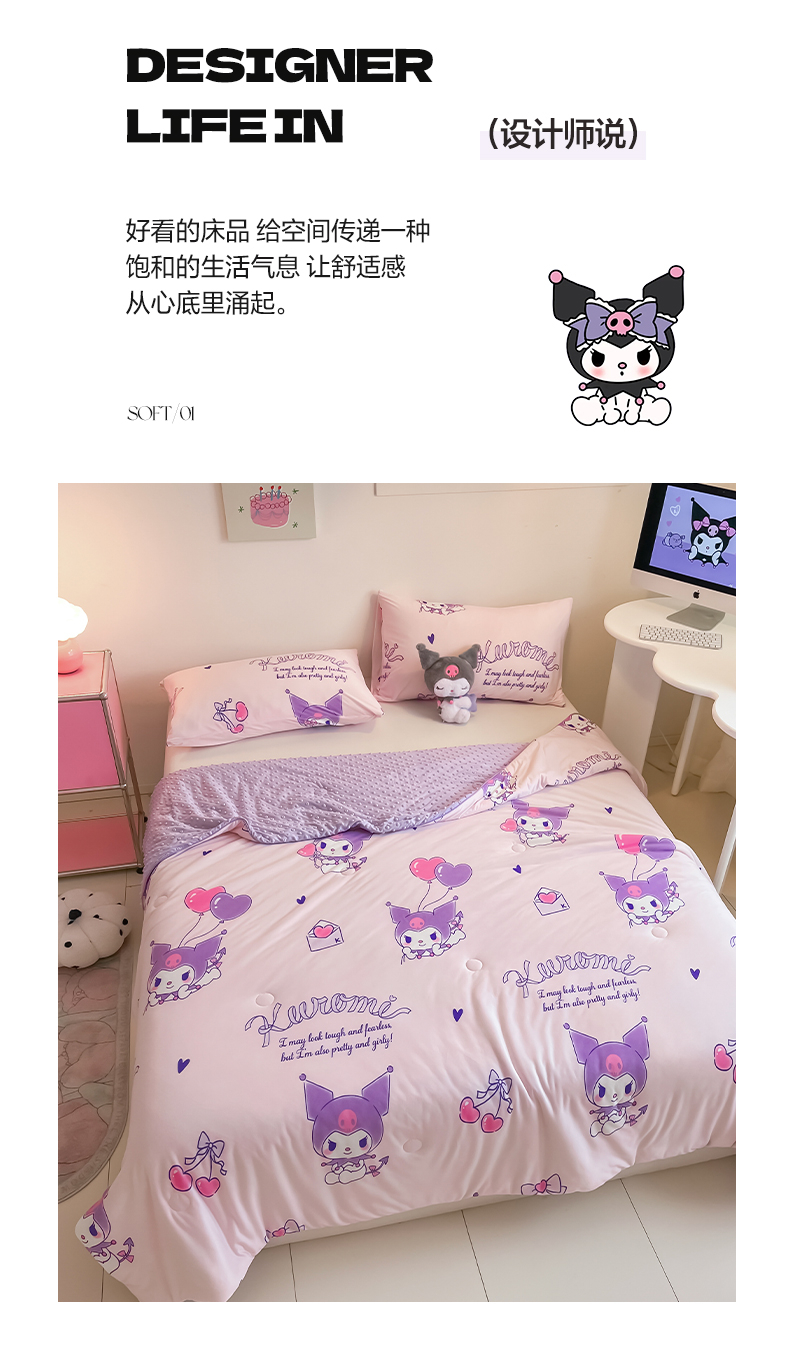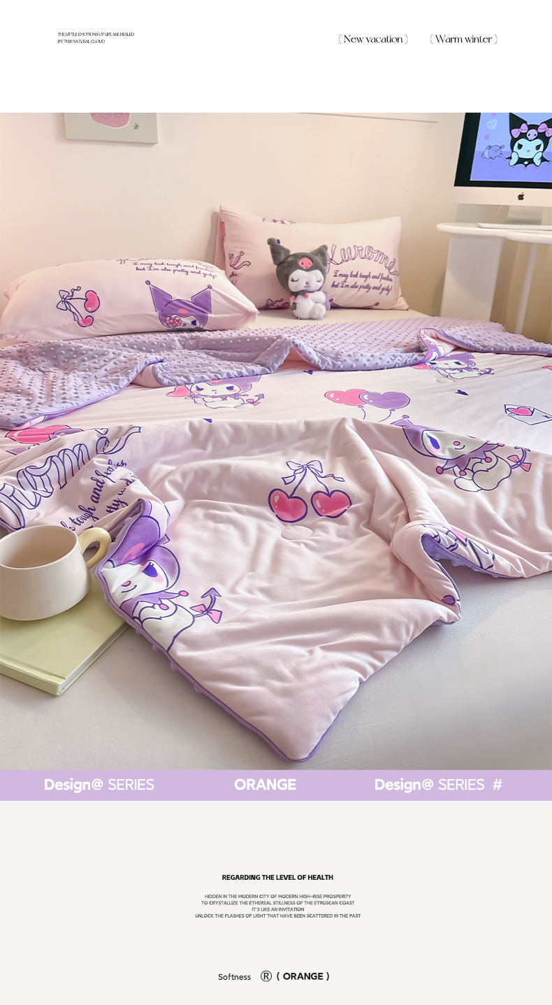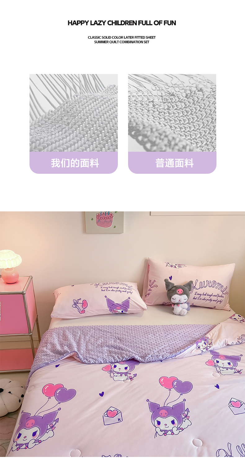 商品名称:莱登卡奴 2025春夏款A类针织棉三丽鸥豆豆被大豆夏被 樱桃库洛米粉紫