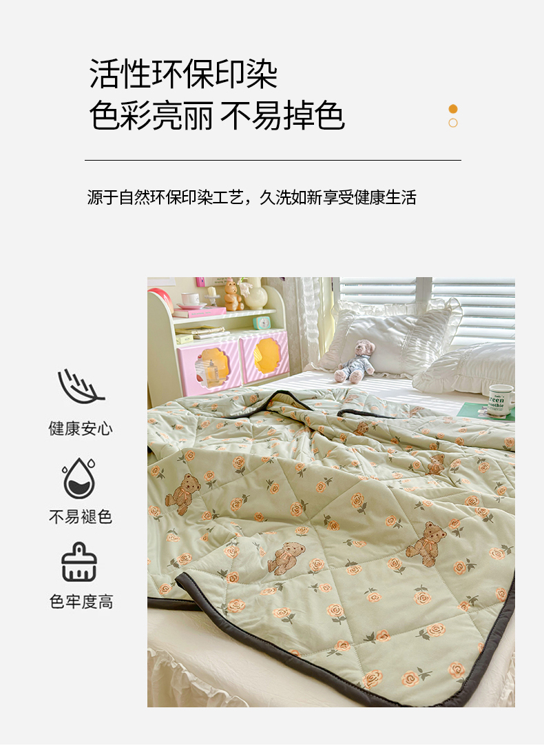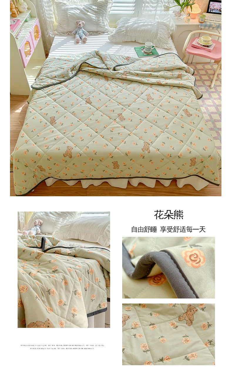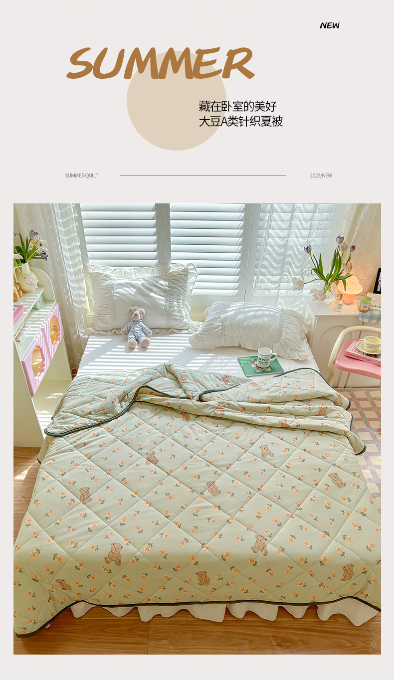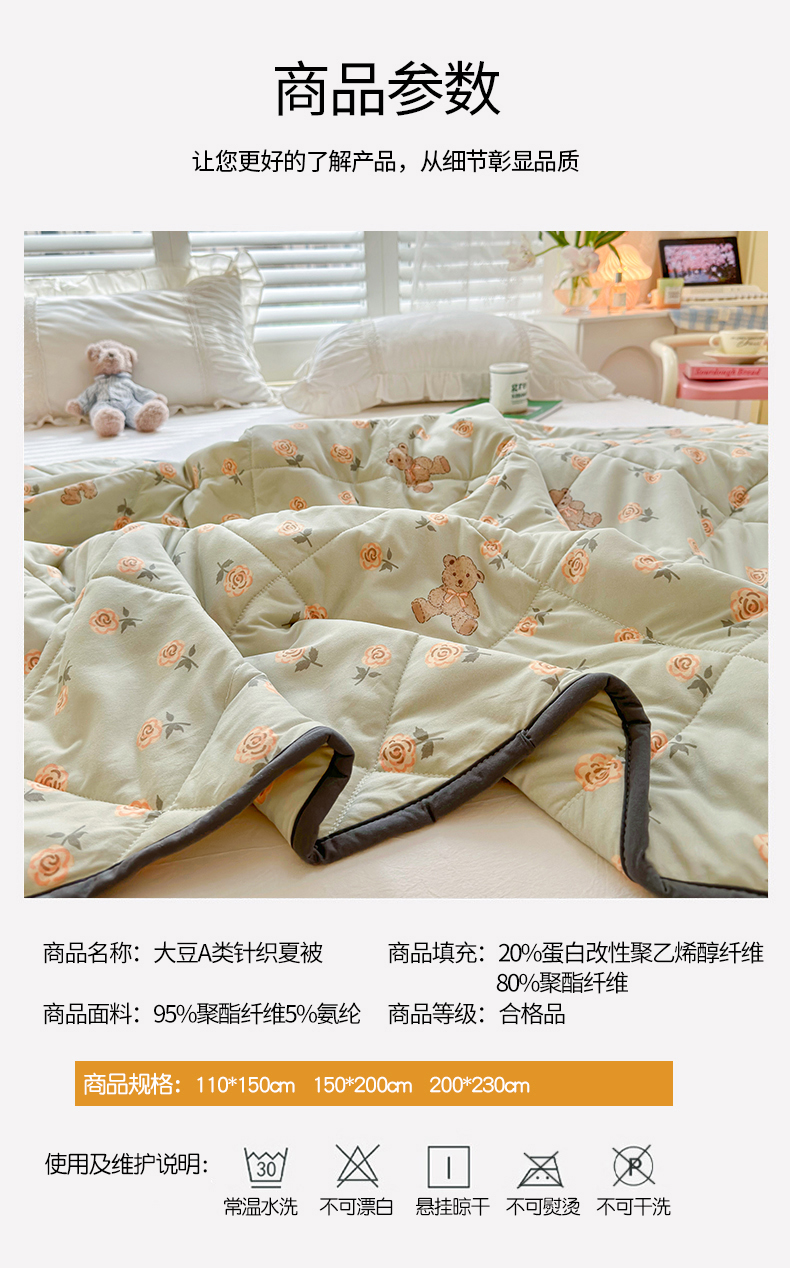 商品名称:琪格格纺织 2024新款A类卡通印花清新大豆针织夏被 200*230cm-夏被 针织被-花朵熊