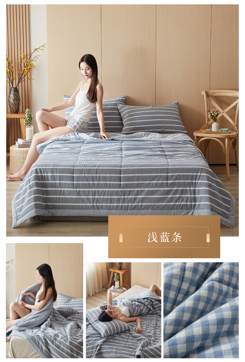 猎鹿人家纺 2024新款水洗棉棉花夏被 浅蓝条