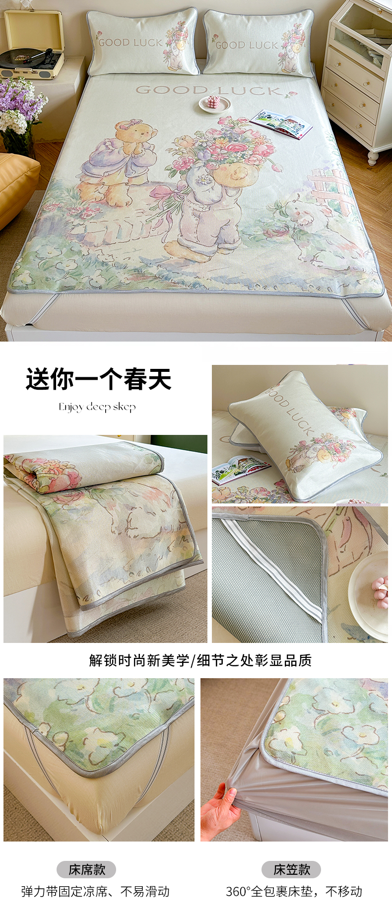 当前位置: 91家纺网 > 商品网购 > 床上用品 > 凉席 > 冰丝席 > 萝莉家纺 2024新款大版印花冰丝凉席床席床笠款 送你一个春天-平席款