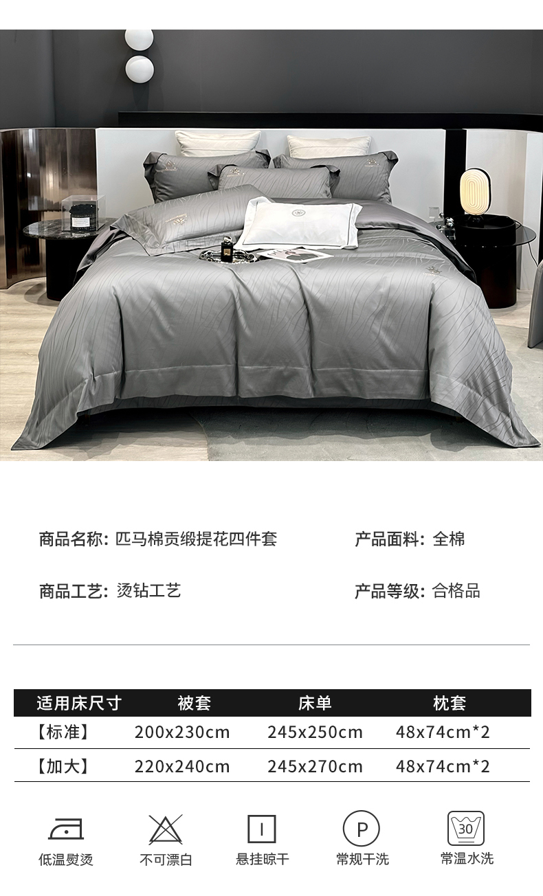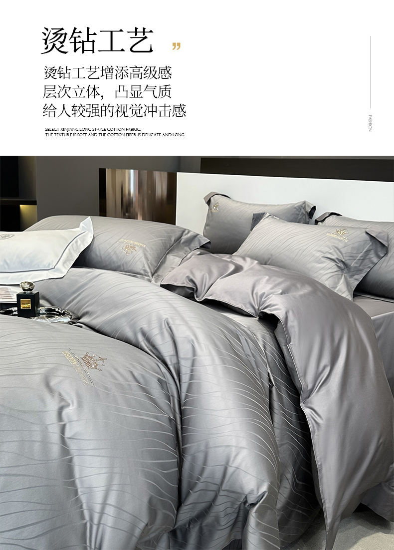 商品名称:2025新款长绒棉全棉提花烫钻四件套--黛娜系列 月雾灰