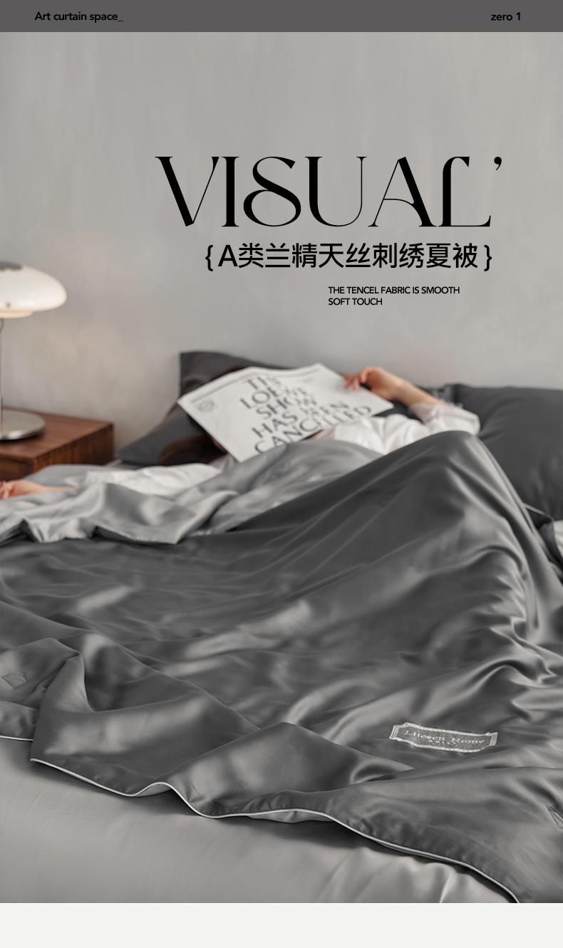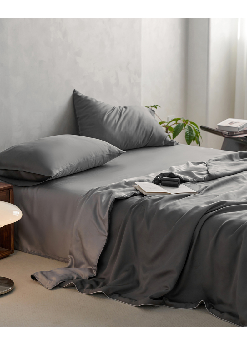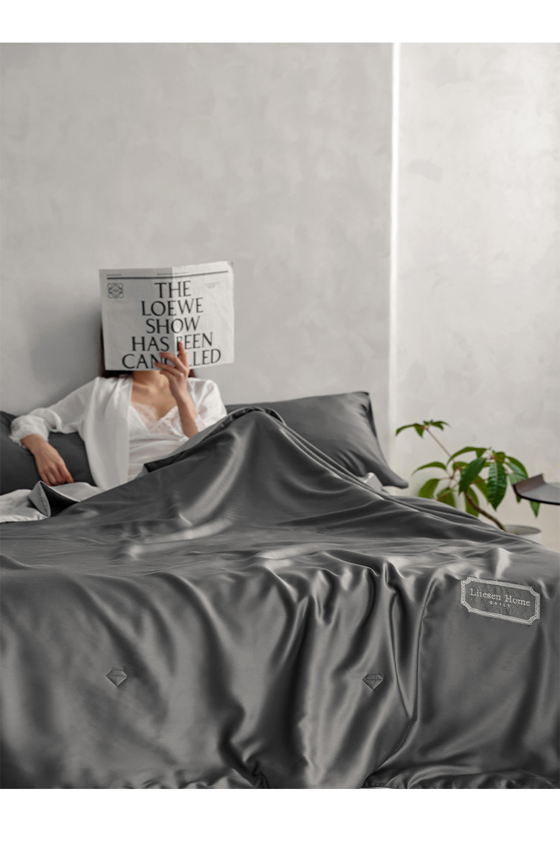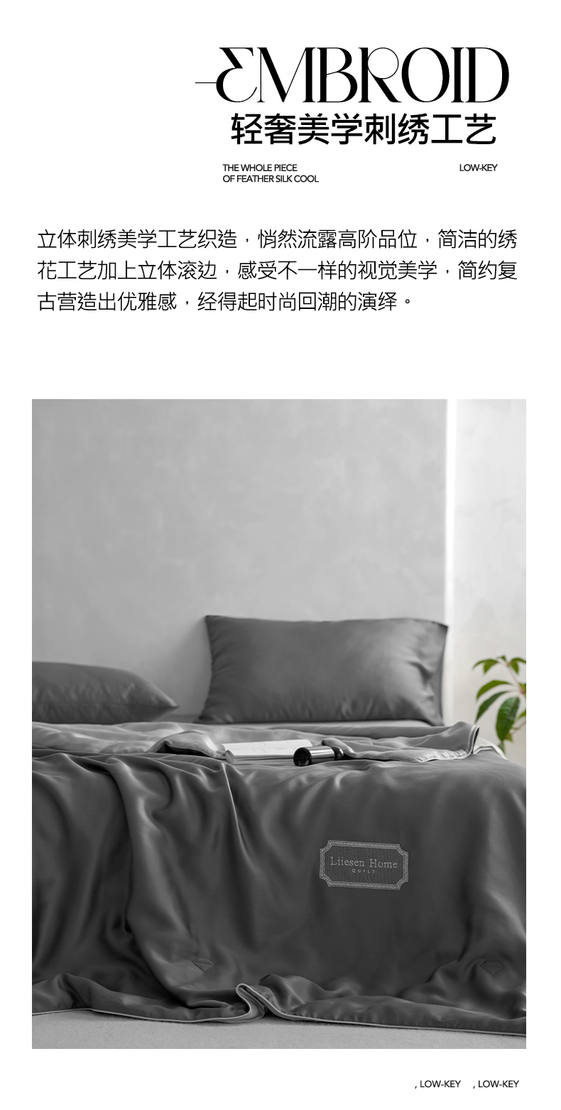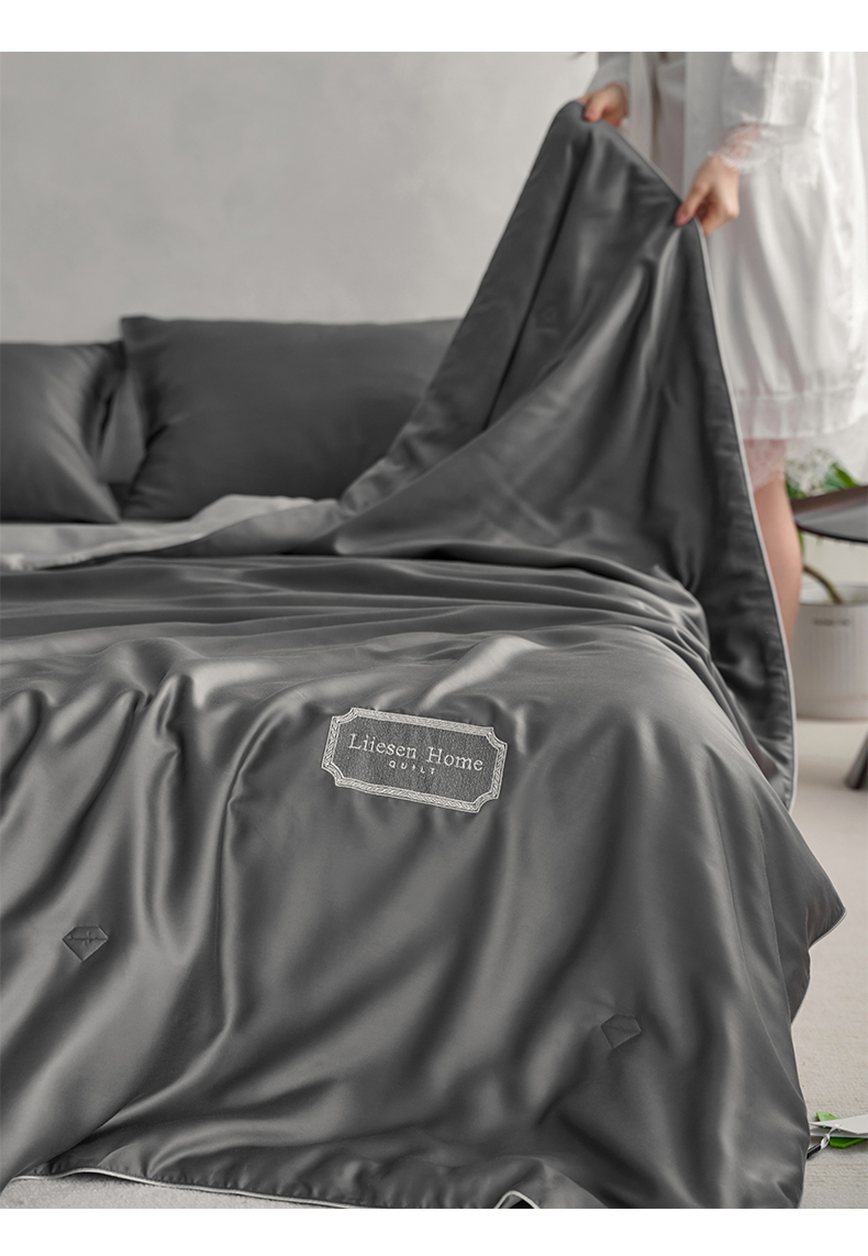 • 91家纺网 家纺一手货源 找家纺 丽笙 2024新款A类兰精天丝素色刺绣夏被被子被芯 炫彩色深玄灰