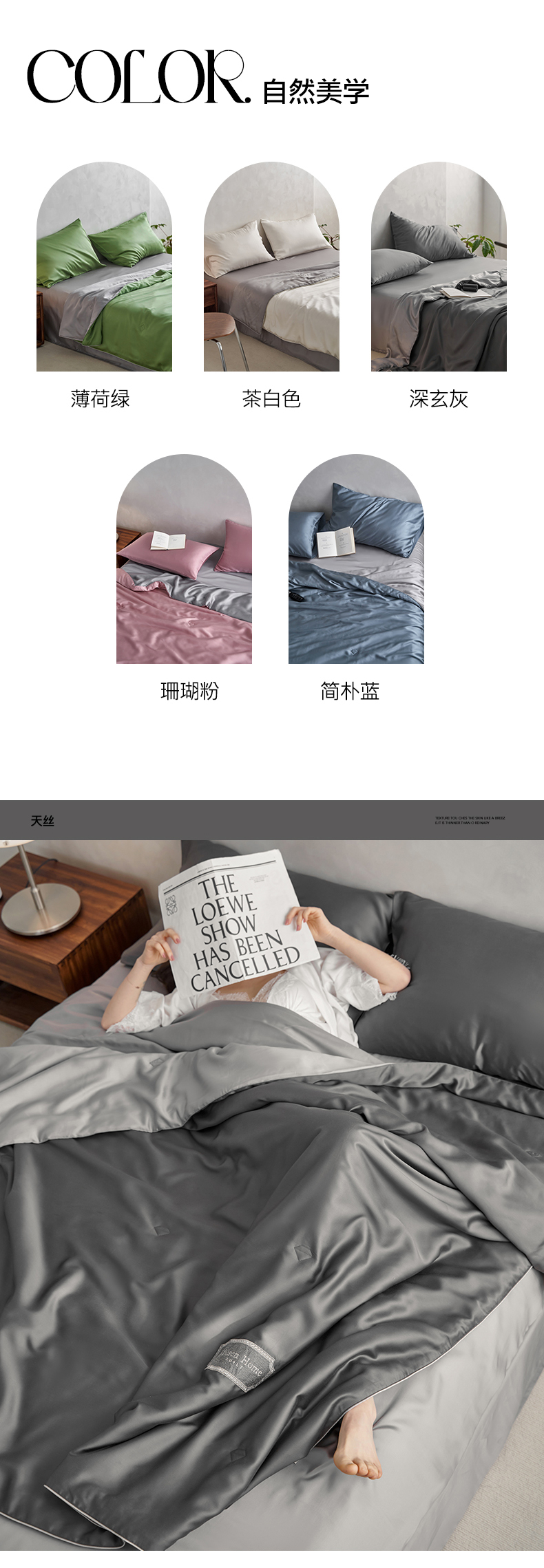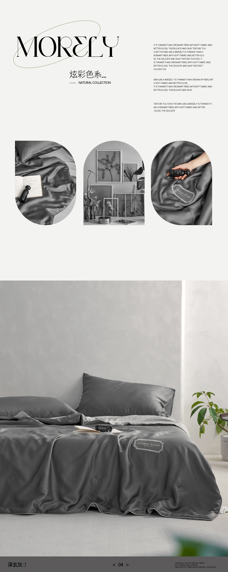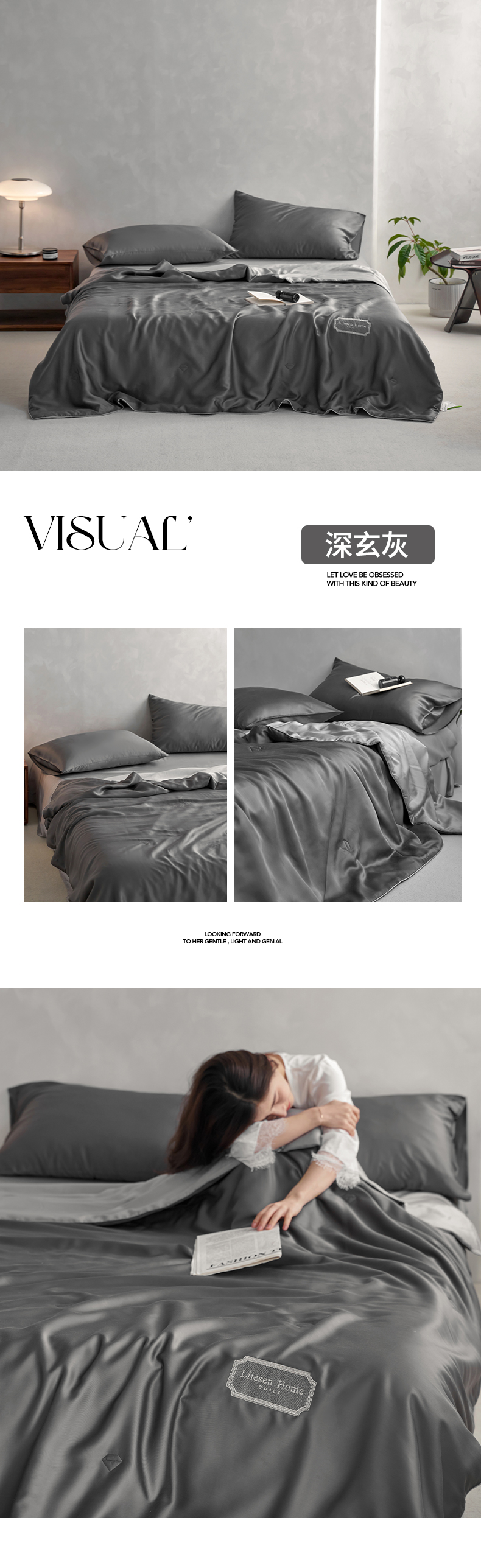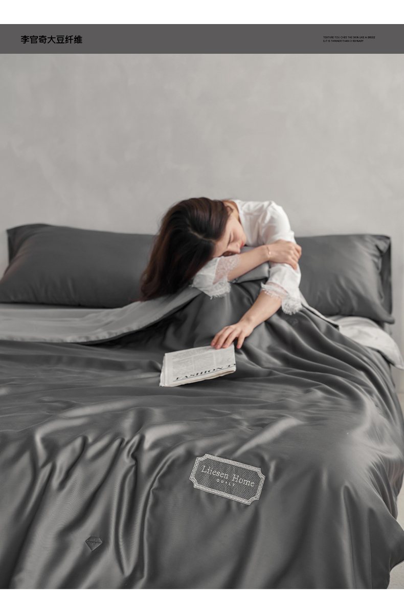 • 91家纺网 家纺一手货源 找家纺 丽笙 2024新款A类兰精天丝素色刺绣夏被被子被芯 炫彩色深玄灰