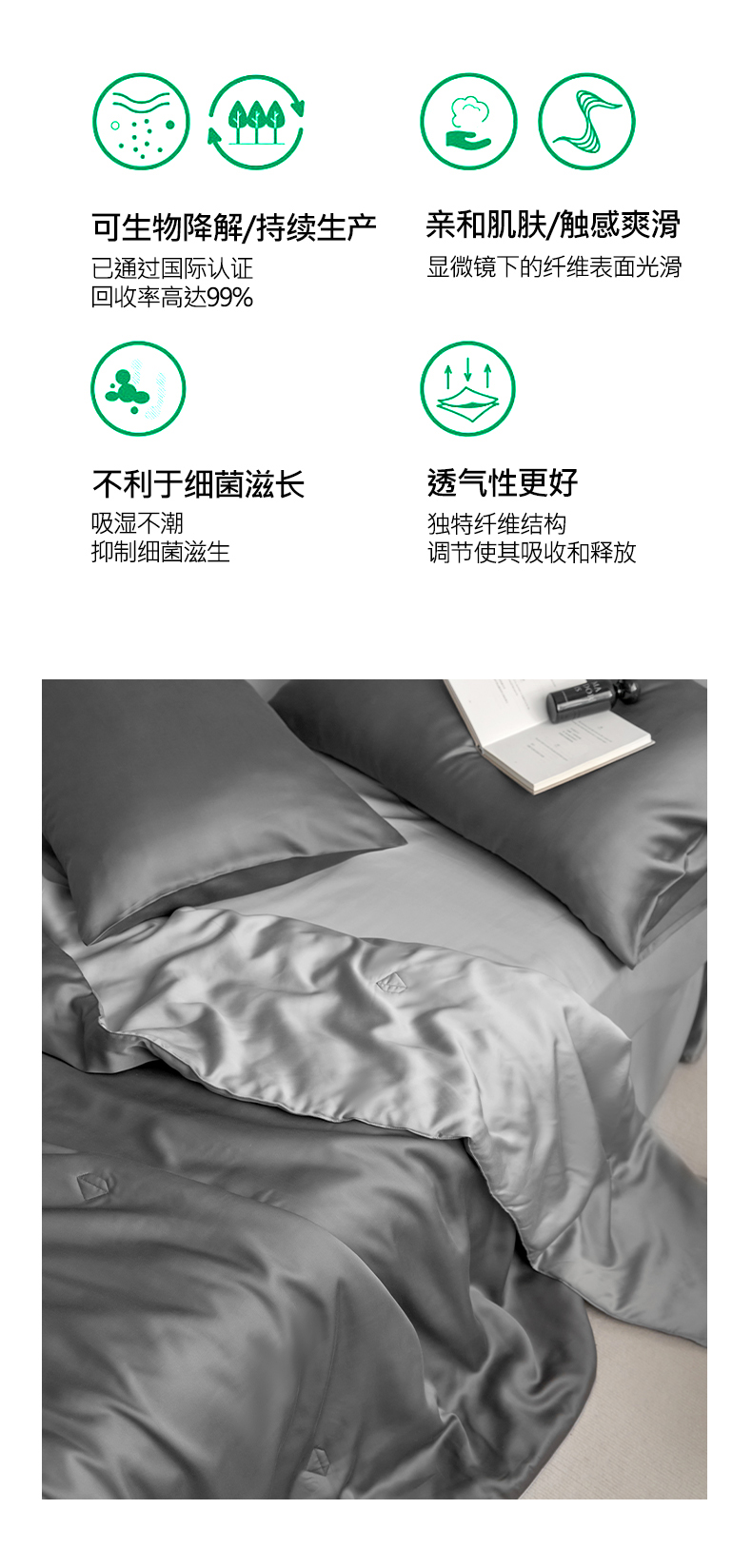 丽笙 2024新款A类兰精天丝素色刺绣夏被被子被芯 炫彩色深玄灰
