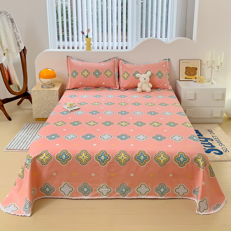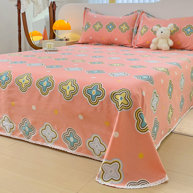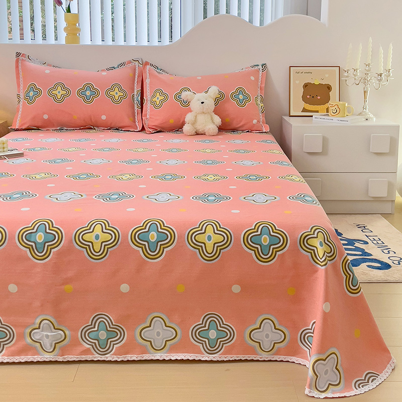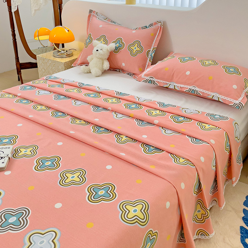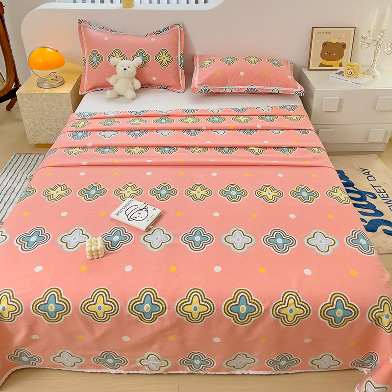 鸿羽樱 2024新款鱼骨棉老粗布凉席三件套 四叶草-玉