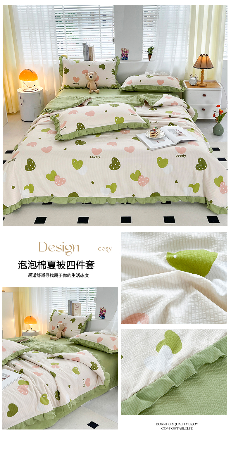商品名称:富之航 2024新款时尚舒适泡泡棉夏被四件套绿爱心