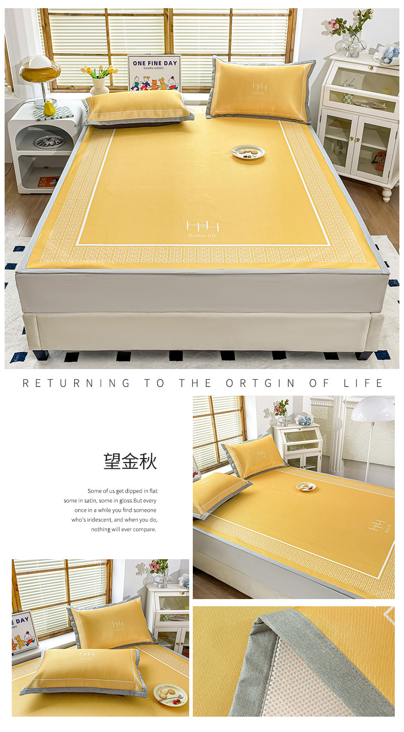• 91家纺网 家纺一手货源 找家纺 栩裕纺织 2025款数码印花1200D碳光牛奶冰丝凉席 望金秋