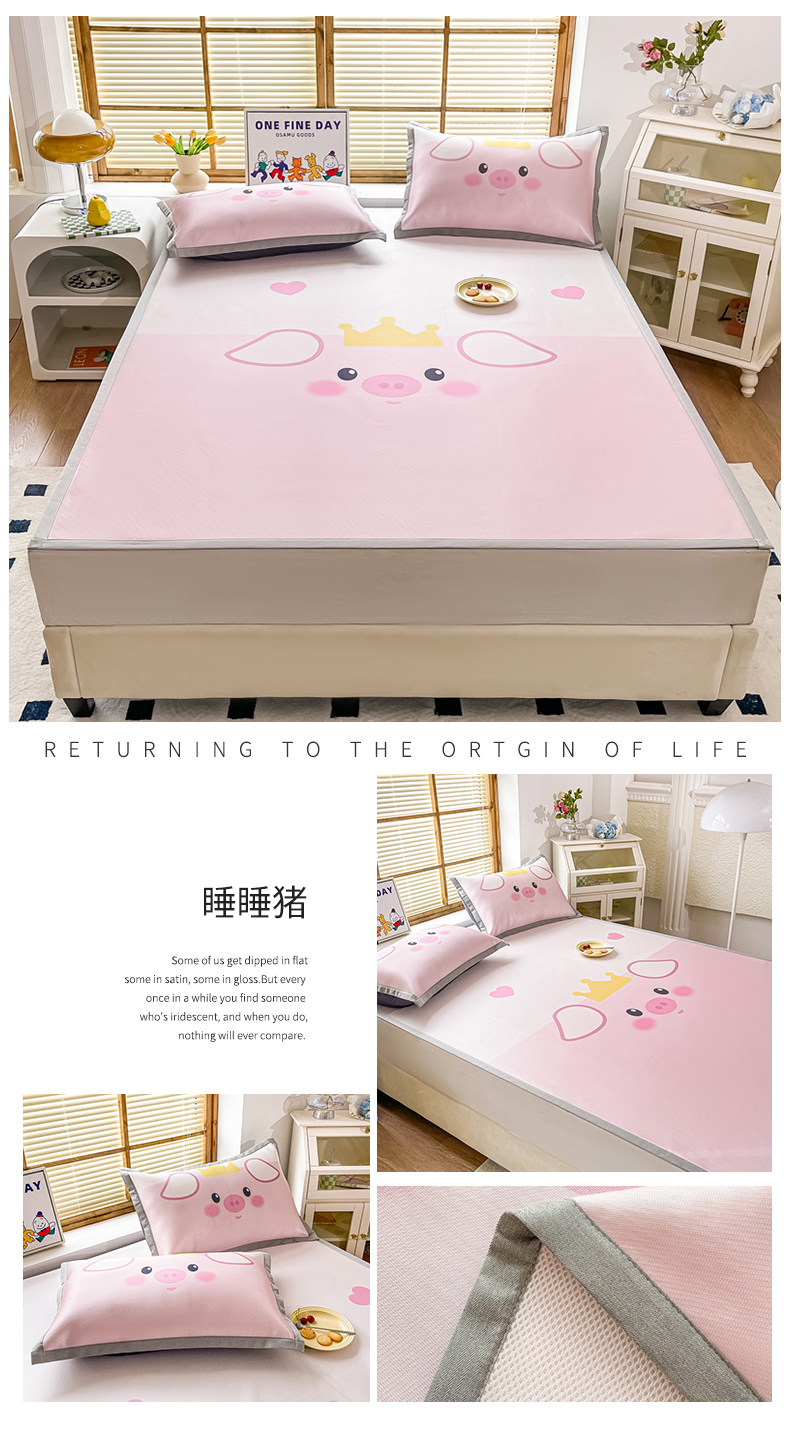 栩裕纺织 2025款数码印花1200D碳光牛奶冰丝凉席 睡睡猪