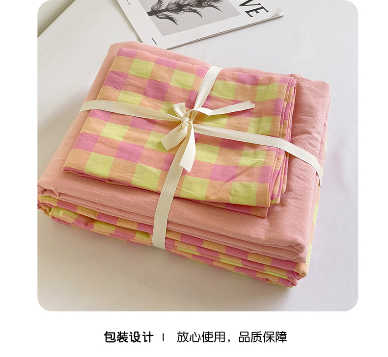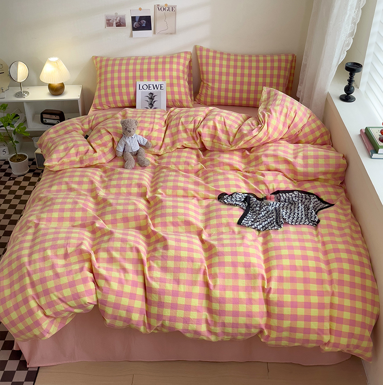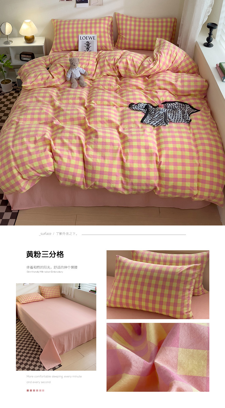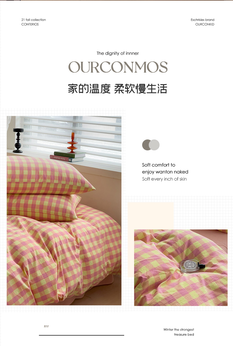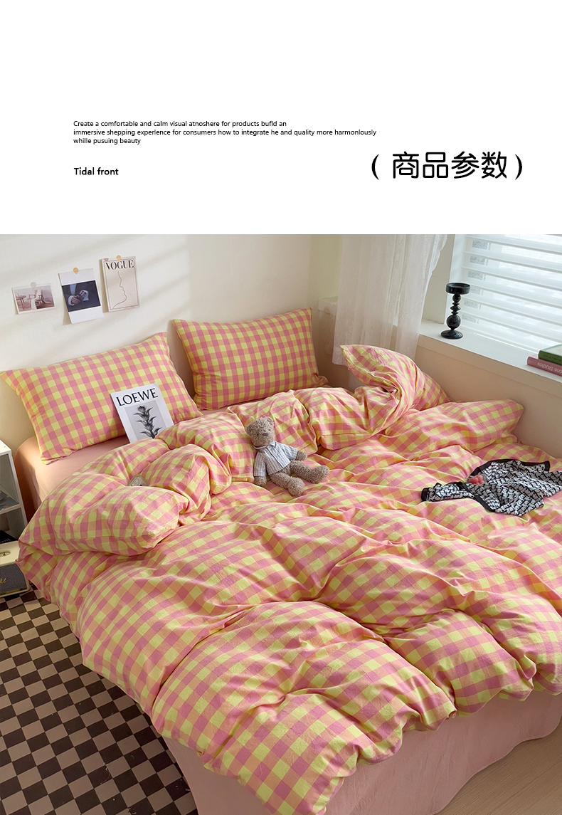 当前位置: 91家纺网 > 商品网购 > 床品套件 > 四件套 > 全棉普通四件套 > 大柏树 2025新款A类色织全棉水洗棉单品系列-四件套 黄粉三分格